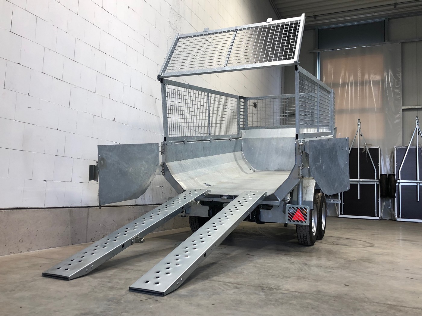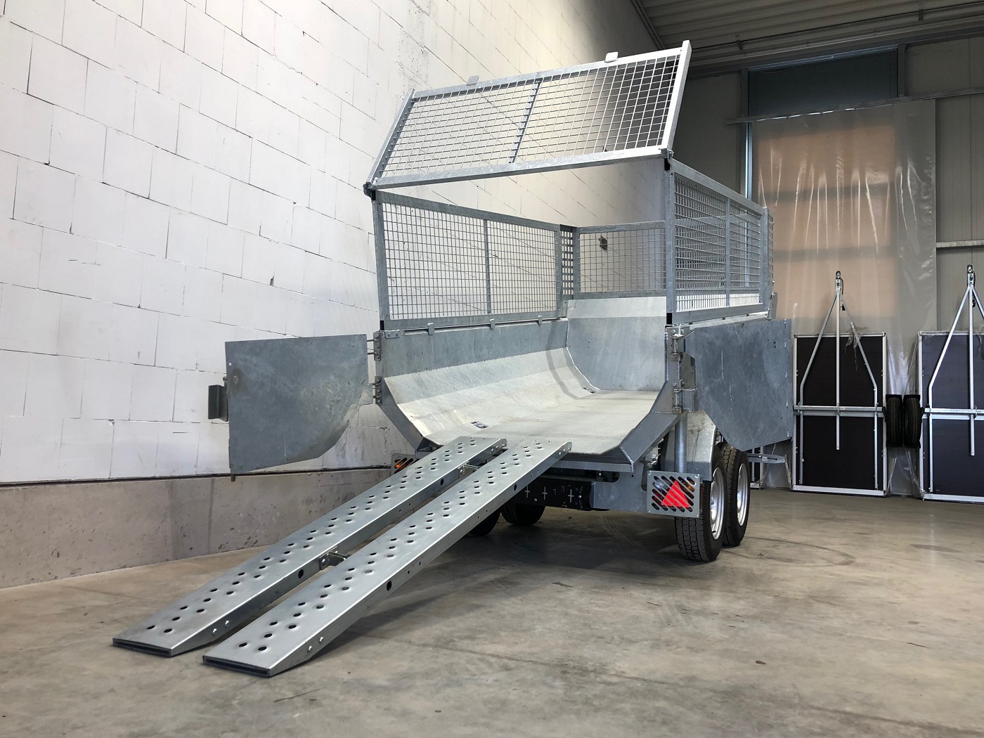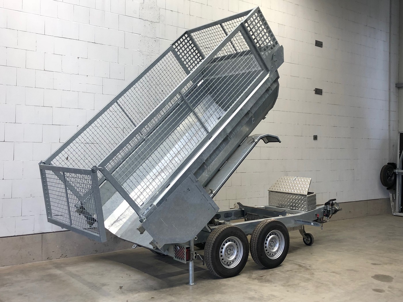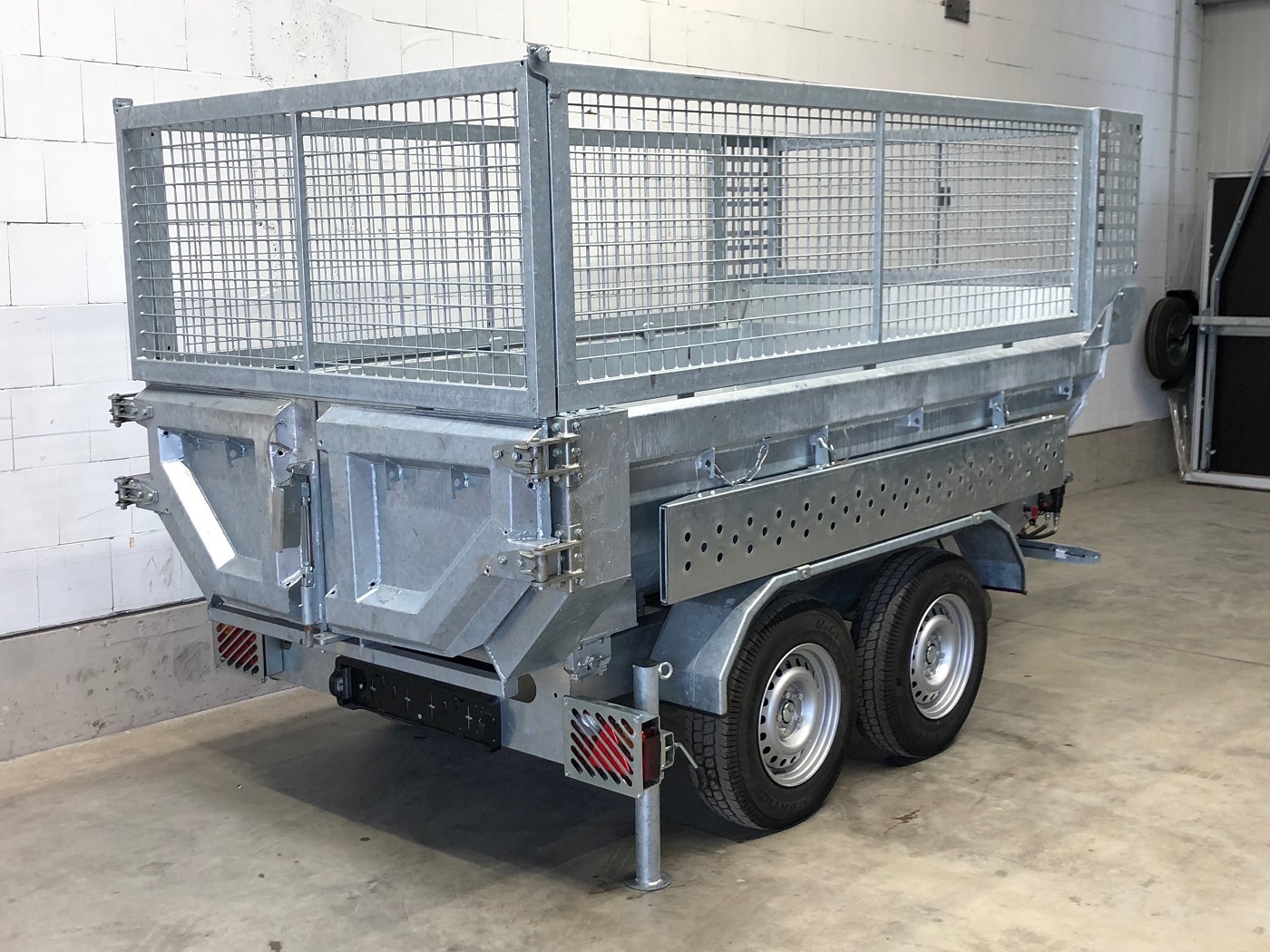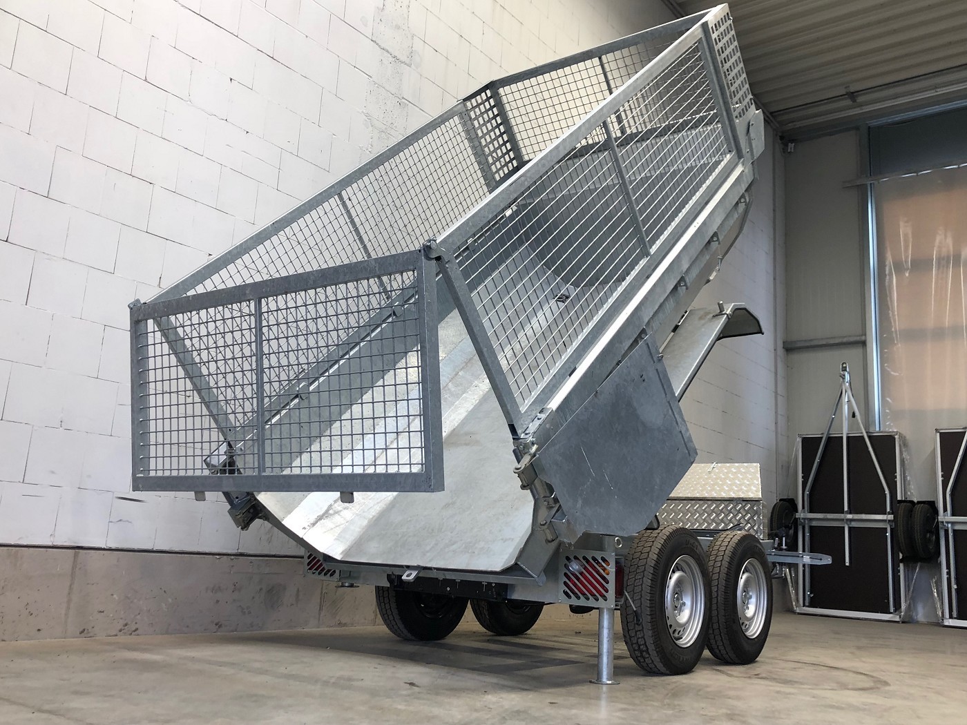 • Stabiler Stahlaufbau mit Türen hinten, ideale Form zum Transport von Schüttgut