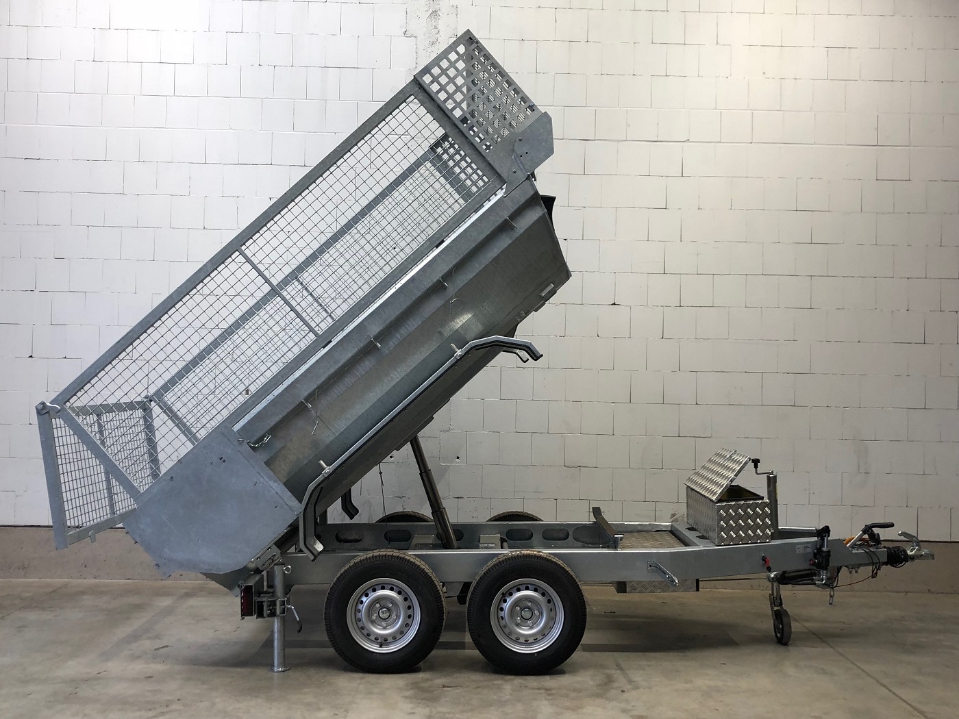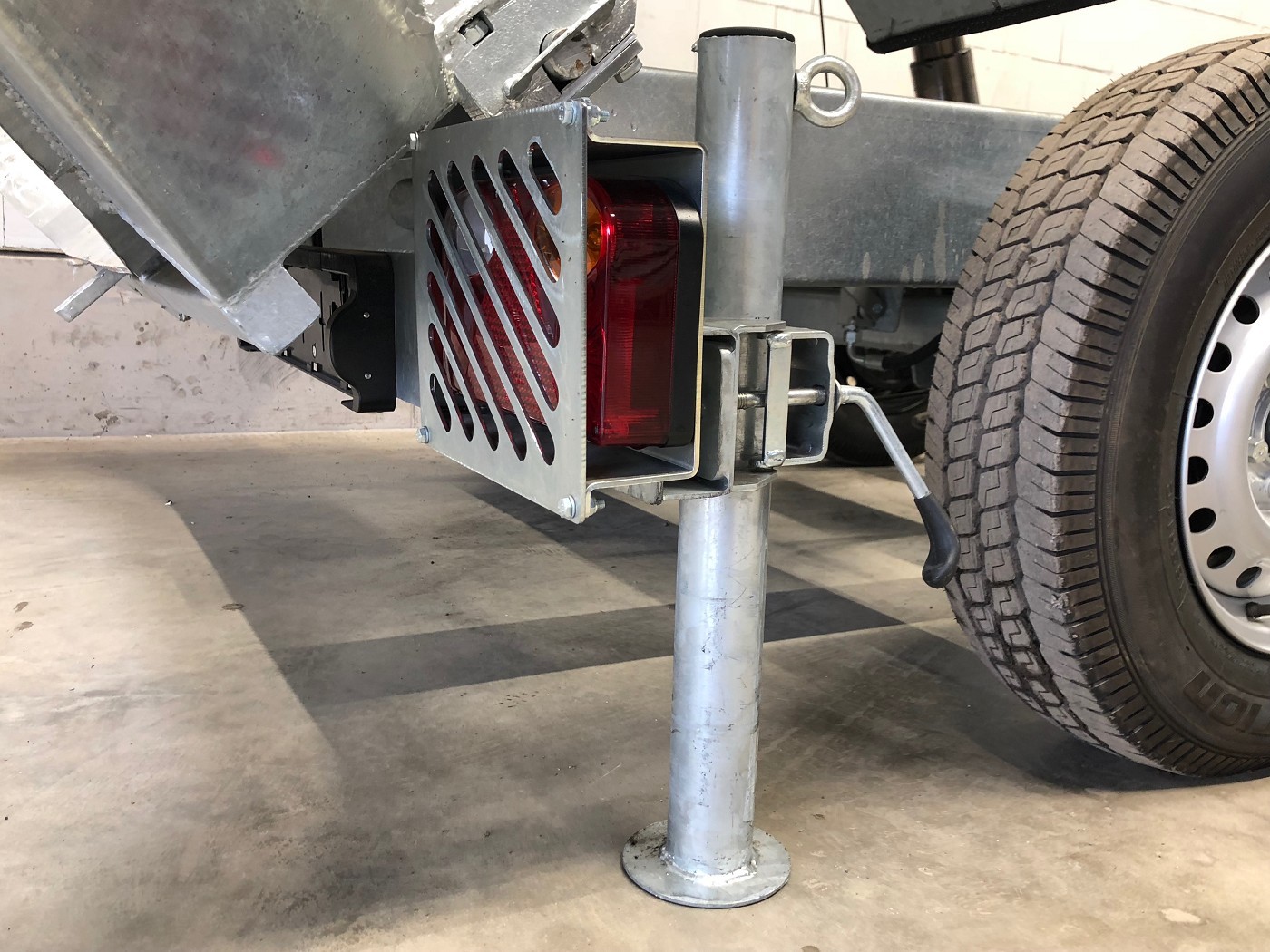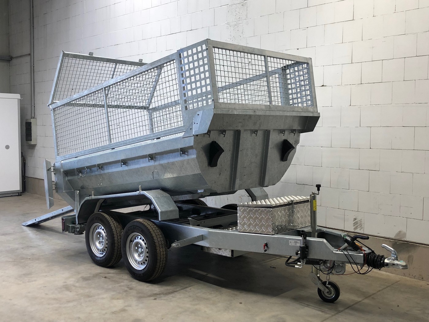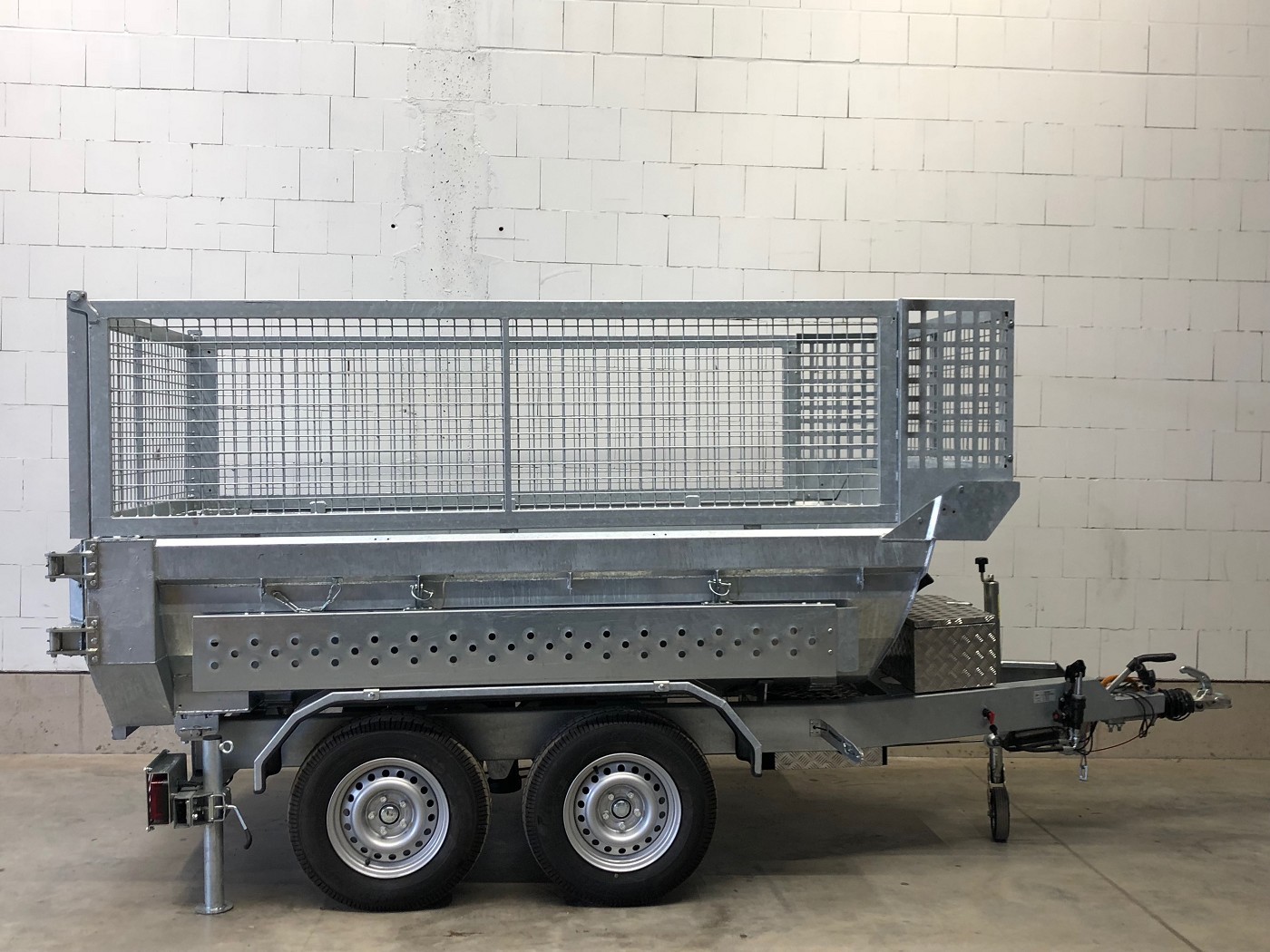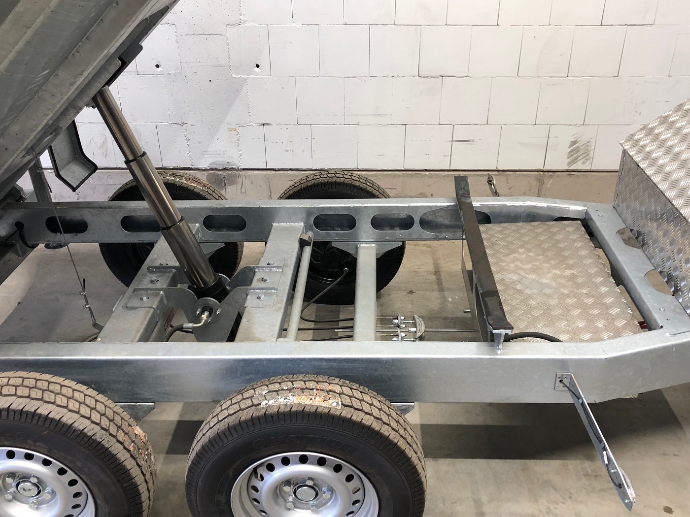 • Werkzeugbox aus Alu-Riffelblech auf der Deichsel montiert