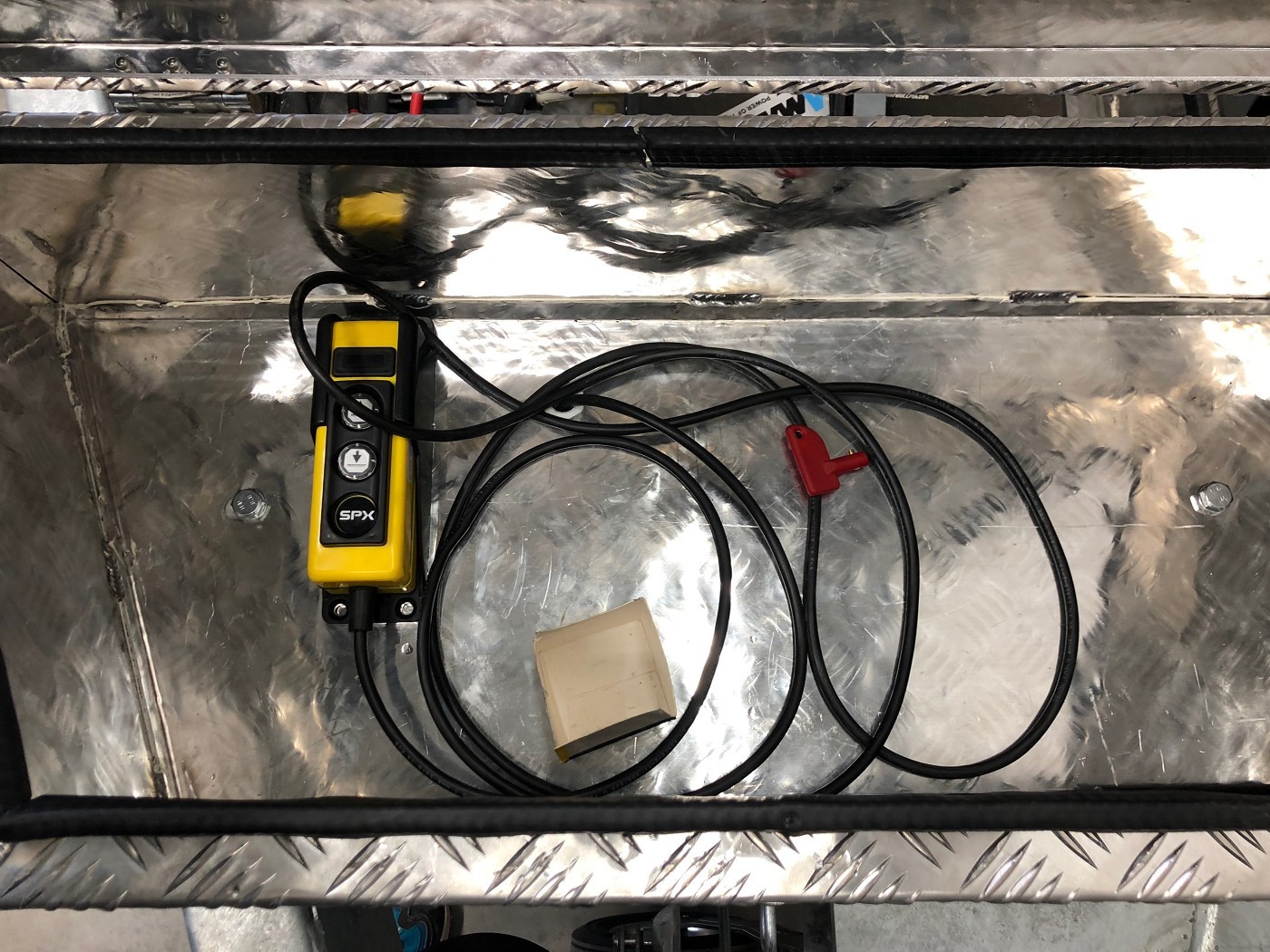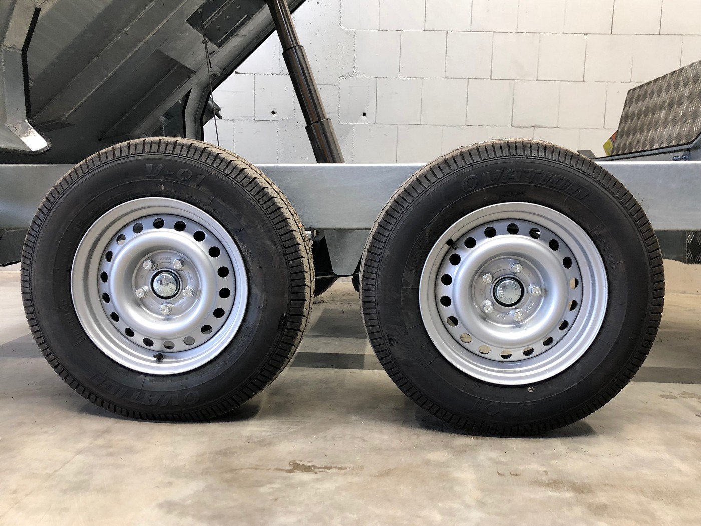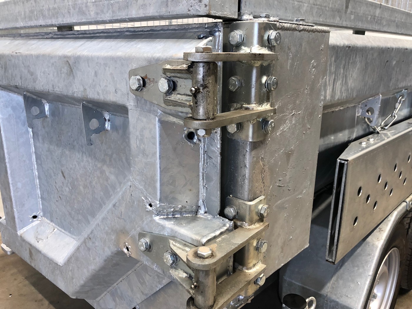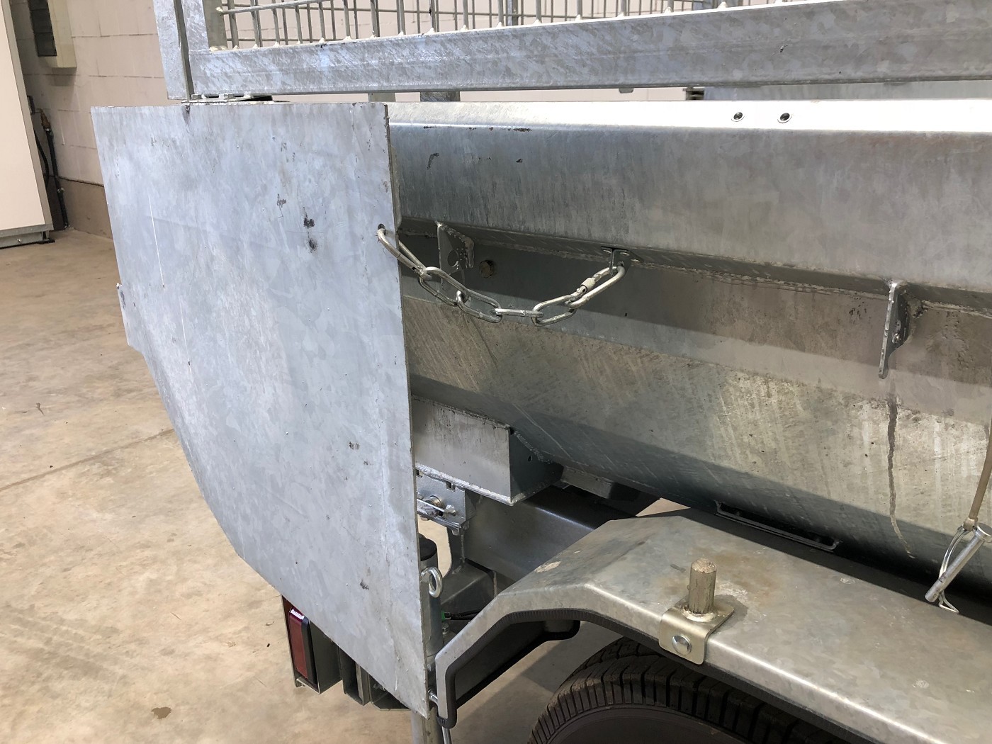 • Werkzeugbox aus Alu-Riffelblech auf der Deichsel montiert