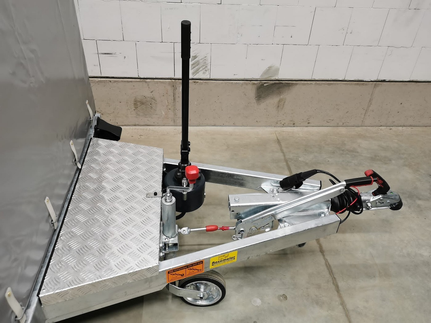 Absenkbarer Motorradanhänger mit Plane