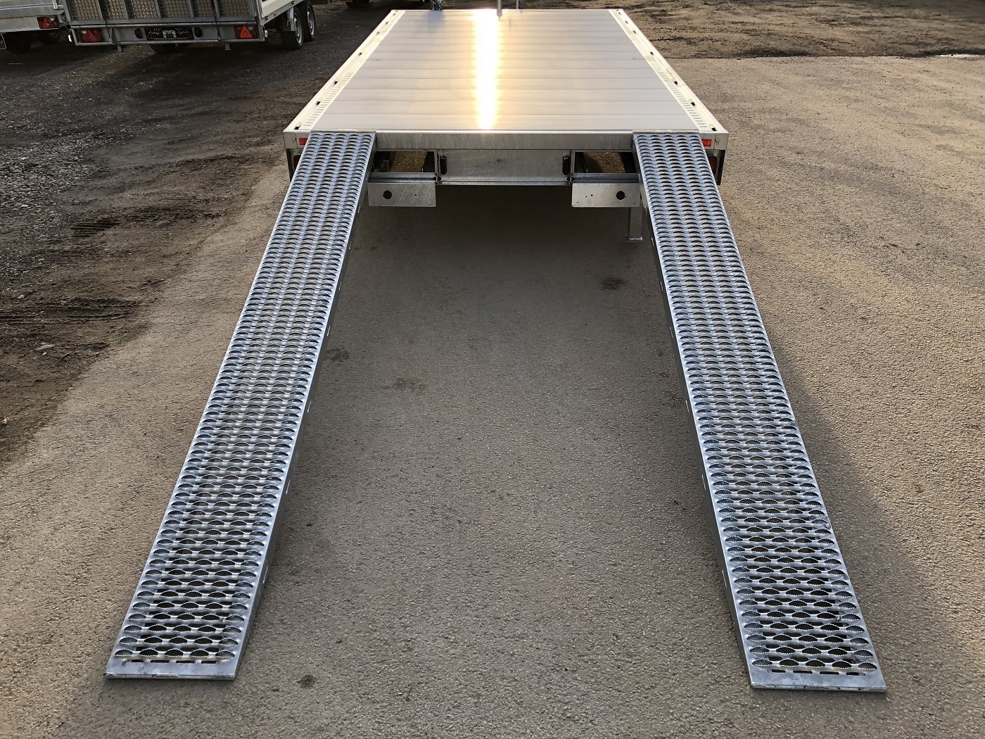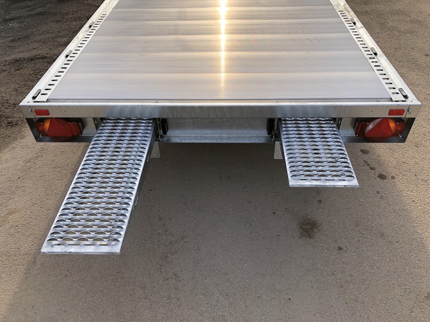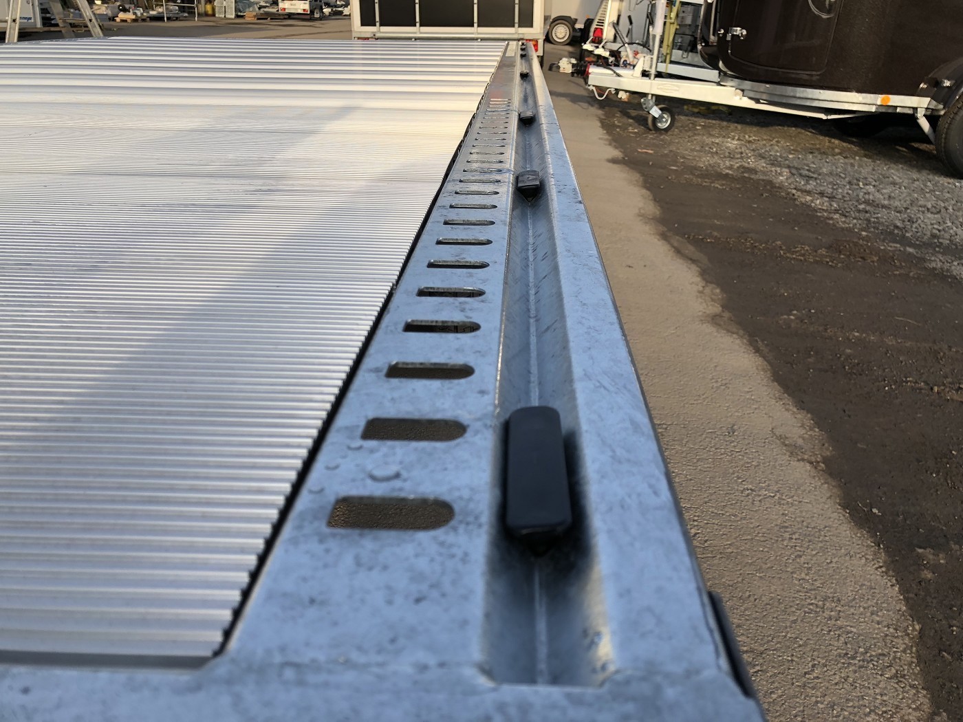 • 2 im Tauchbad feuerverzinkte Auffahrbohlen aus Gitterrost unter der Ladefläche eingeschoben