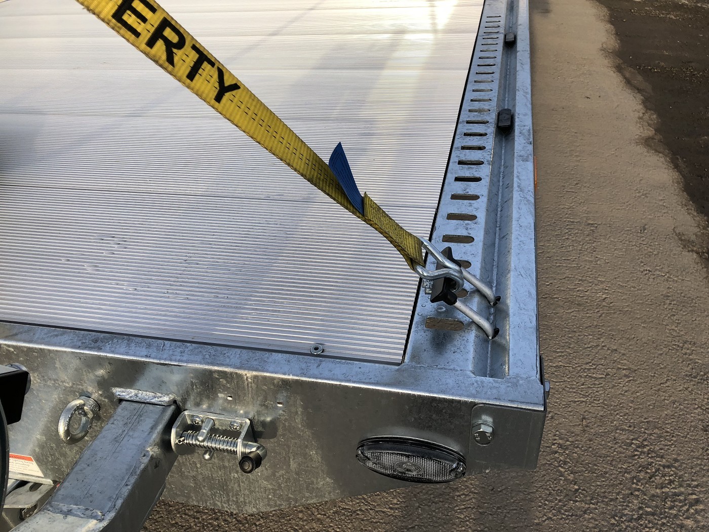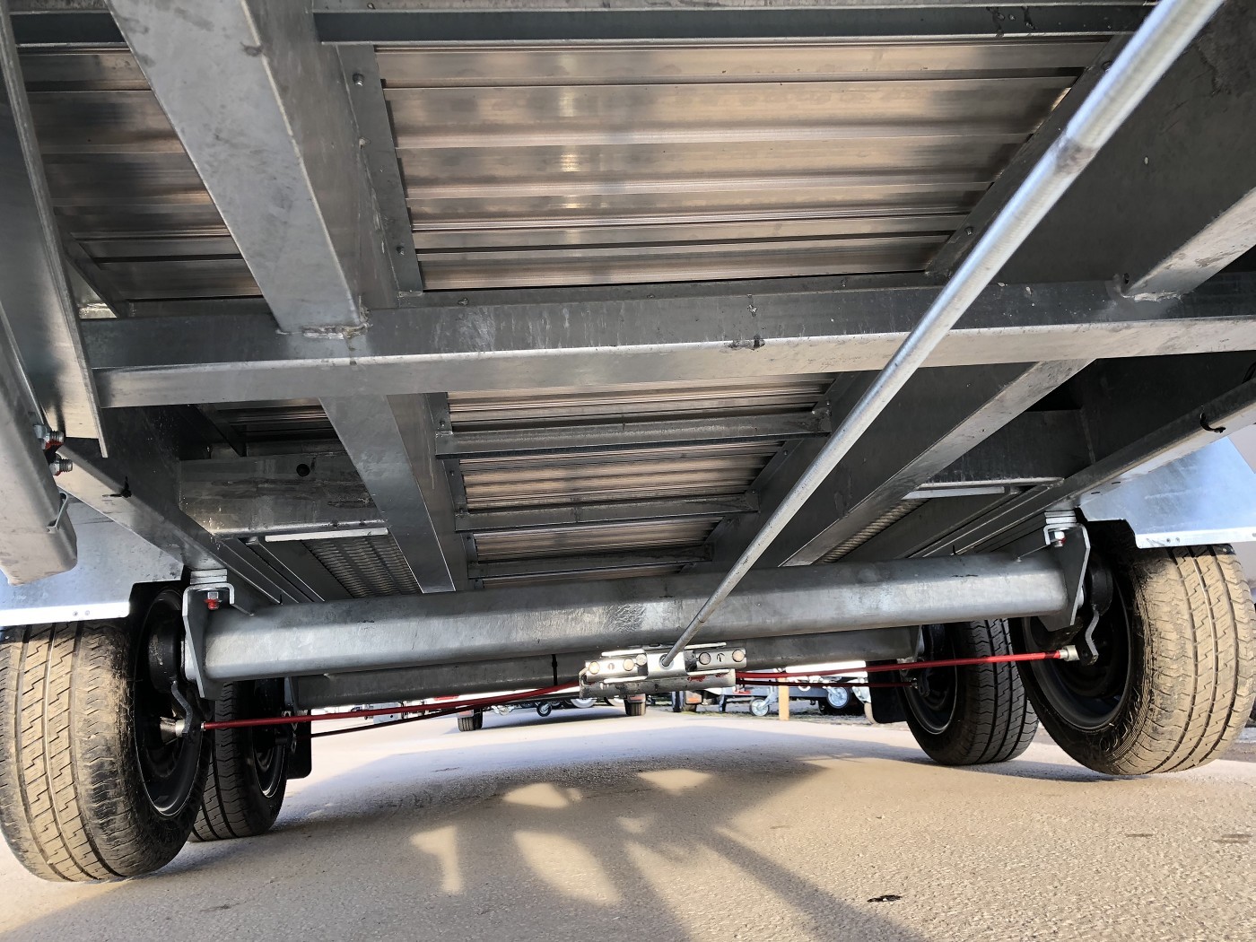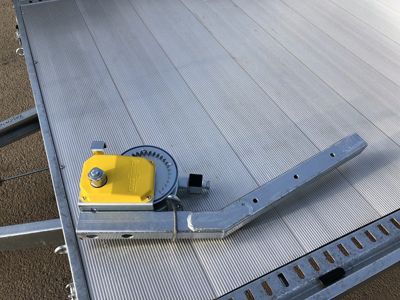 • 2 im Tauchbad feuerverzinkte Auffahrbohlen aus Gitterrost unter der Ladefläche eingeschoben