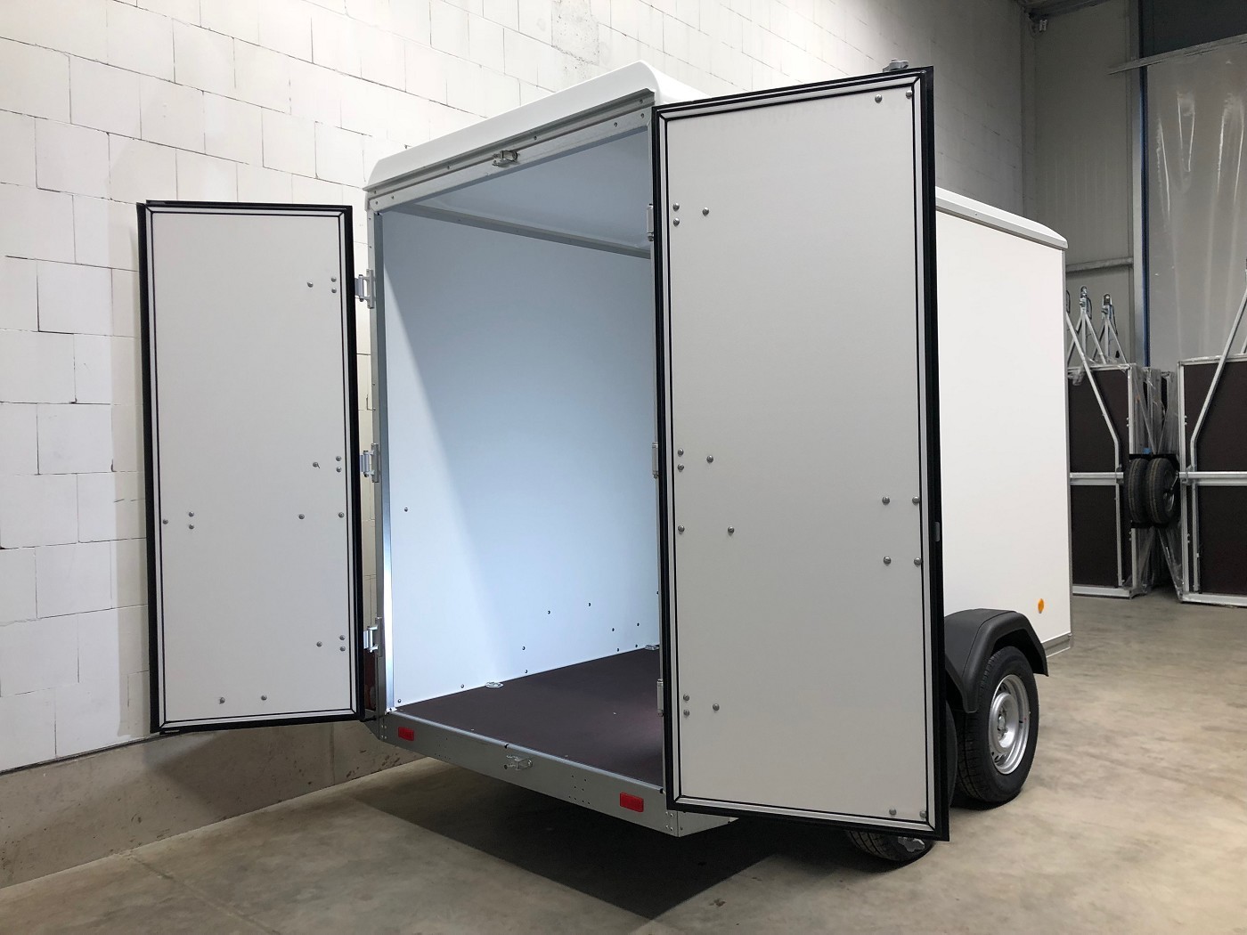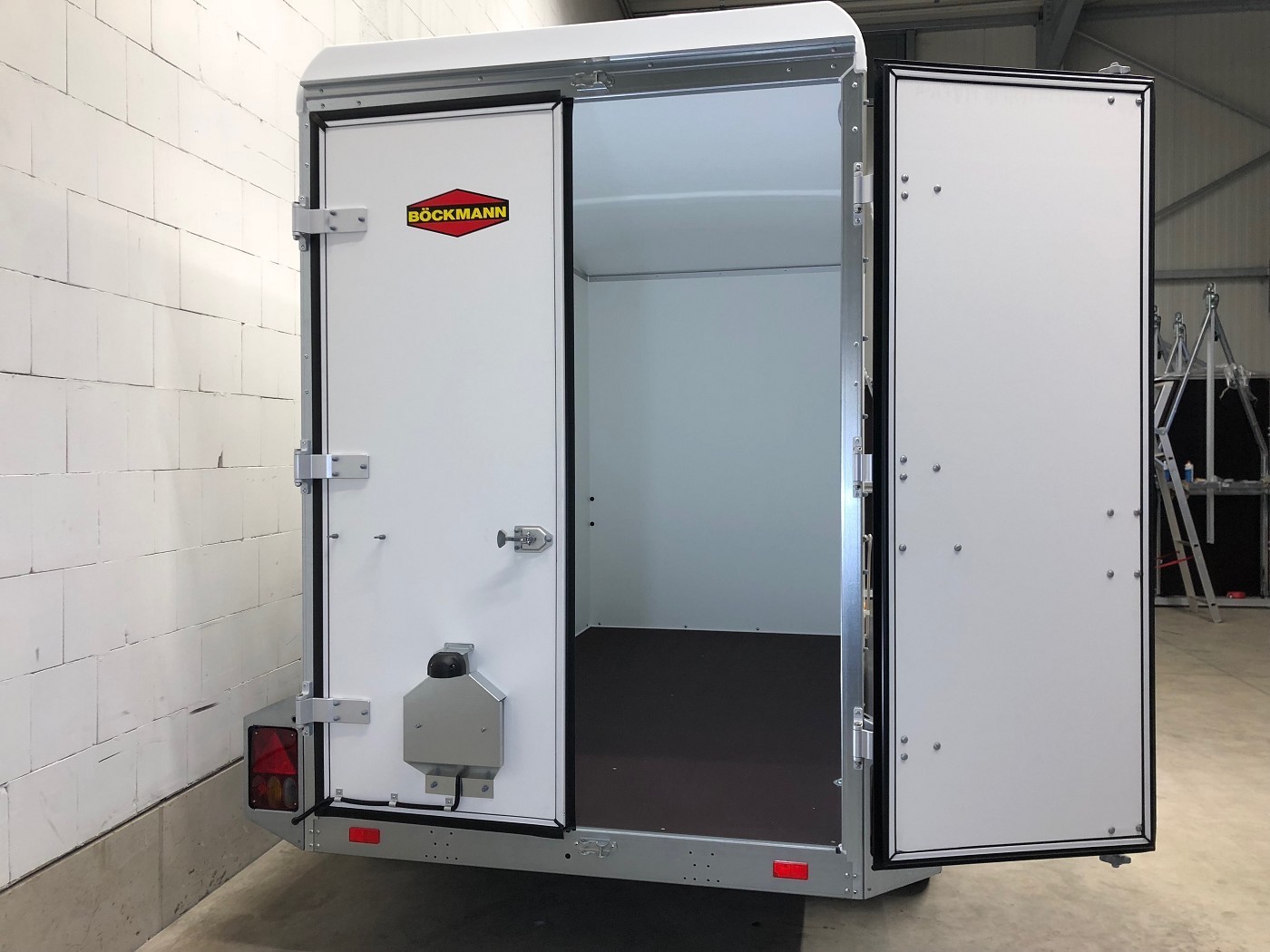 Böckmann Kofferanhänger mit niedrigem Fahrwerk und Doppelflügeltür hinten