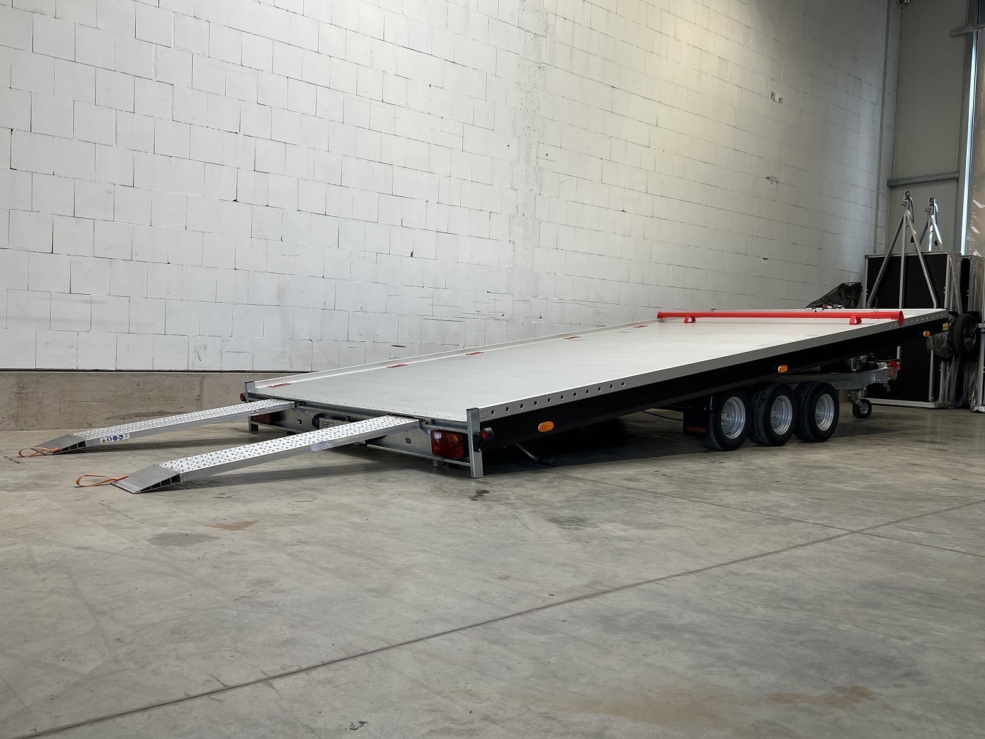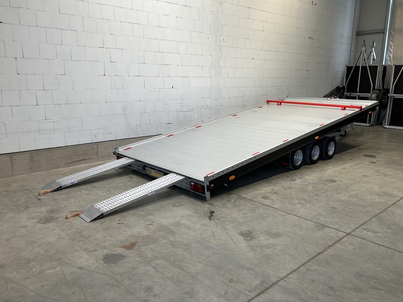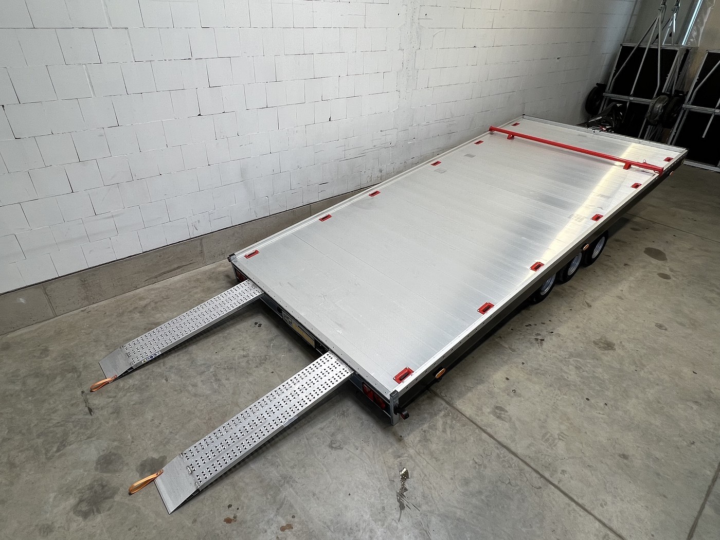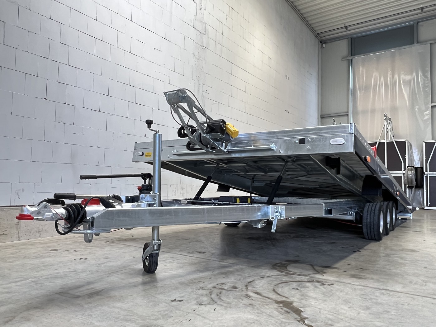 Kippbarer Autotransporter mit geschlossenem Aluboden – Tridem