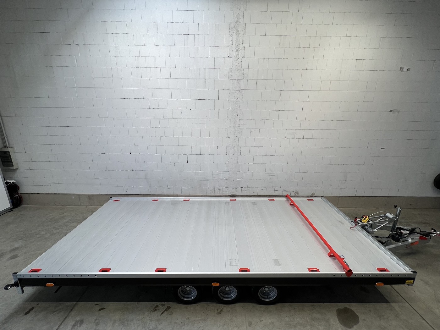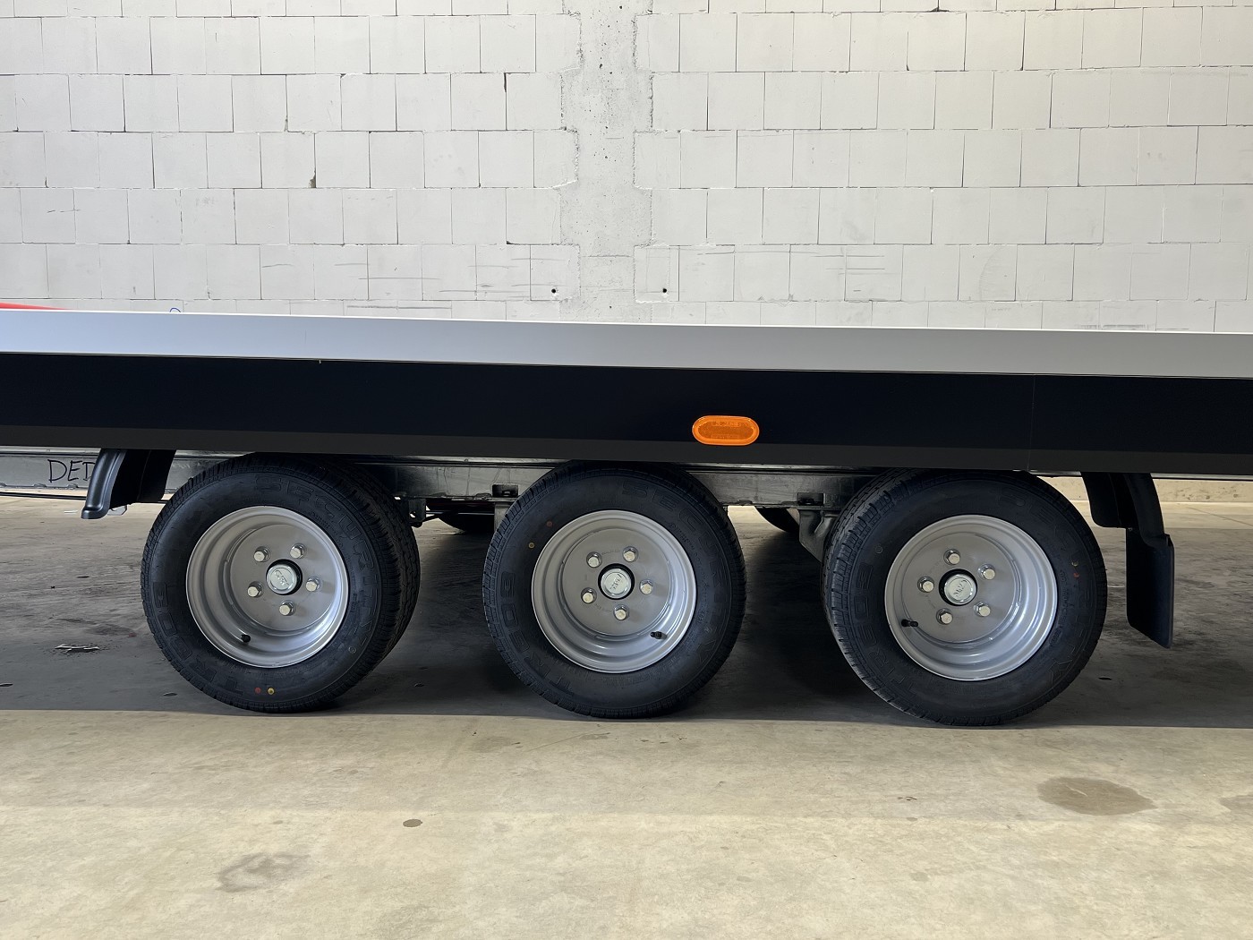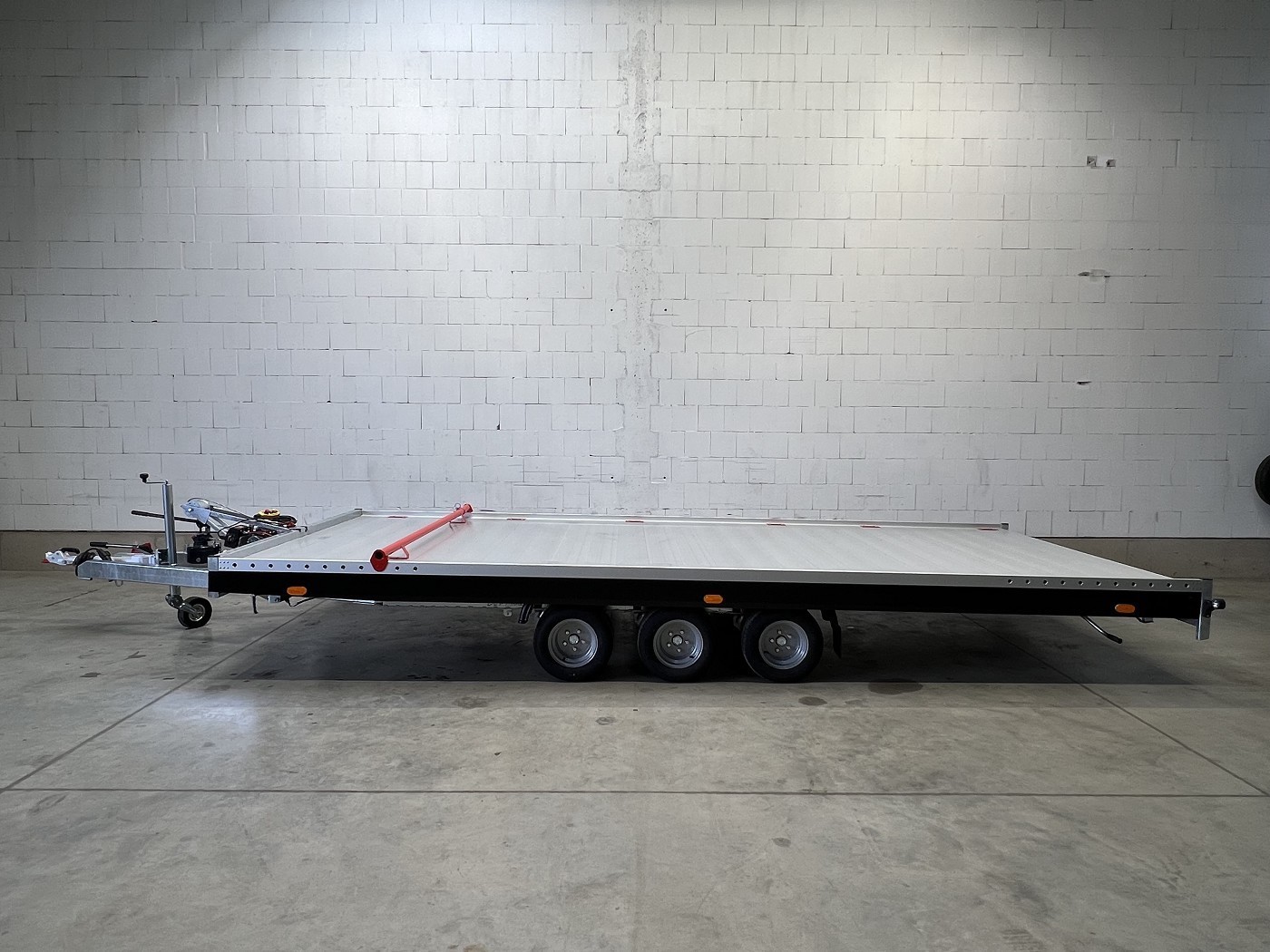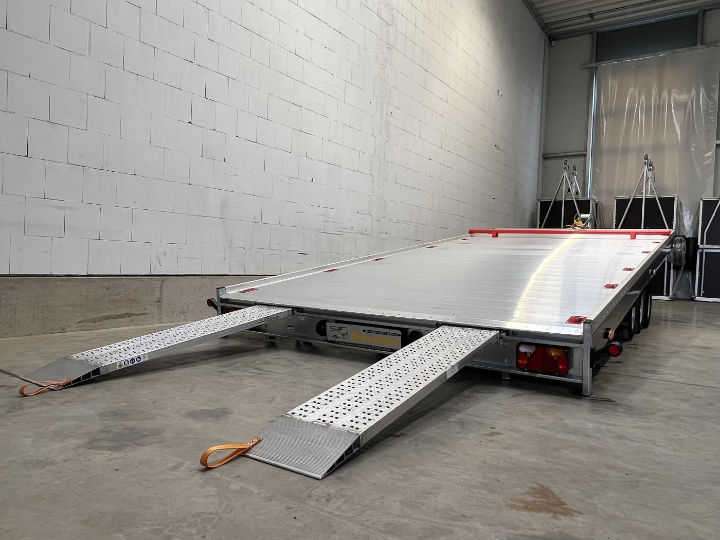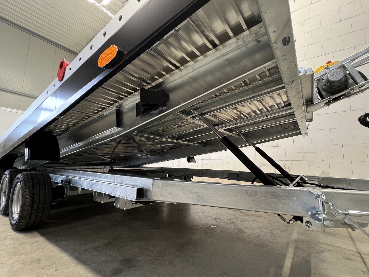 Kippbarer Autotransporter mit geschlossenem Aluboden – Tridem