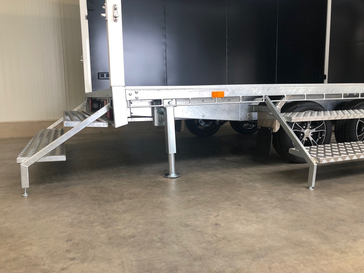 • 2 einhängbare Treppen (wahlweise seitlich oder auch hinten einhängbar)