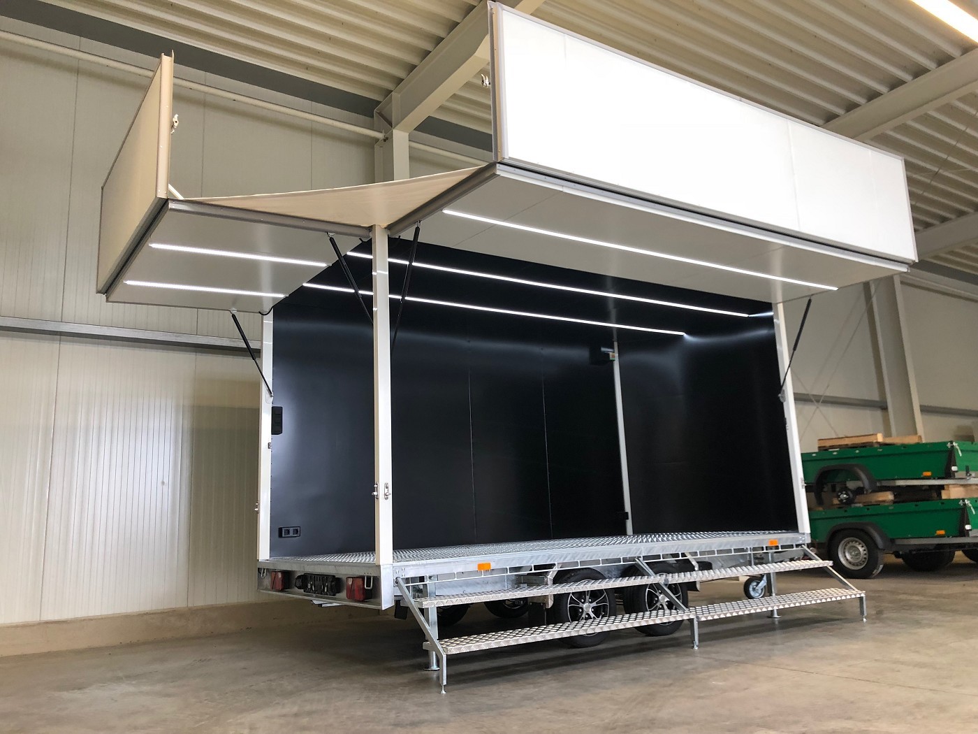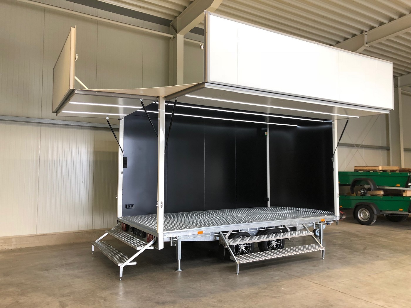 • Innenmaße (exclusive Rundung gemessen): 3950 X 2090 X 2150 mm L.B.H.