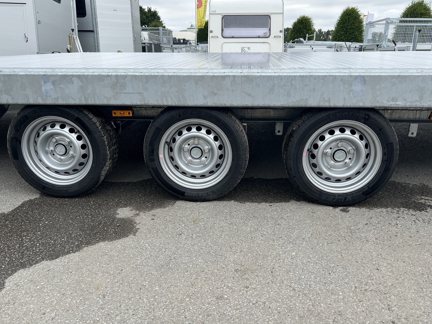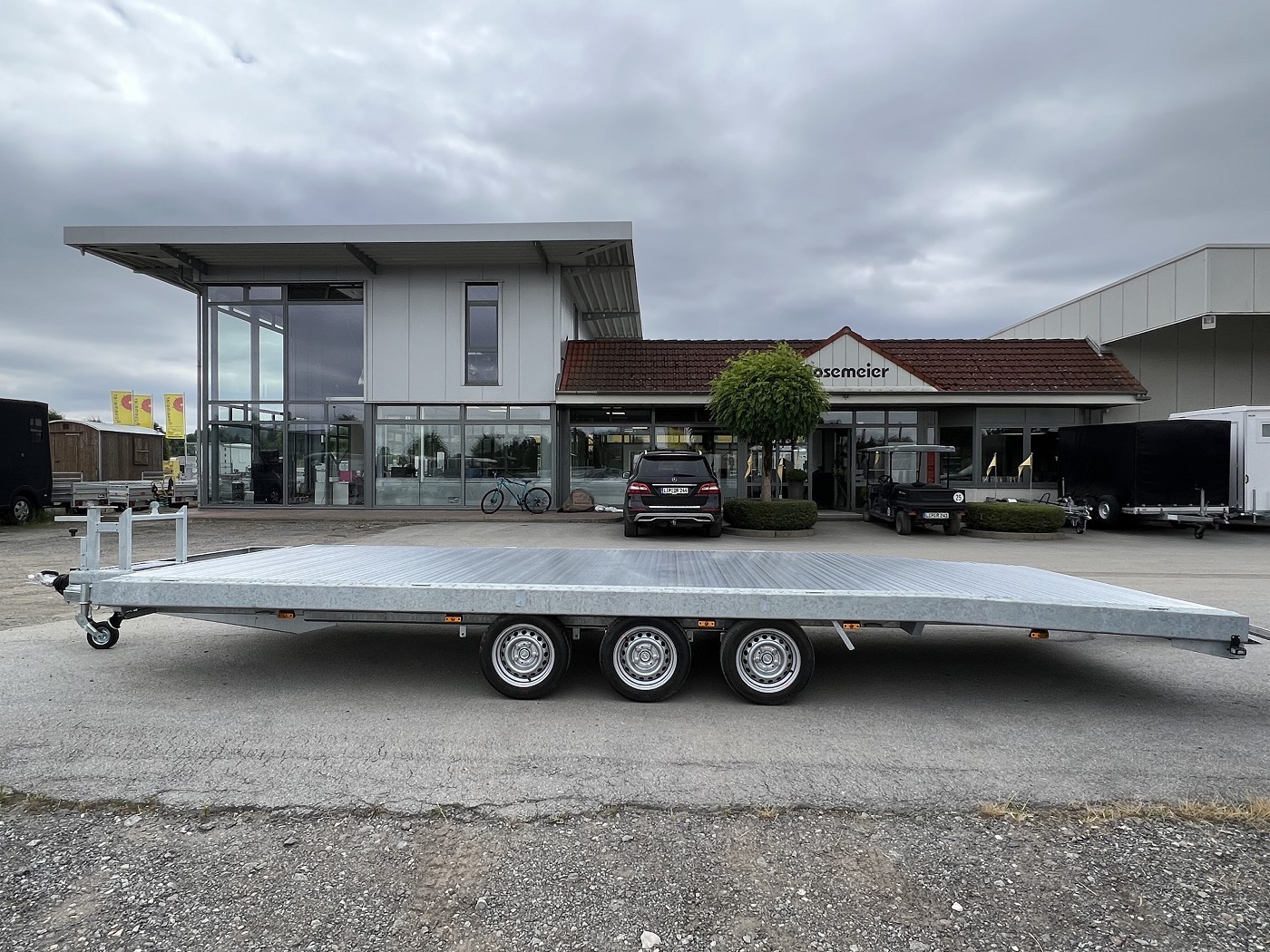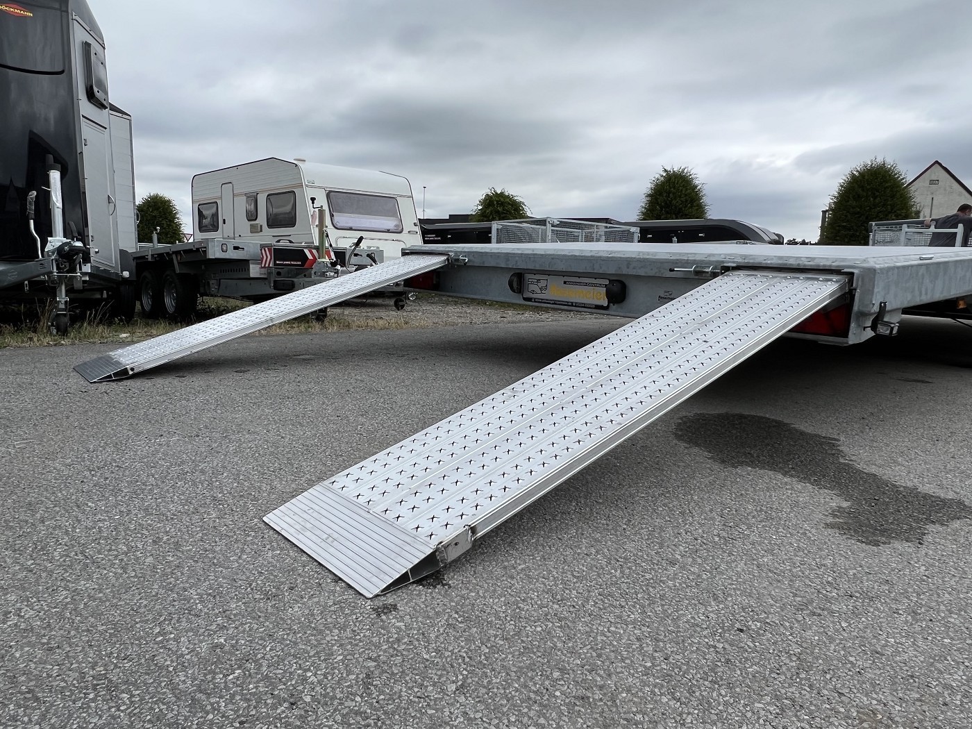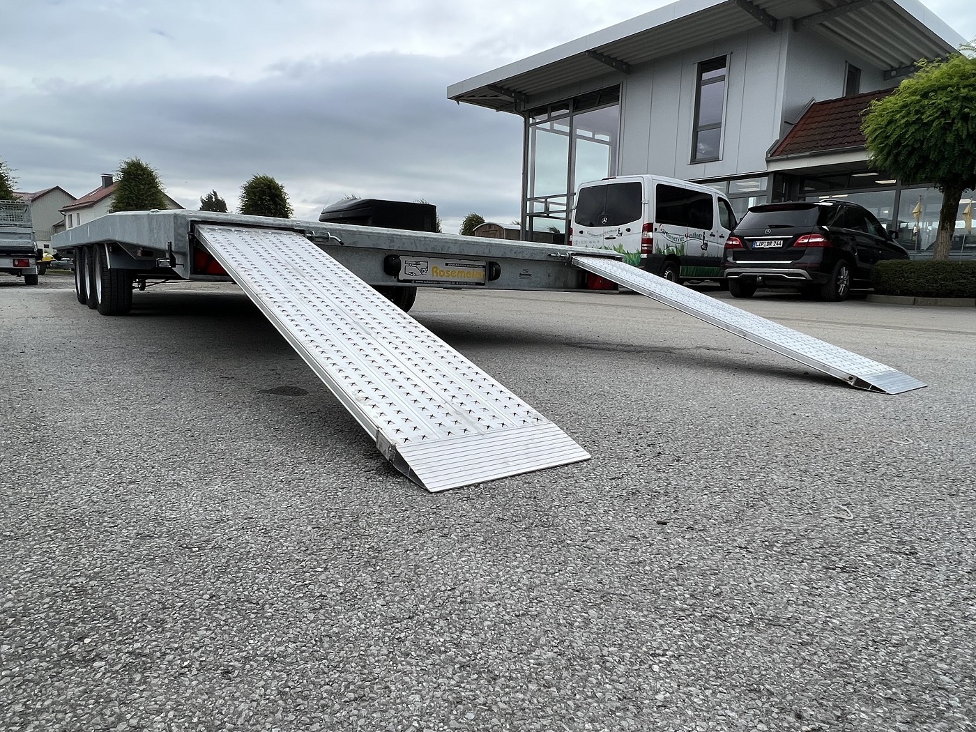 Stabiler Autotransporter Tridem mit Auffahrschienen unterschiebbar