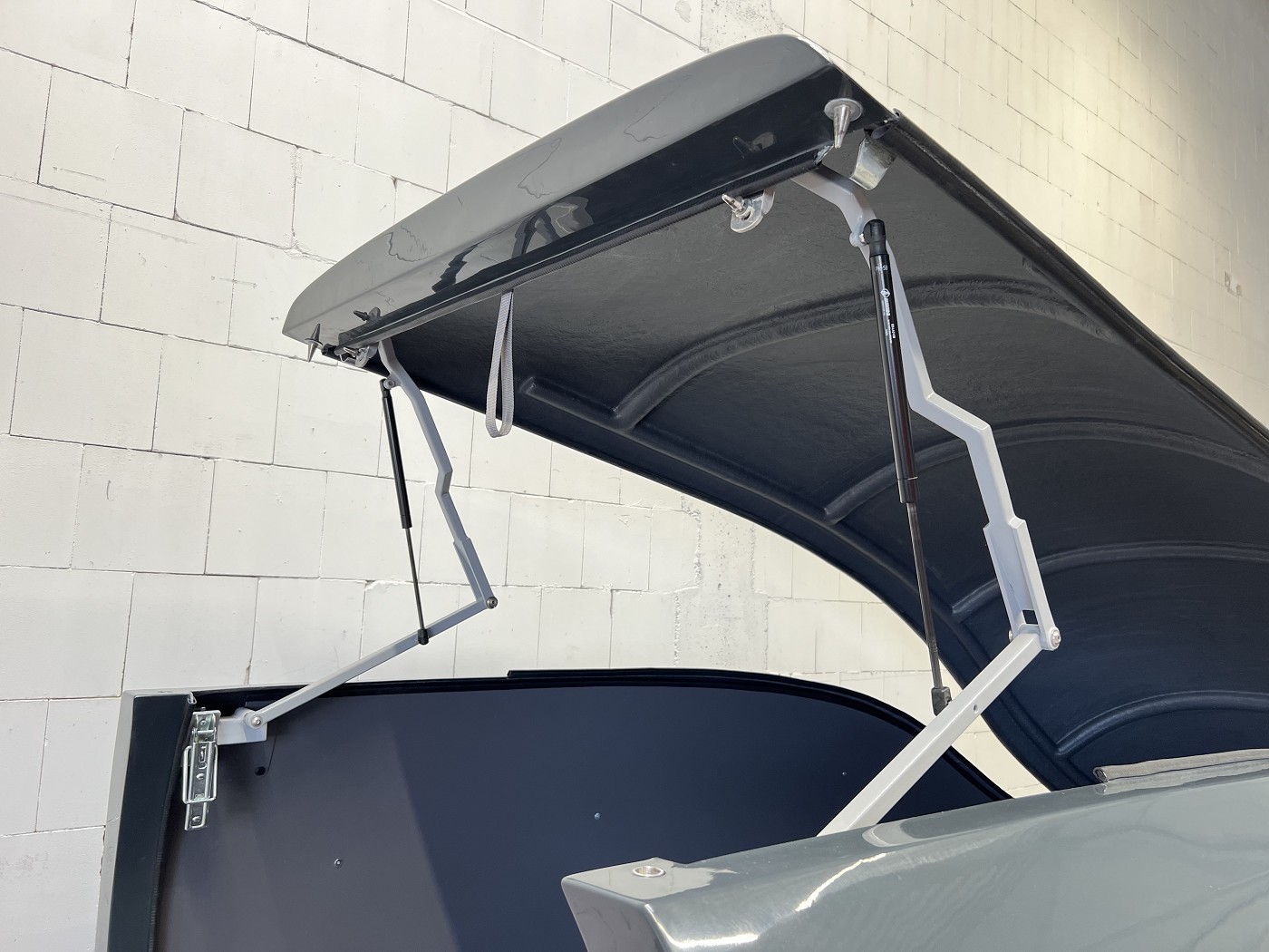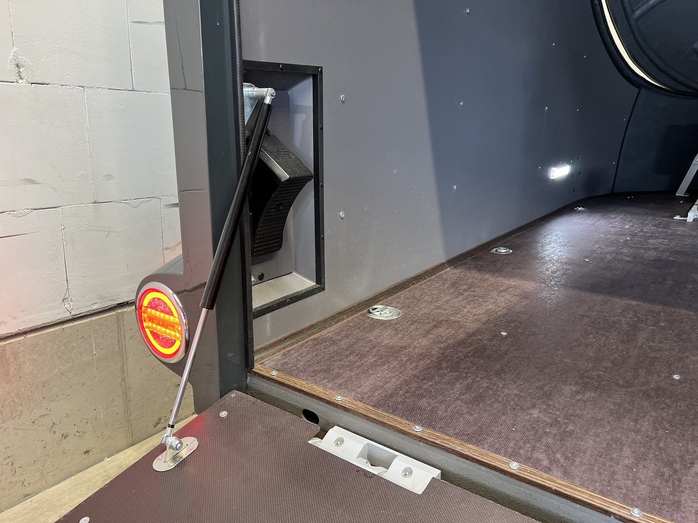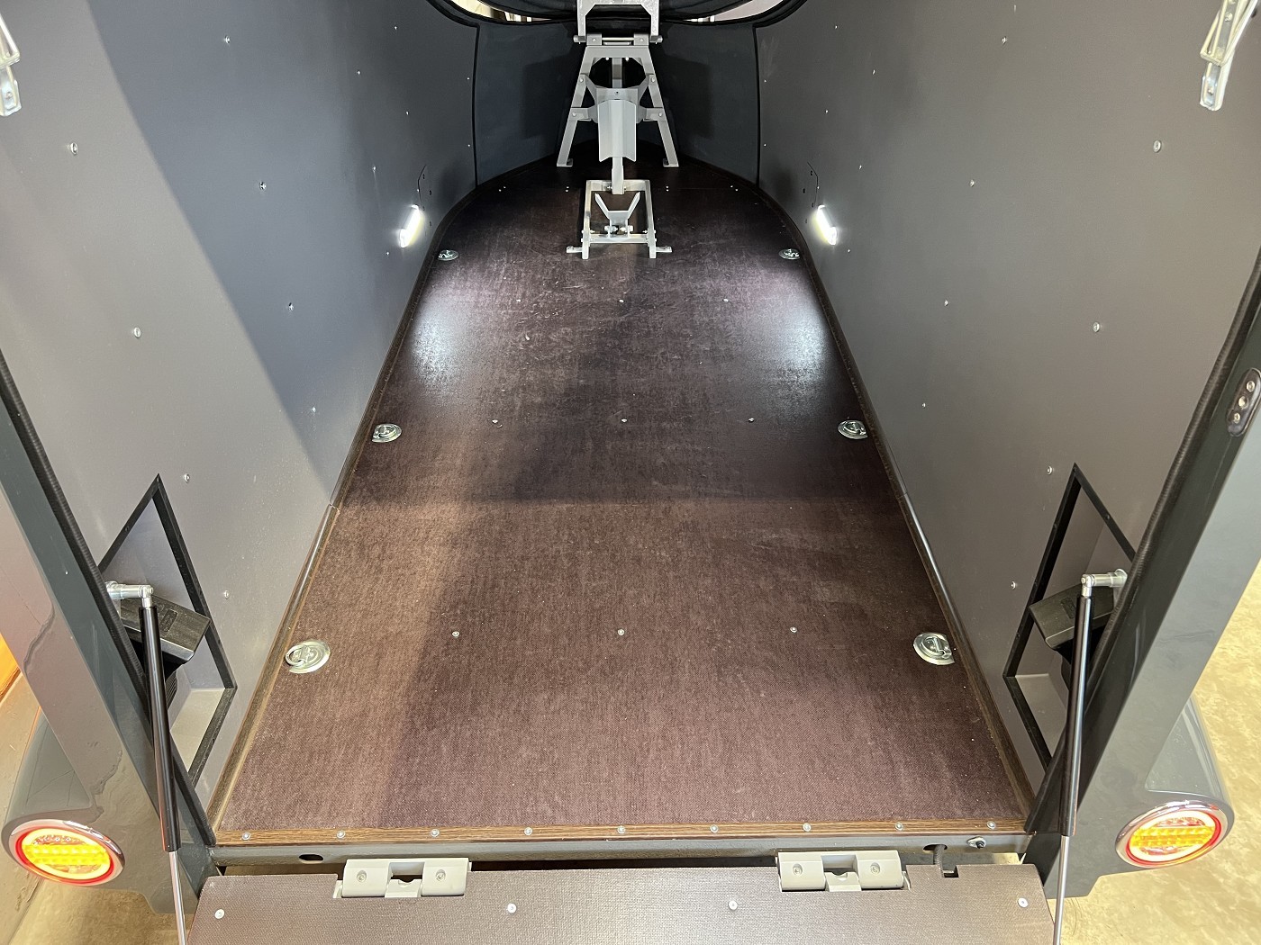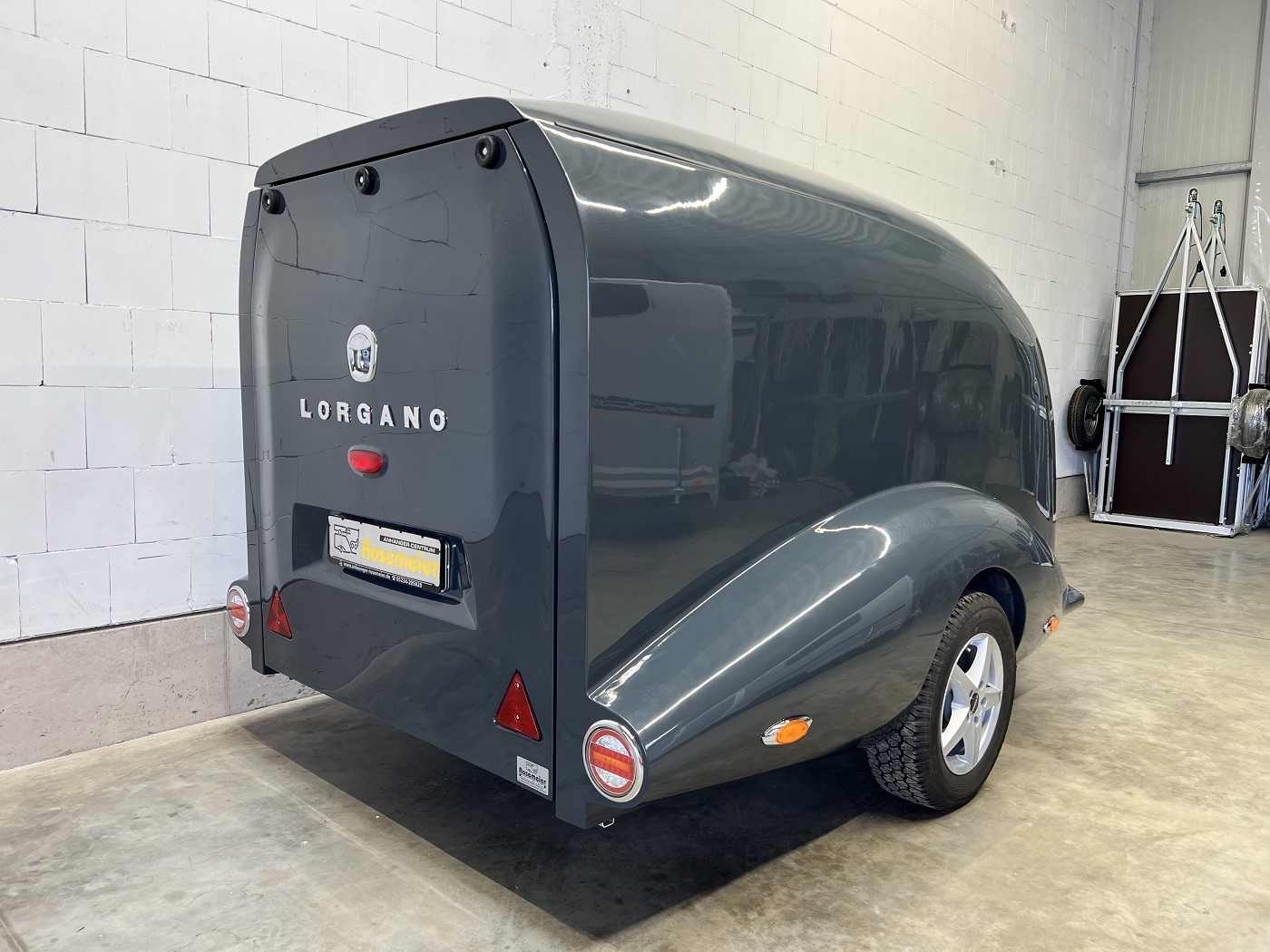 Stylischer Motoradanhänger in aerodynamischem Design mit aufstellbarem Dach