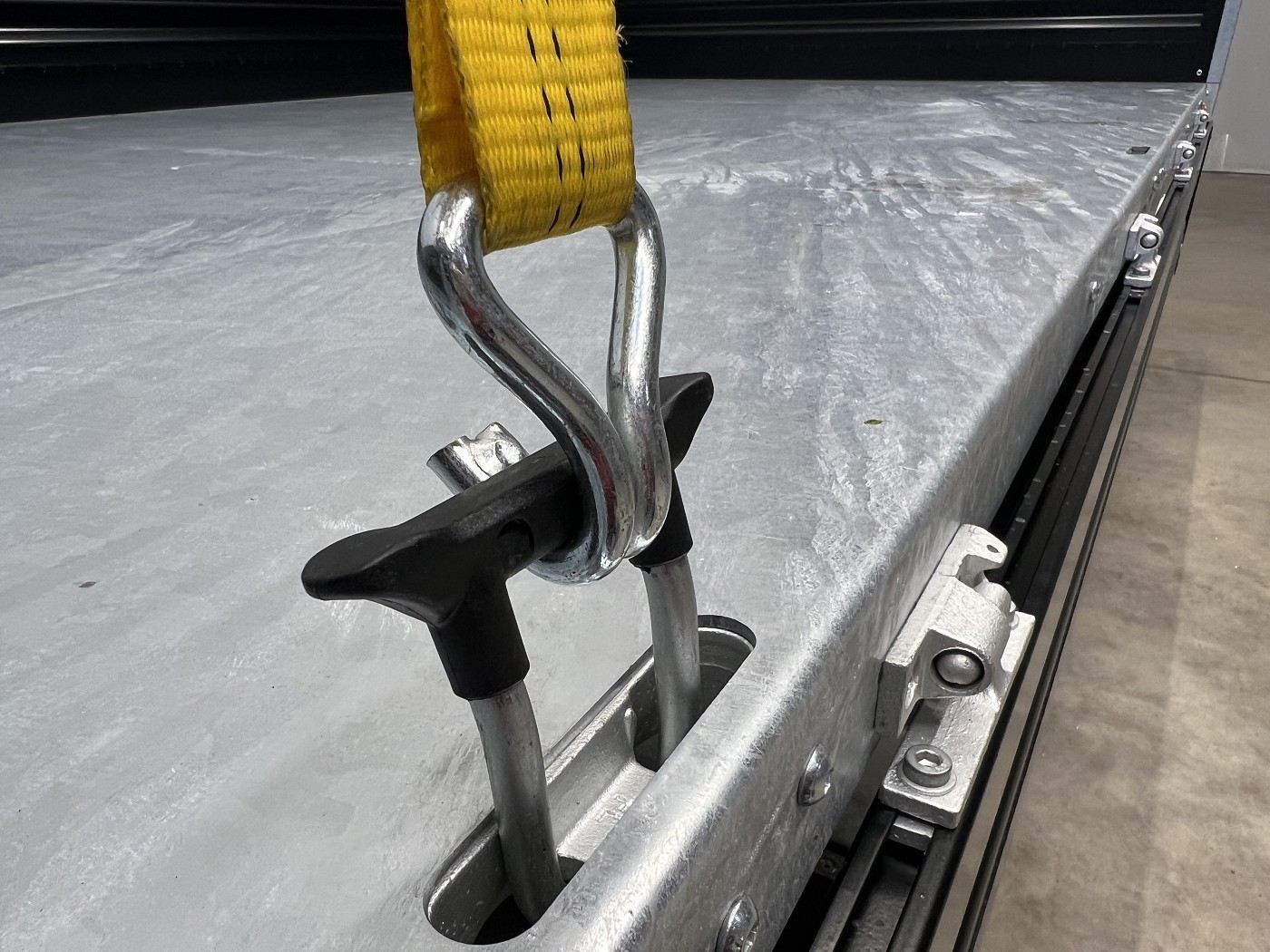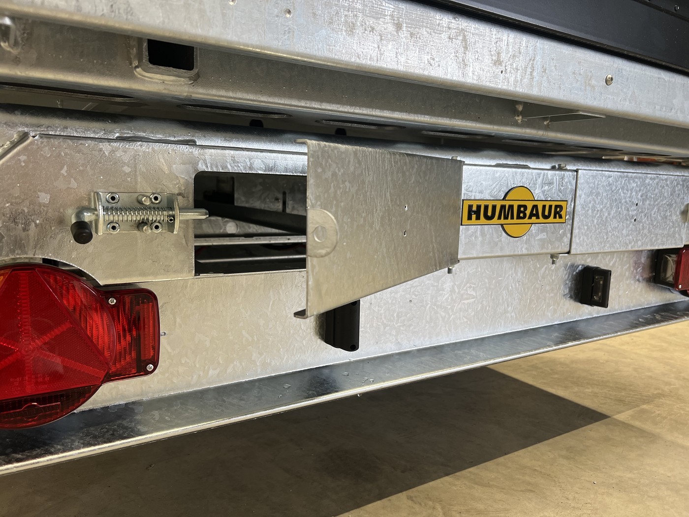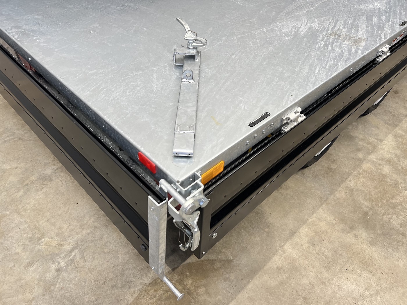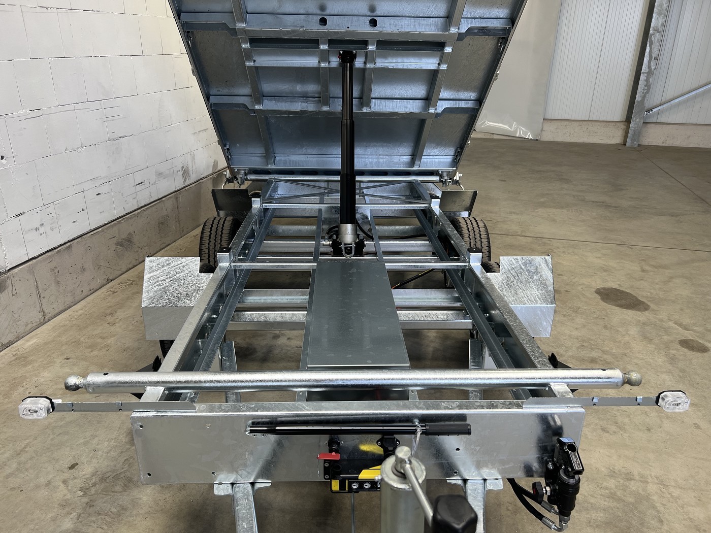 Humbaur Dreiseitenkipper mit E-Pumpe und schwarzen Stahlbordwänden