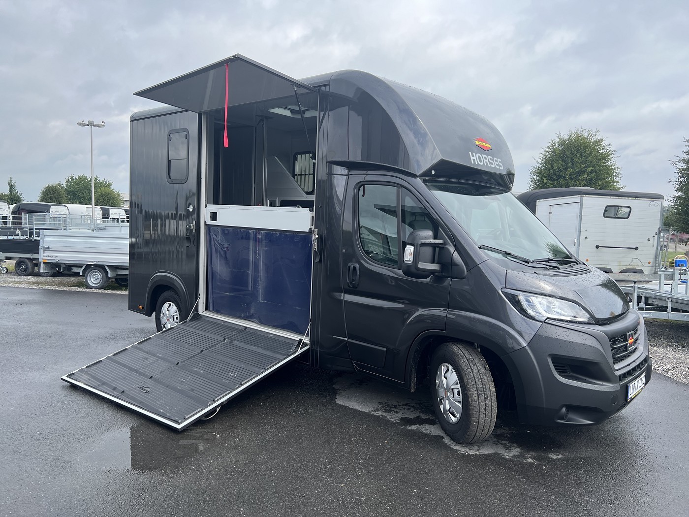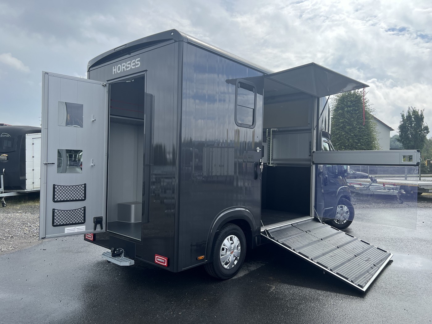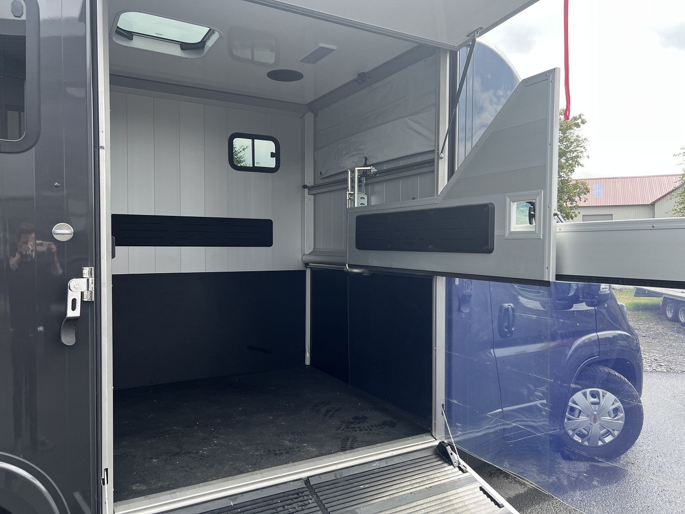 Sattelraum ausgestattet. Die Verladung des Pferdes gestaltet sich dank einer schwenk und optional verschiebbaren Trennwand einfach.