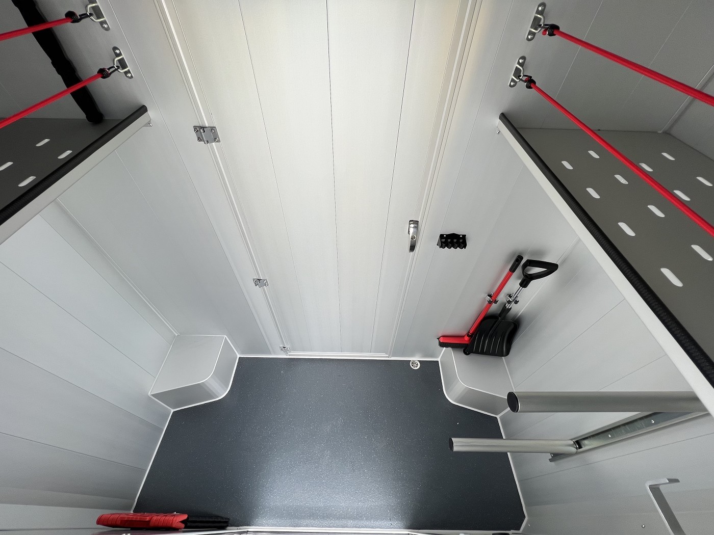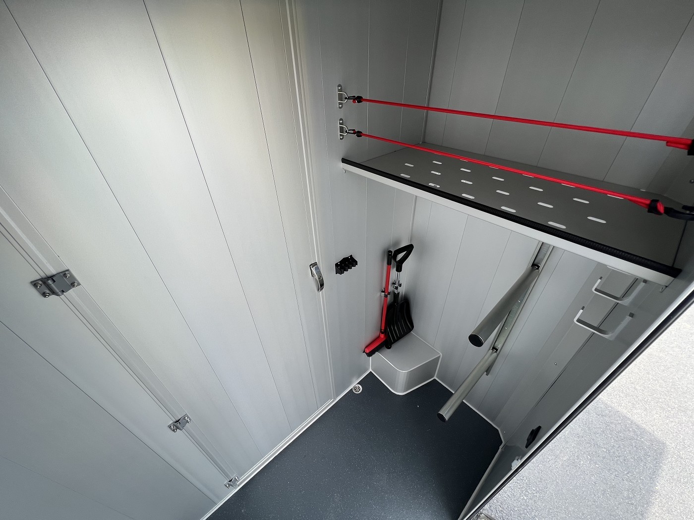 Der Durchgang vom Sattelraum zum Pferderaum kann mit einer optional verschließbaren Tür verschlossen werden.