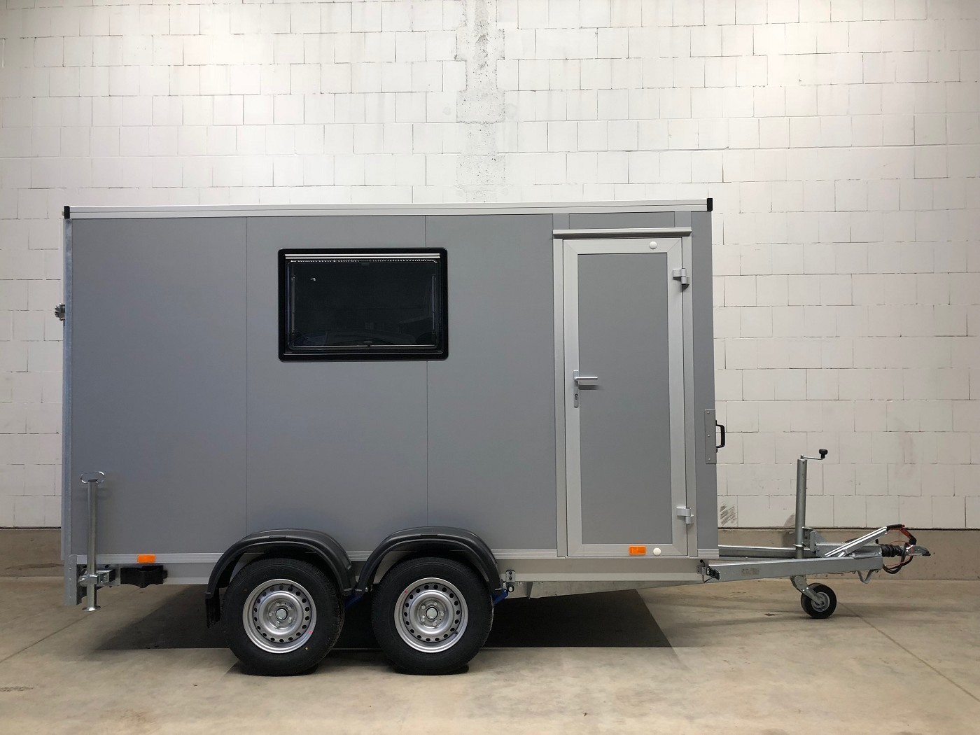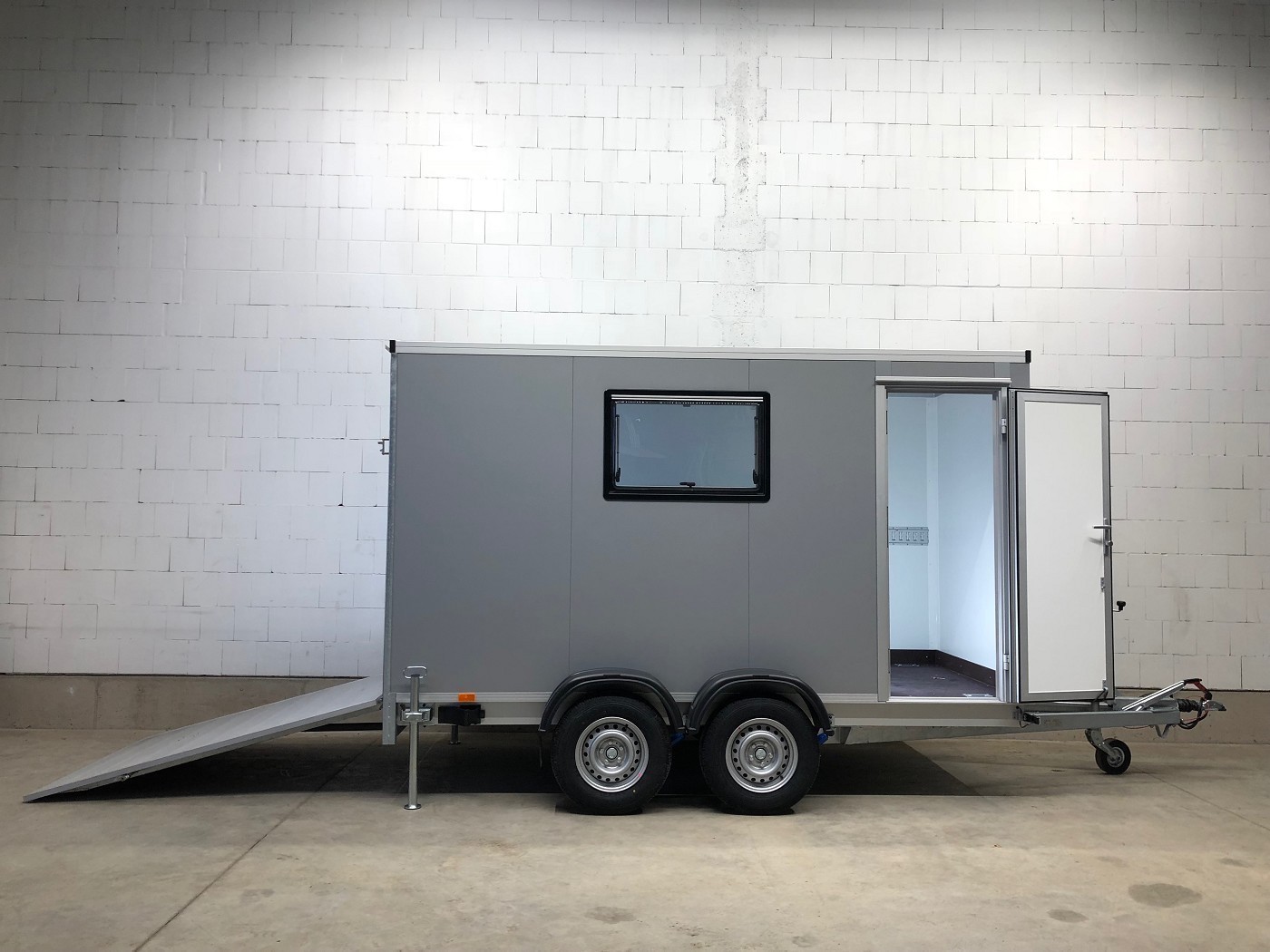 Kofferanhänger in silber mit Rampe, Seitentür und Fenster