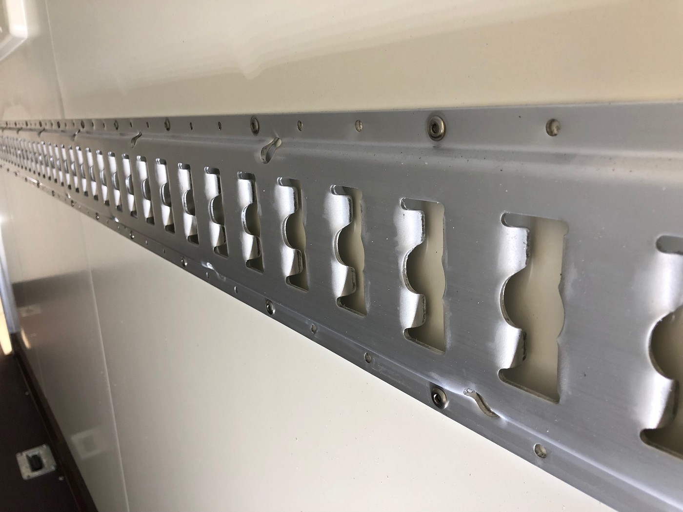 • Eine Reihe Verzurrschiene beidseitig für zusätzliche Ösen oder Sperrstangen montiert auf 900 mm (Mitte Schiene)