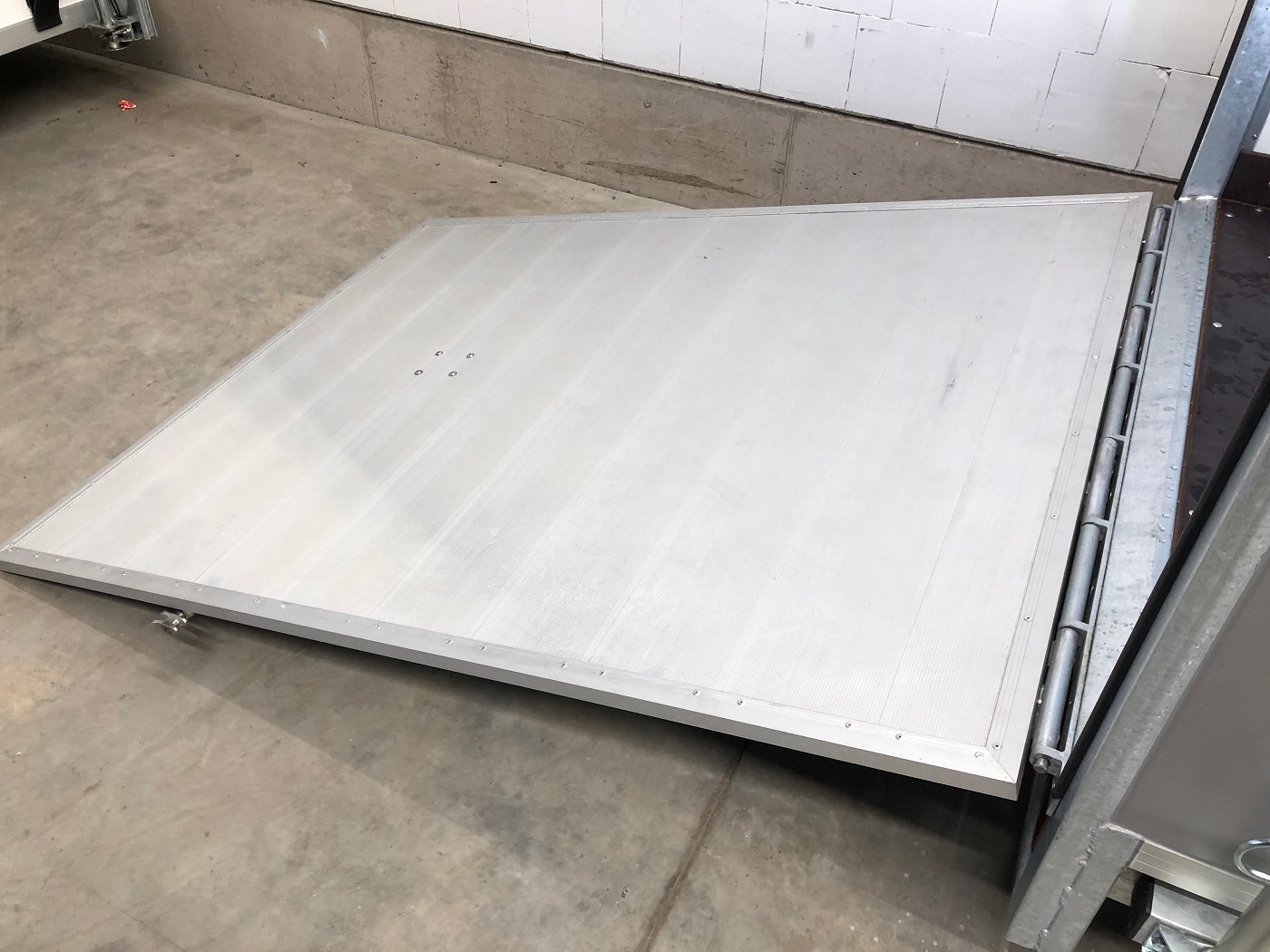 • Auffahrrampe aus Aluminium mit 4 Unterzügen und Hebehilfe