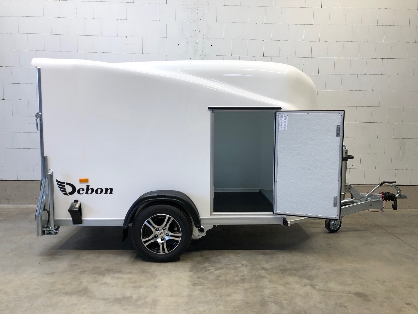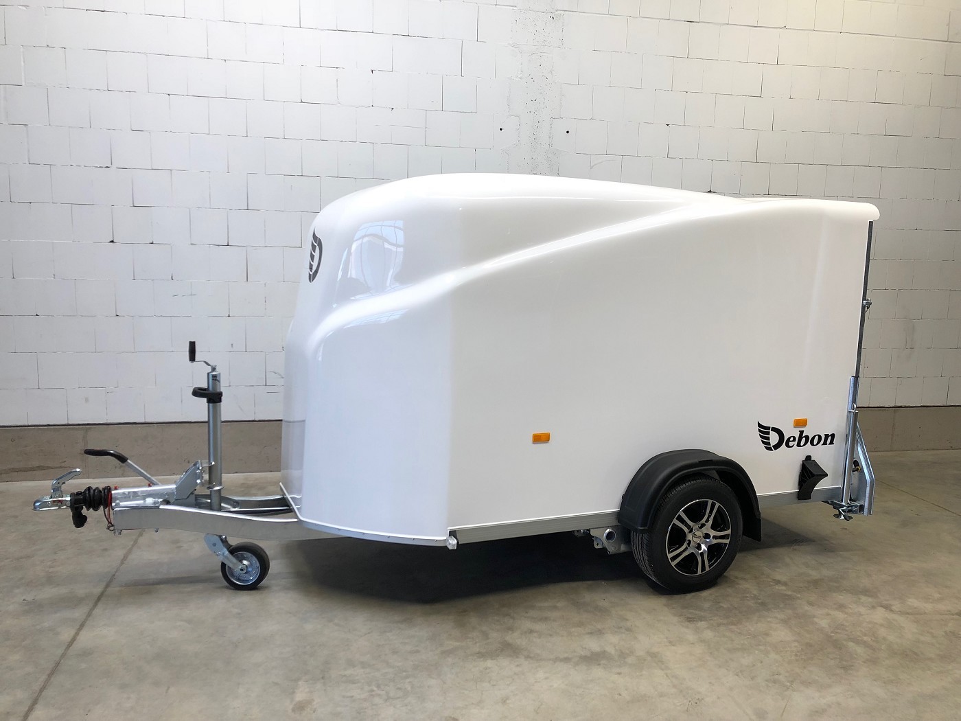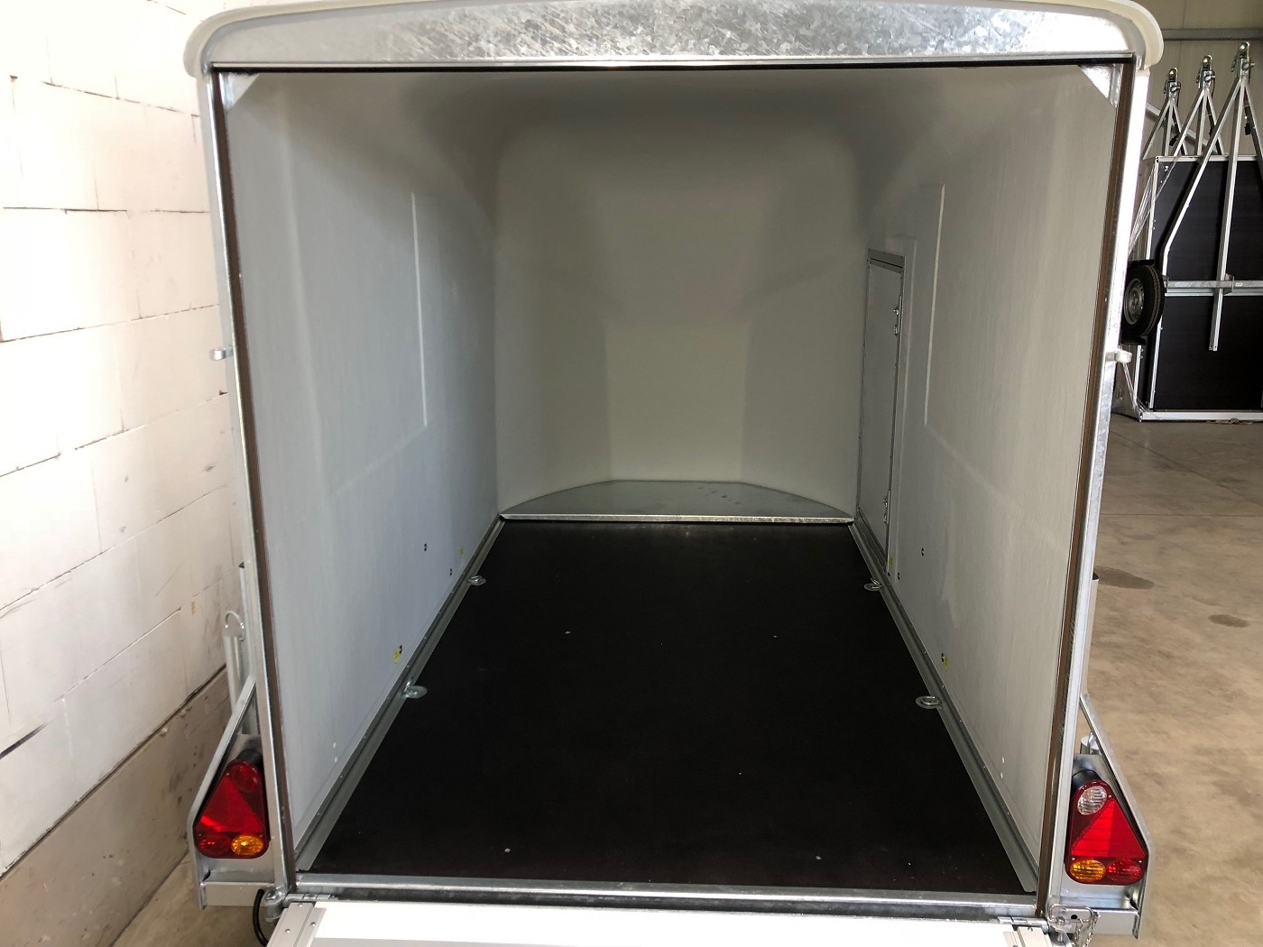 Gebrauchter Kofferanhänger – Motorradanhänger Vollpolyester mit Seitentür und Alu-Felgen