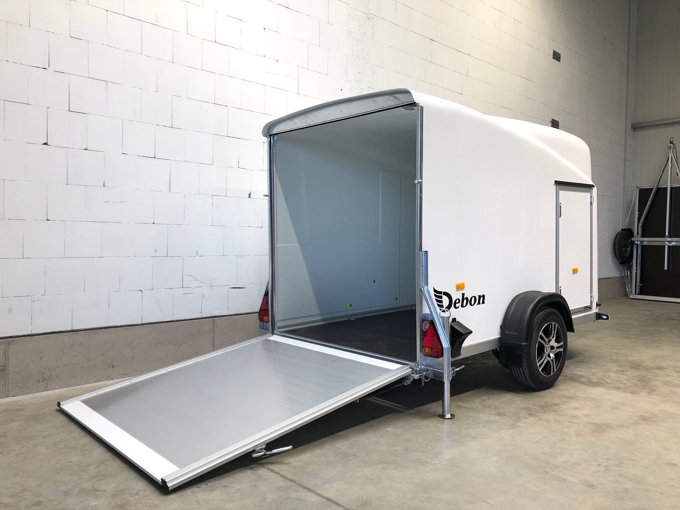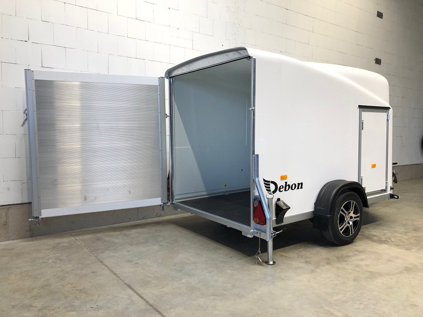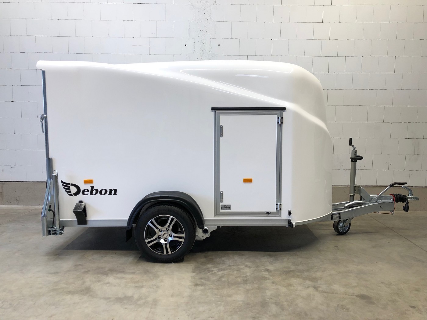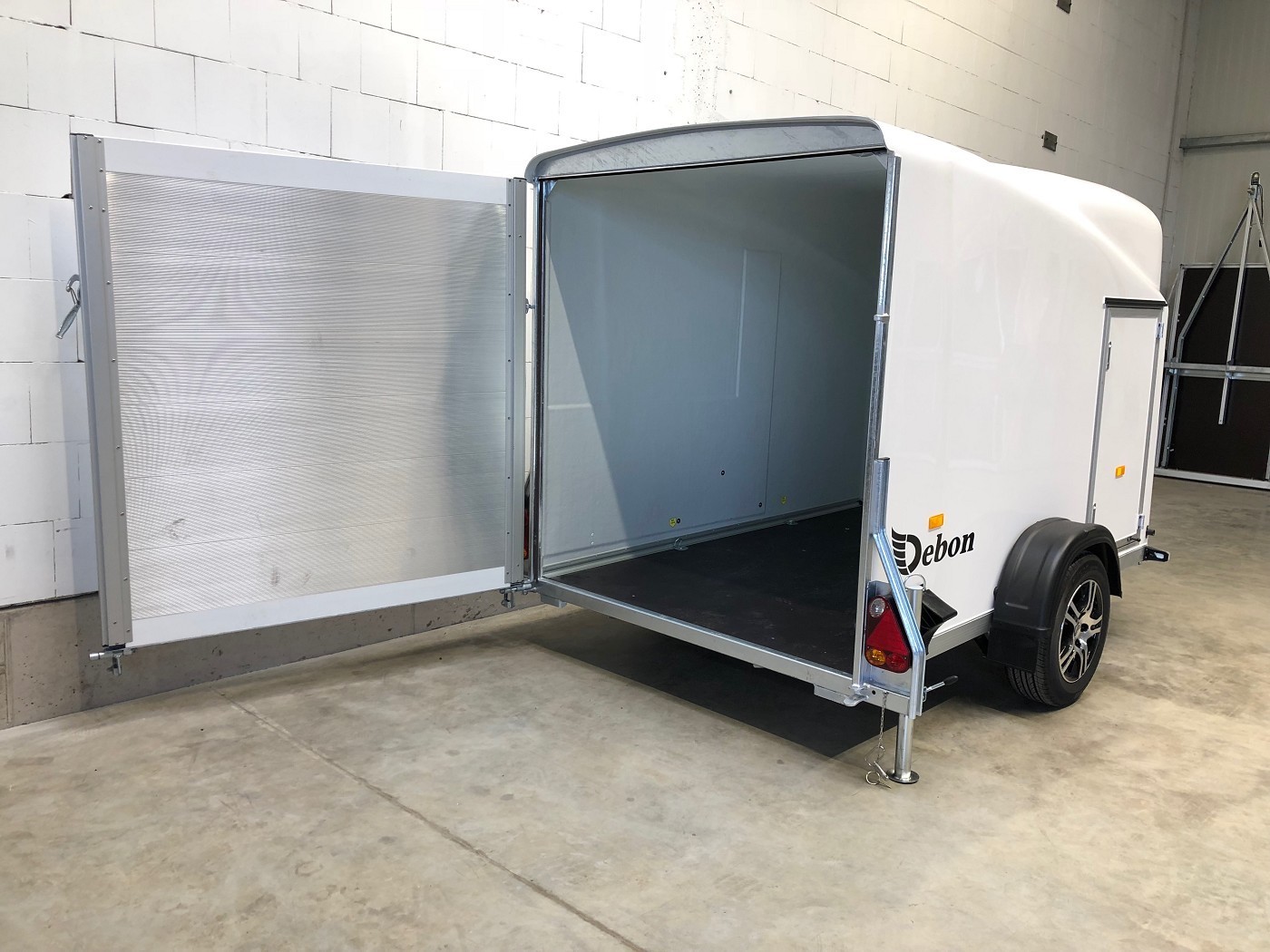 Gebrauchter Kofferanhänger – Motorradanhänger Vollpolyester mit Seitentür und Alu-Felgen