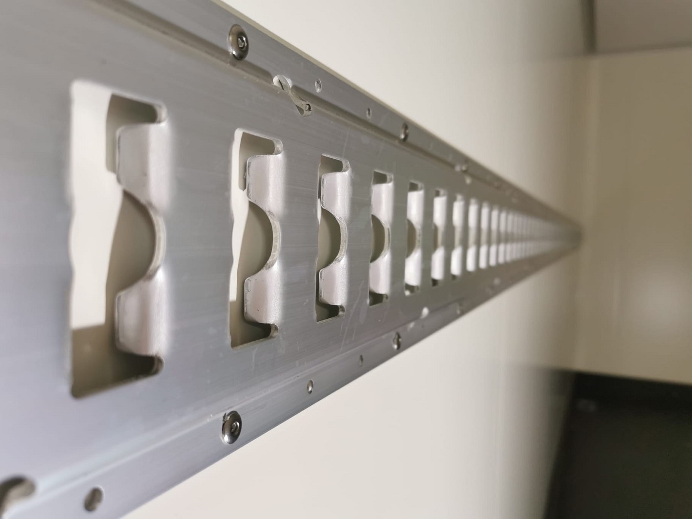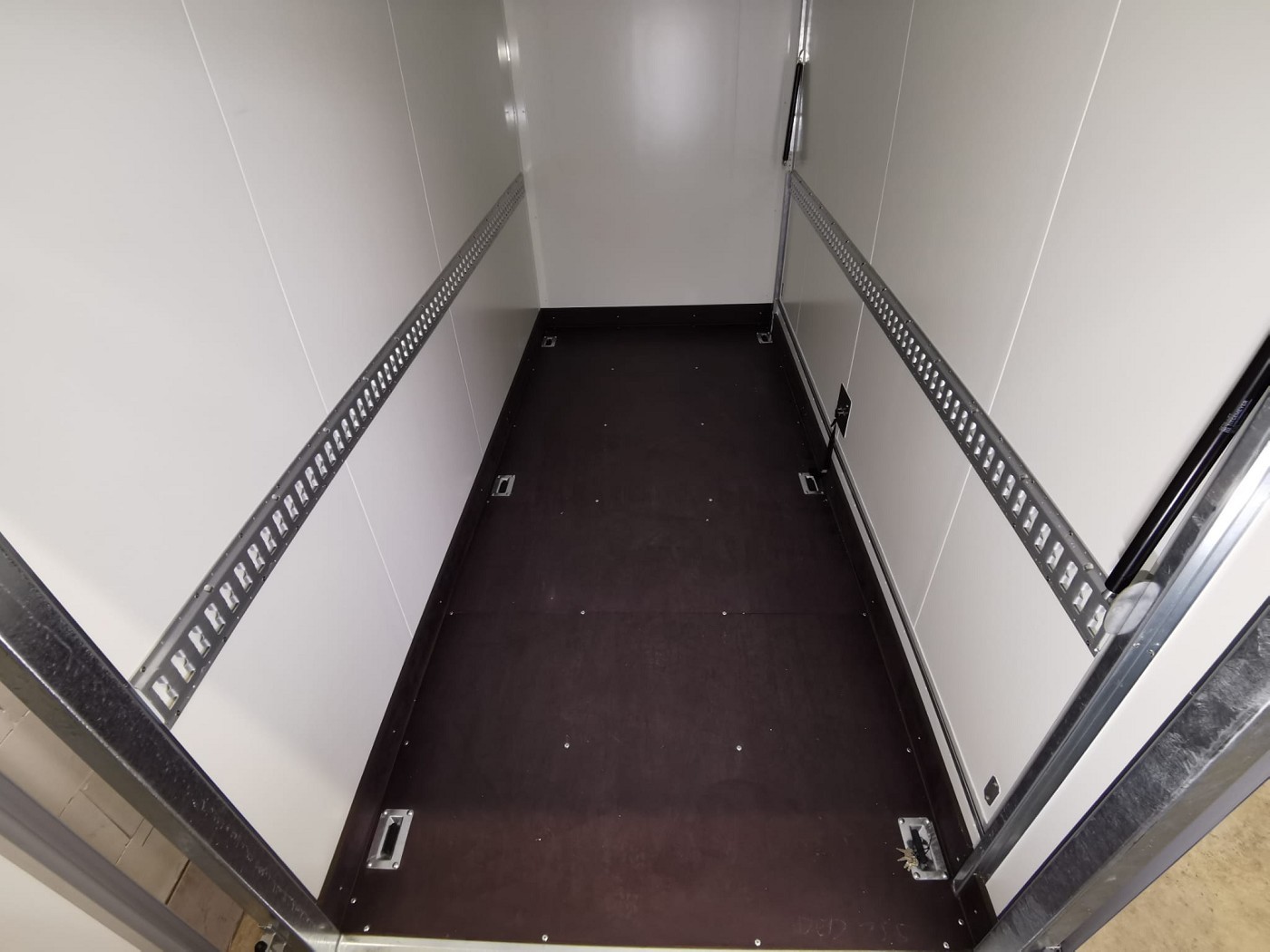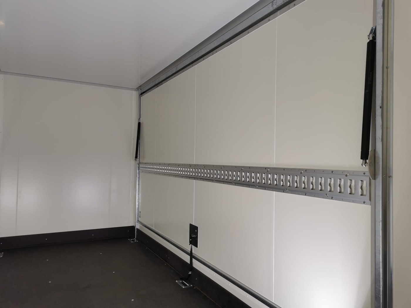 Eine Reihe Verzurrschiene beidseitig für zusätzliche Ösen oder Sperrstangen montiert auf 900 mm (Mitte Schiene)