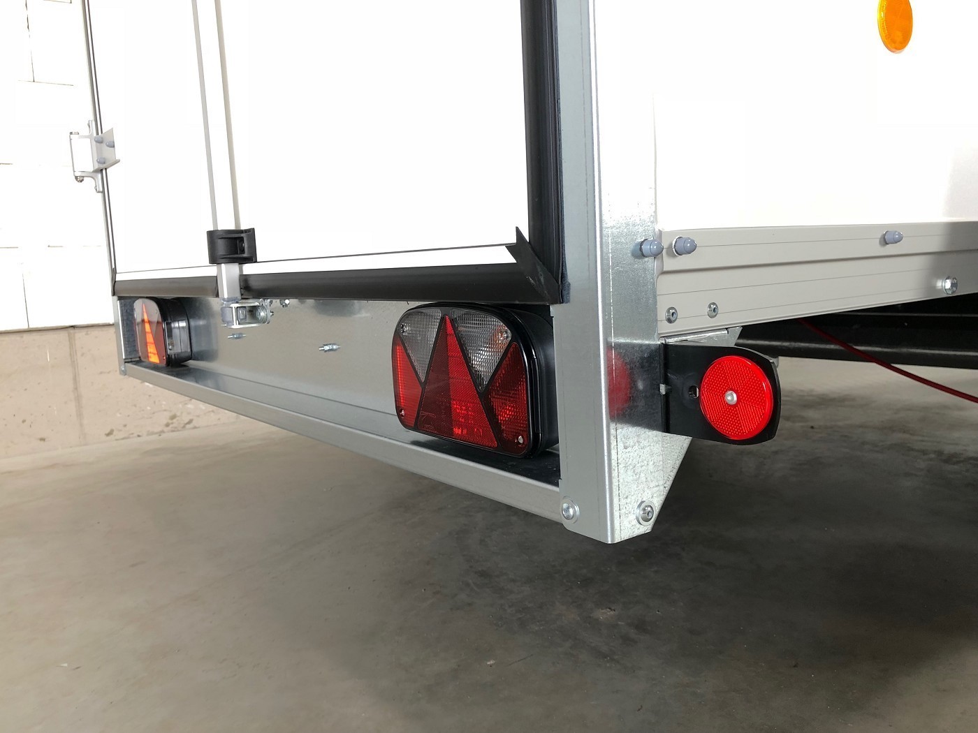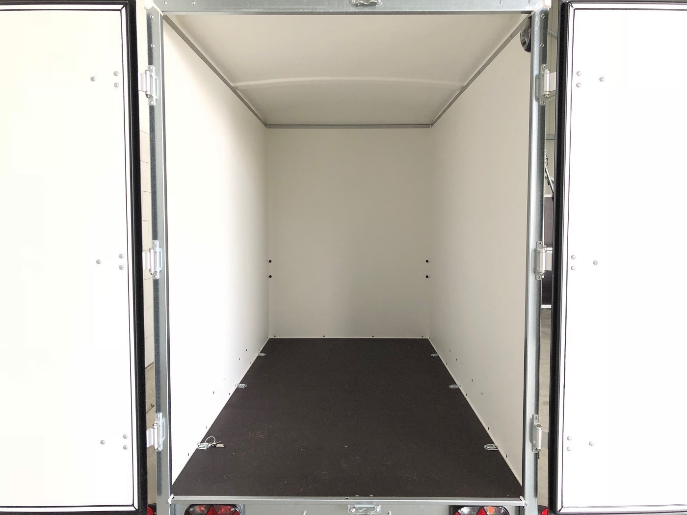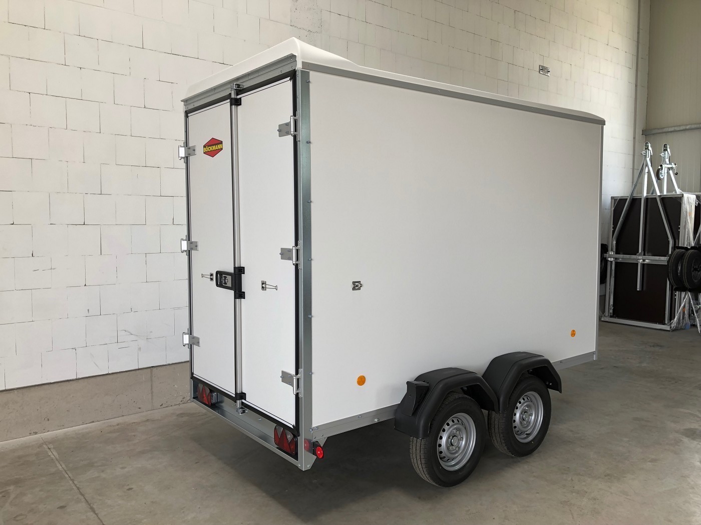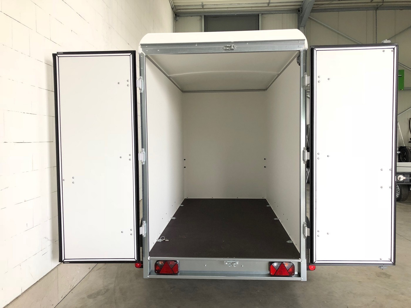 Kofferanhänger mit Doppelflügeltür hinten mit weißem Polyesterdeckel