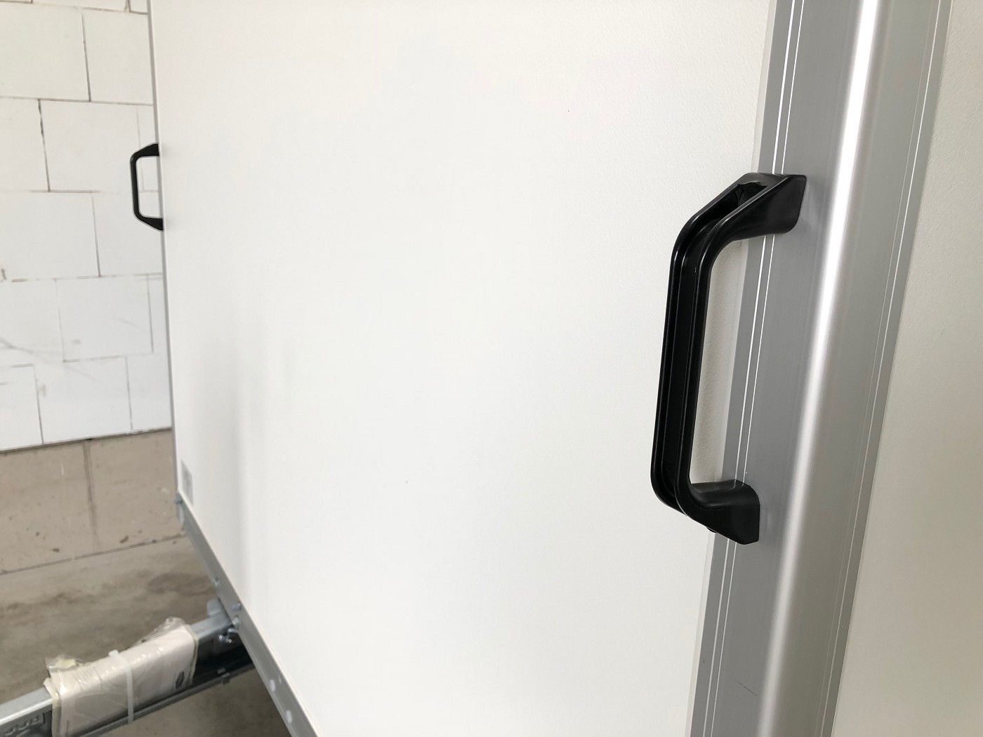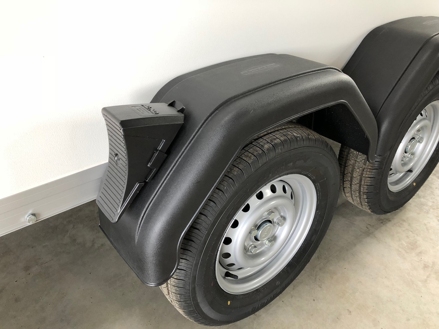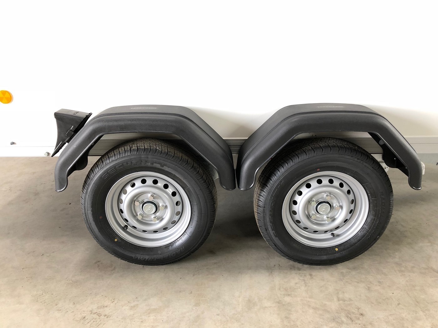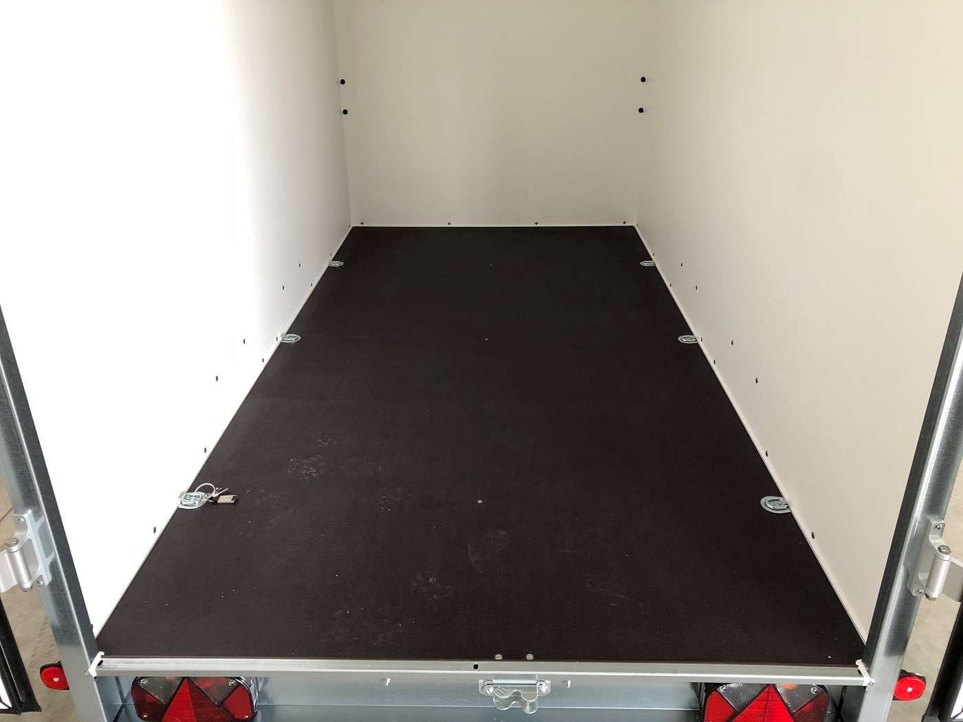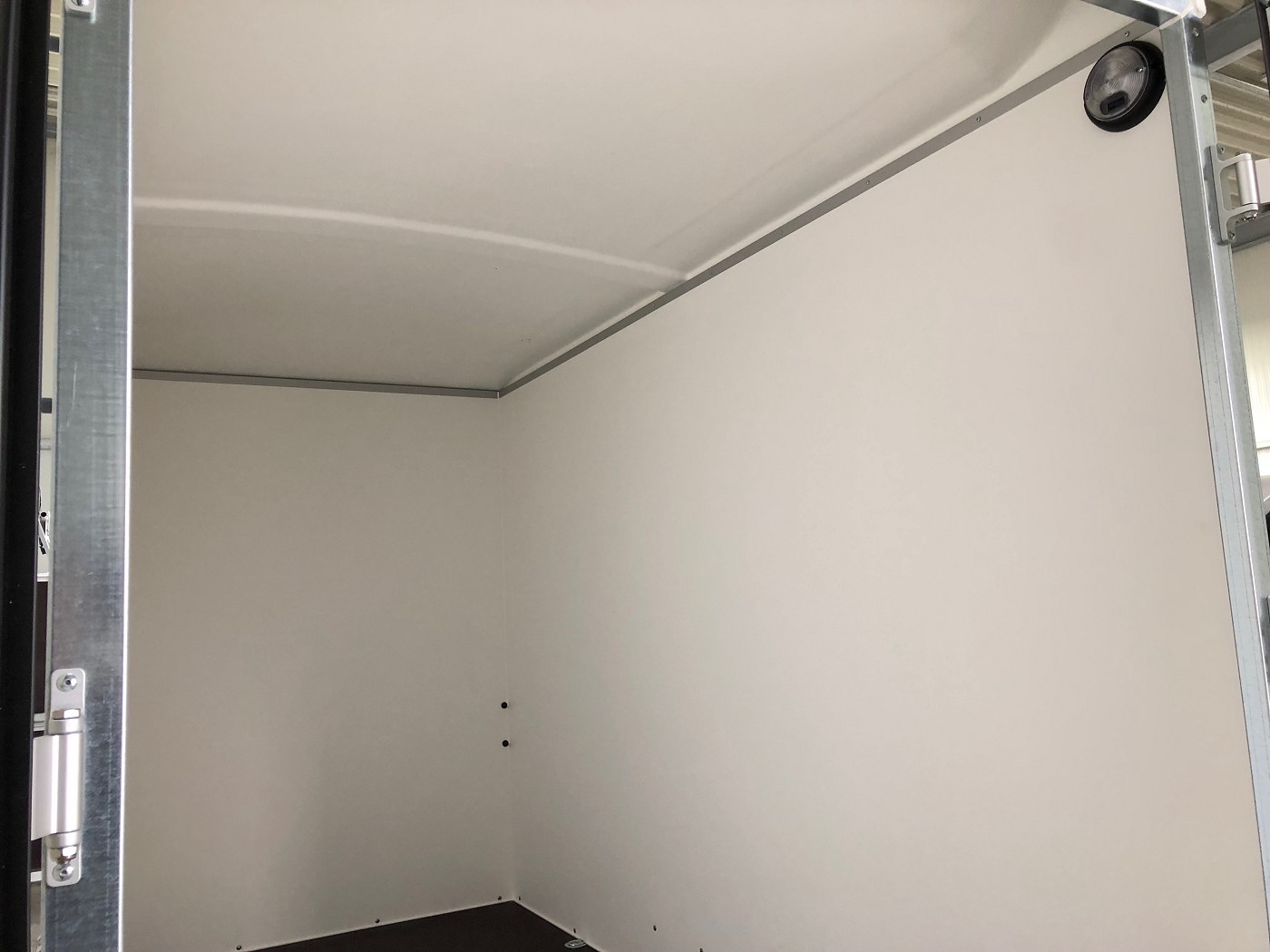 Kofferanhänger mit Doppelflügeltür hinten mit weißem Polyesterdeckel