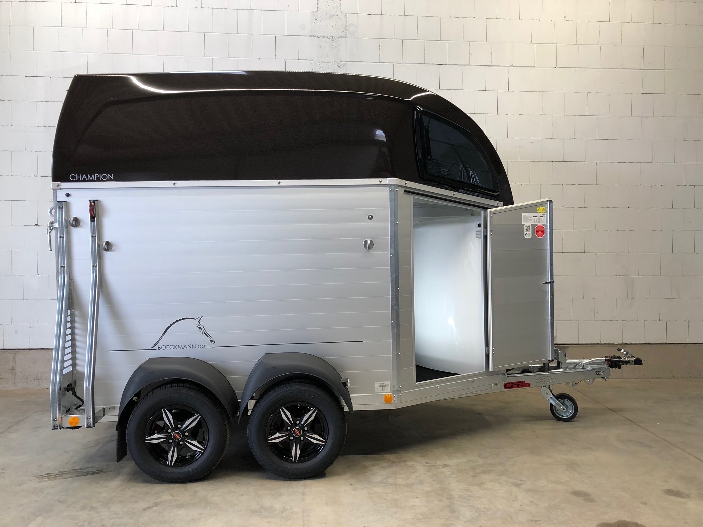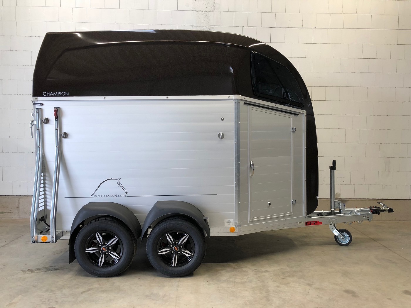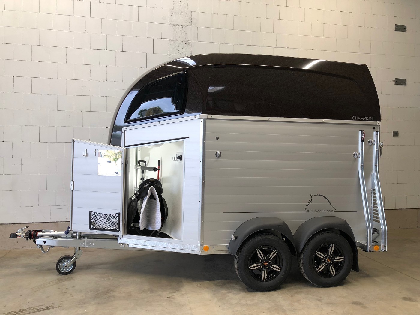Böckmann Champion R – 2 Pferdeanhänger – komplett aus Aluminium mit Polyesterbug und Haube in dunkelbraun metallic