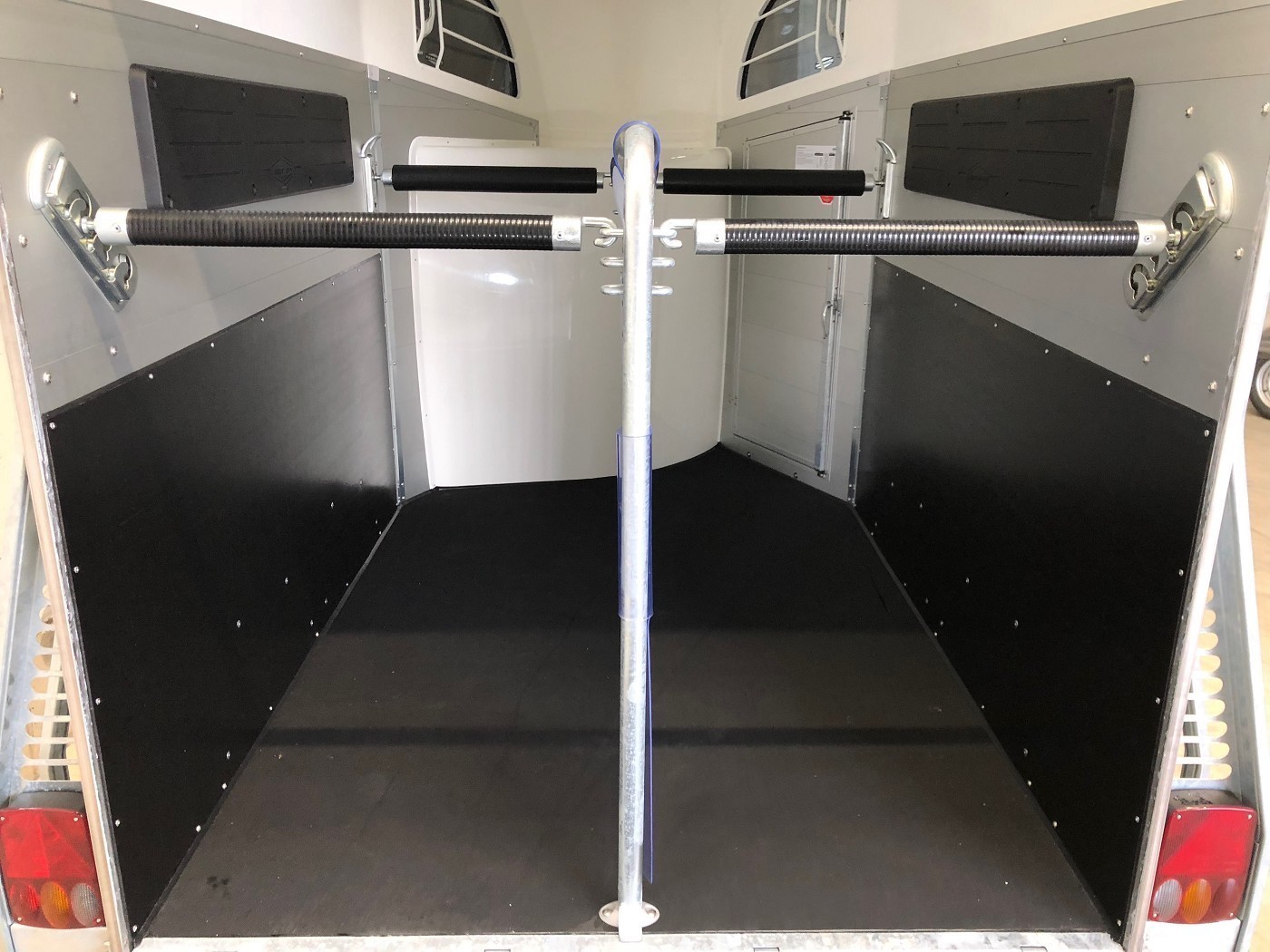 • Gummi auf Beladeklappe mit integrierten Trittleisten und Seitenstops gewährleisten optimalen Halt für Ihre Pferde