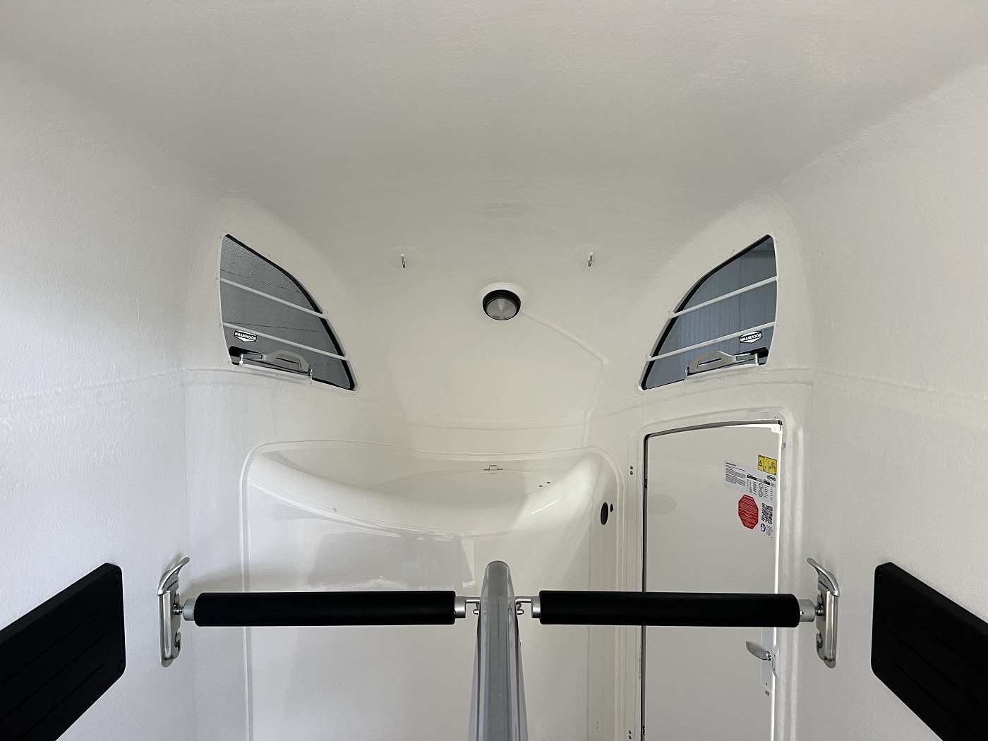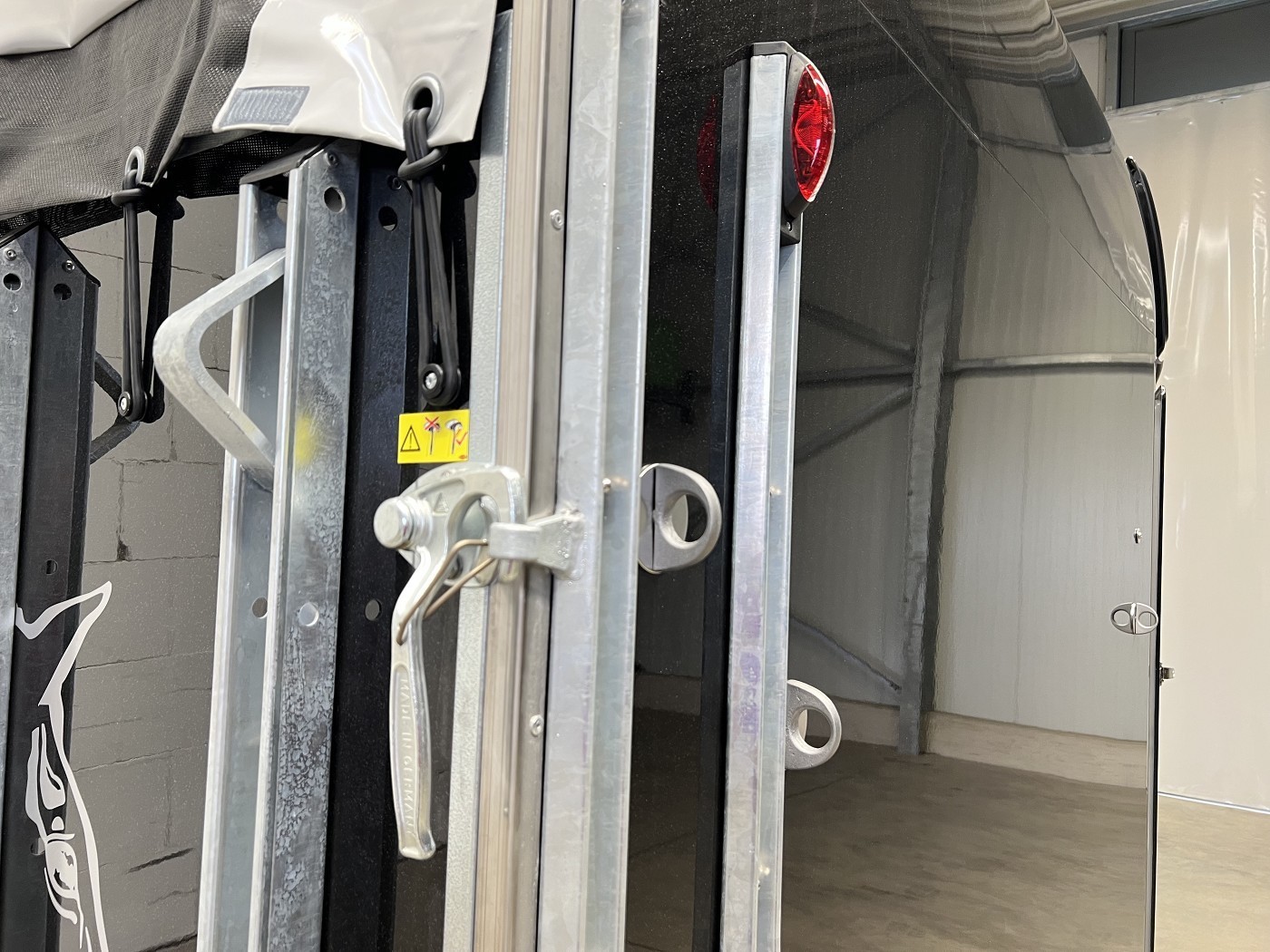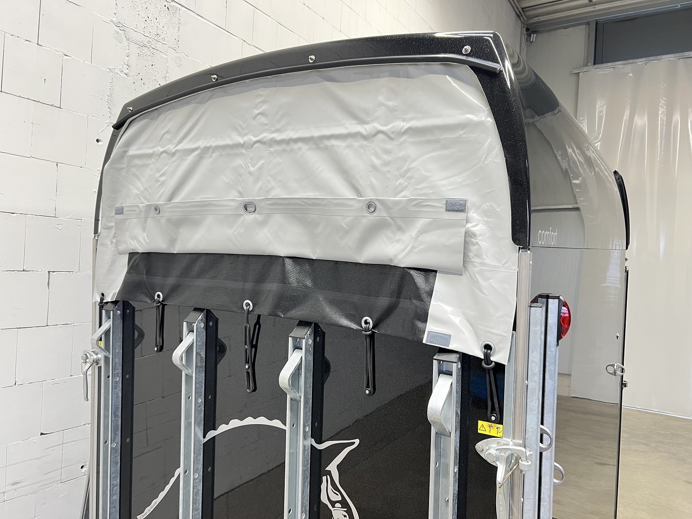 · Kennzeichenhalter mit zwei integrierten Auftritten – ermöglichen einen sicheren Blick in den Pferderaum