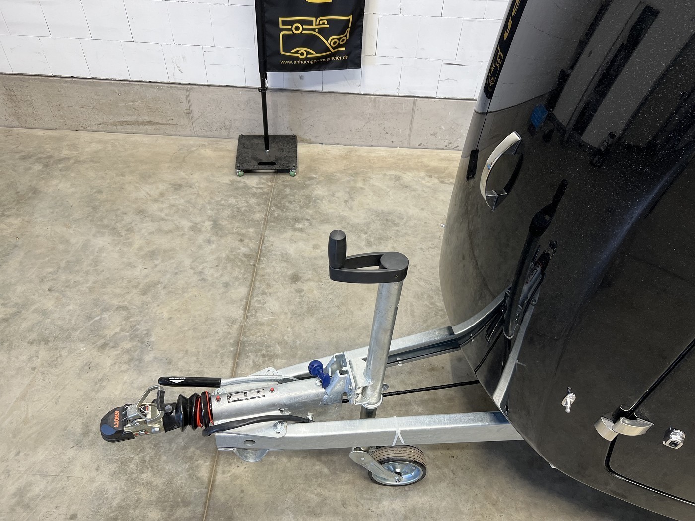 · Praktisches Automatikstützrad und Rangiergriff an der Front des Aufbaus zum einfachen Positionieren des Anhängers