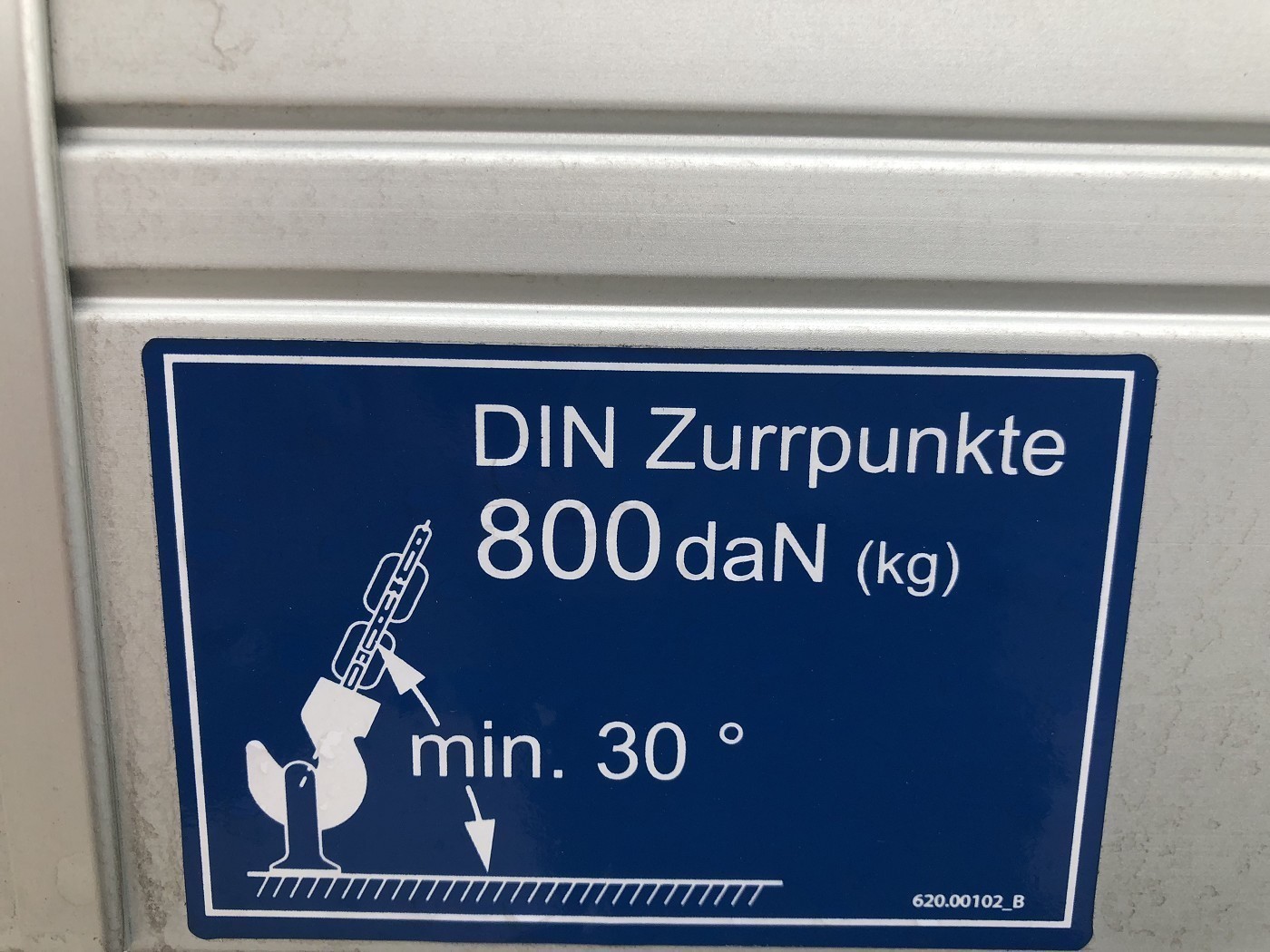 6 bodenbündige Verzurrpunkte im Brückenboden integriert, Zugkraft 800 kg pro Anbindering