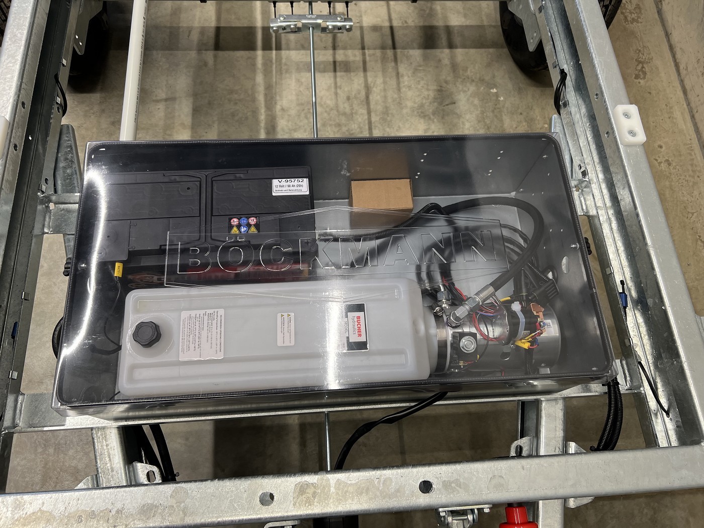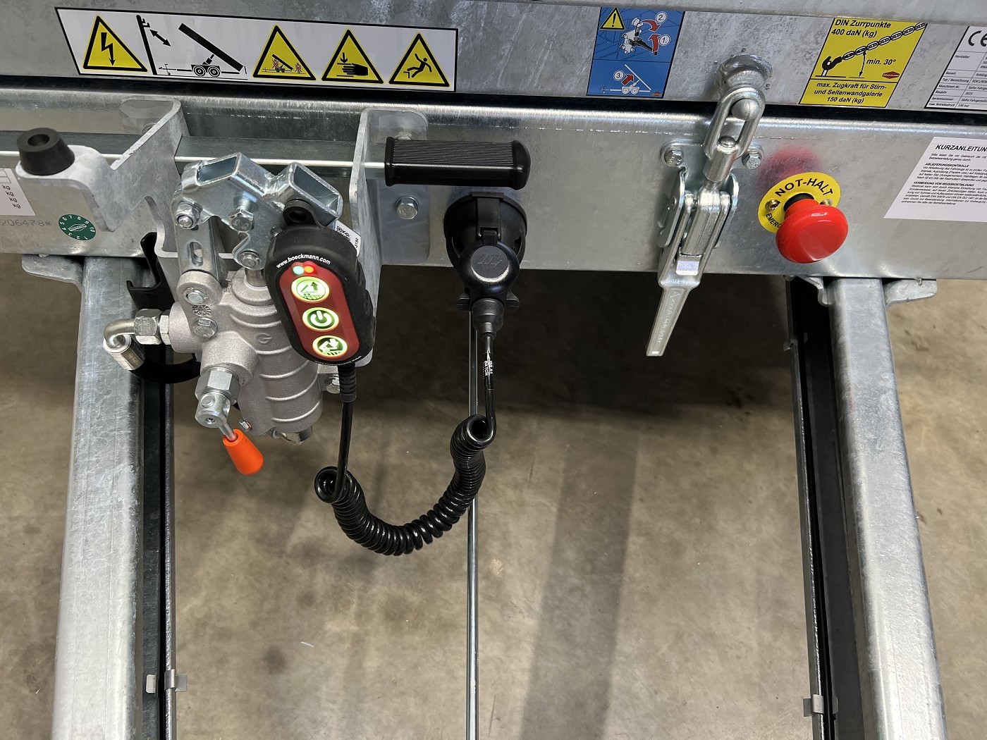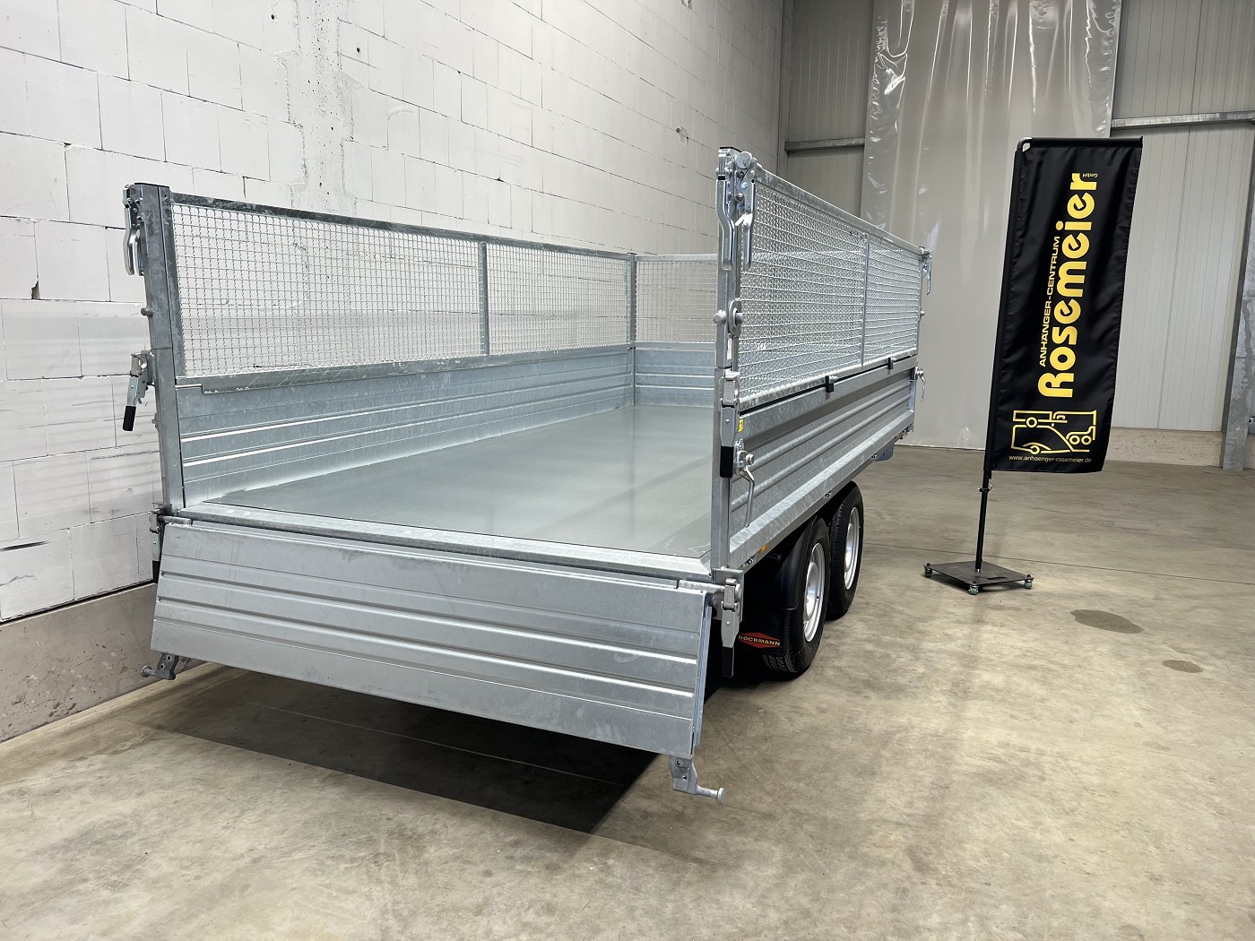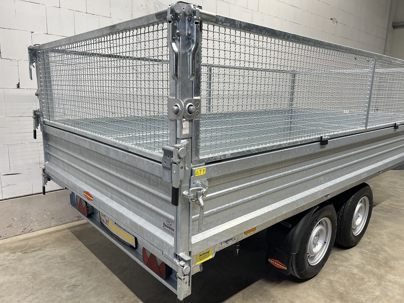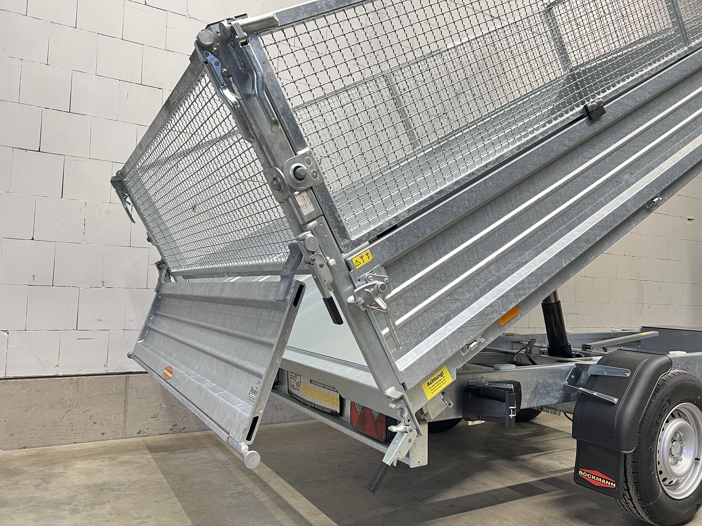 Böckmann Dreiseitenkipper mit E-Pumpe, Gitteraufsatz und Stahlbordwänden in Profi-Ausführung