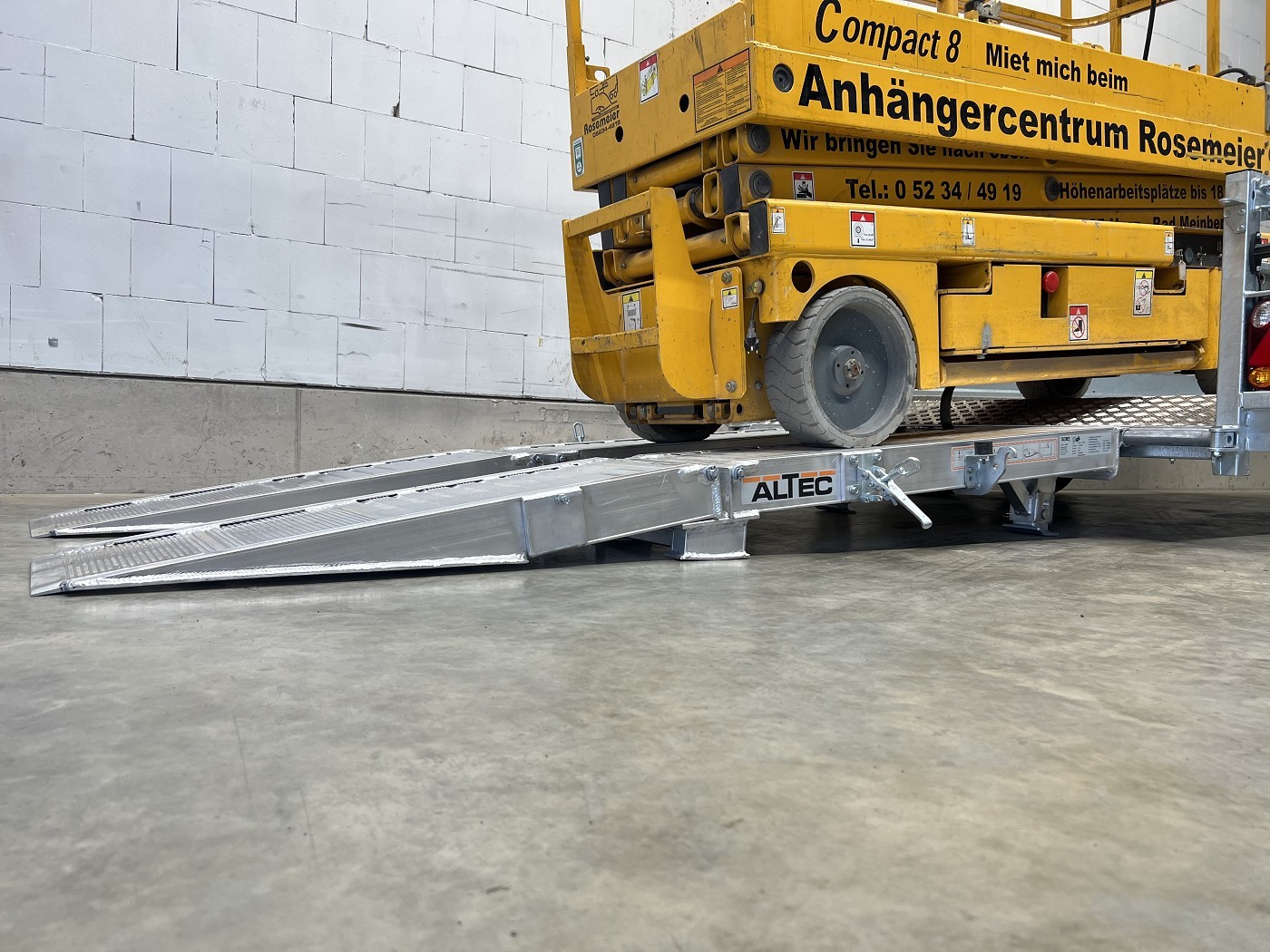 Faltbare Auffahrrampen – schnell einsatzbereit und in diesem Zustand länger als die serienmäßigen Auffahrrampen – für einen extra flachen Auffahrwinkel (z.B. für Scherenhubbühne)