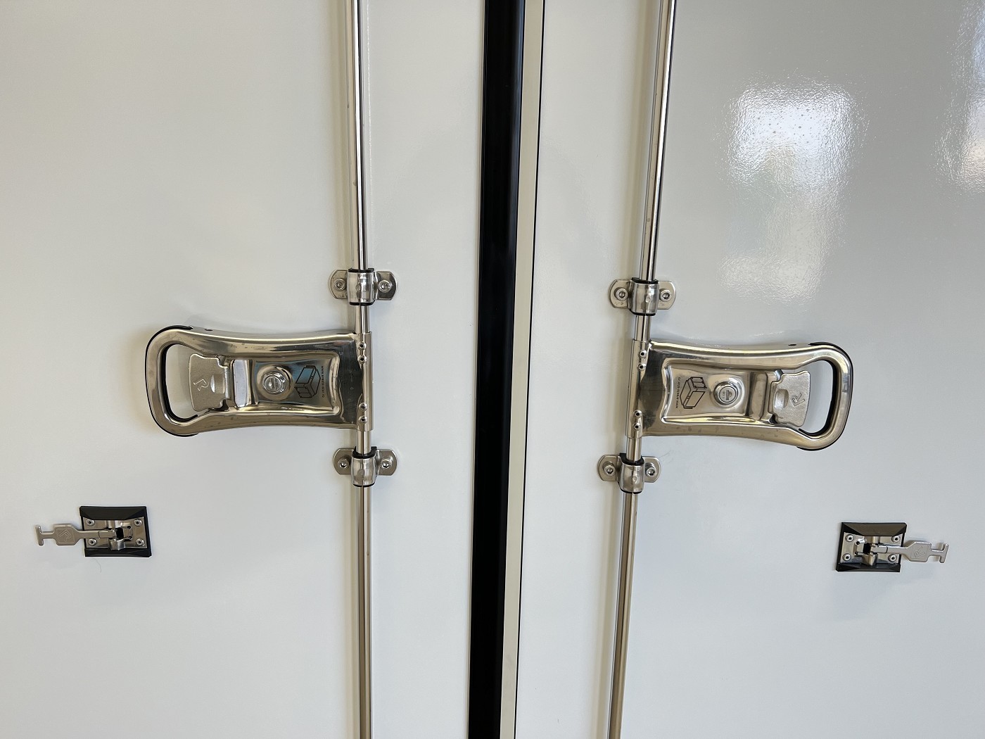 • Doppelflügeltür hinten mit stabilem Drehstangenverschluss aus V2A (abschließbar)