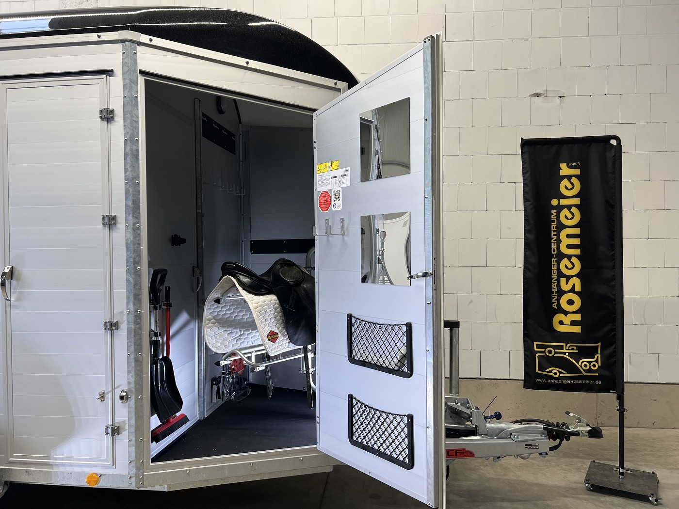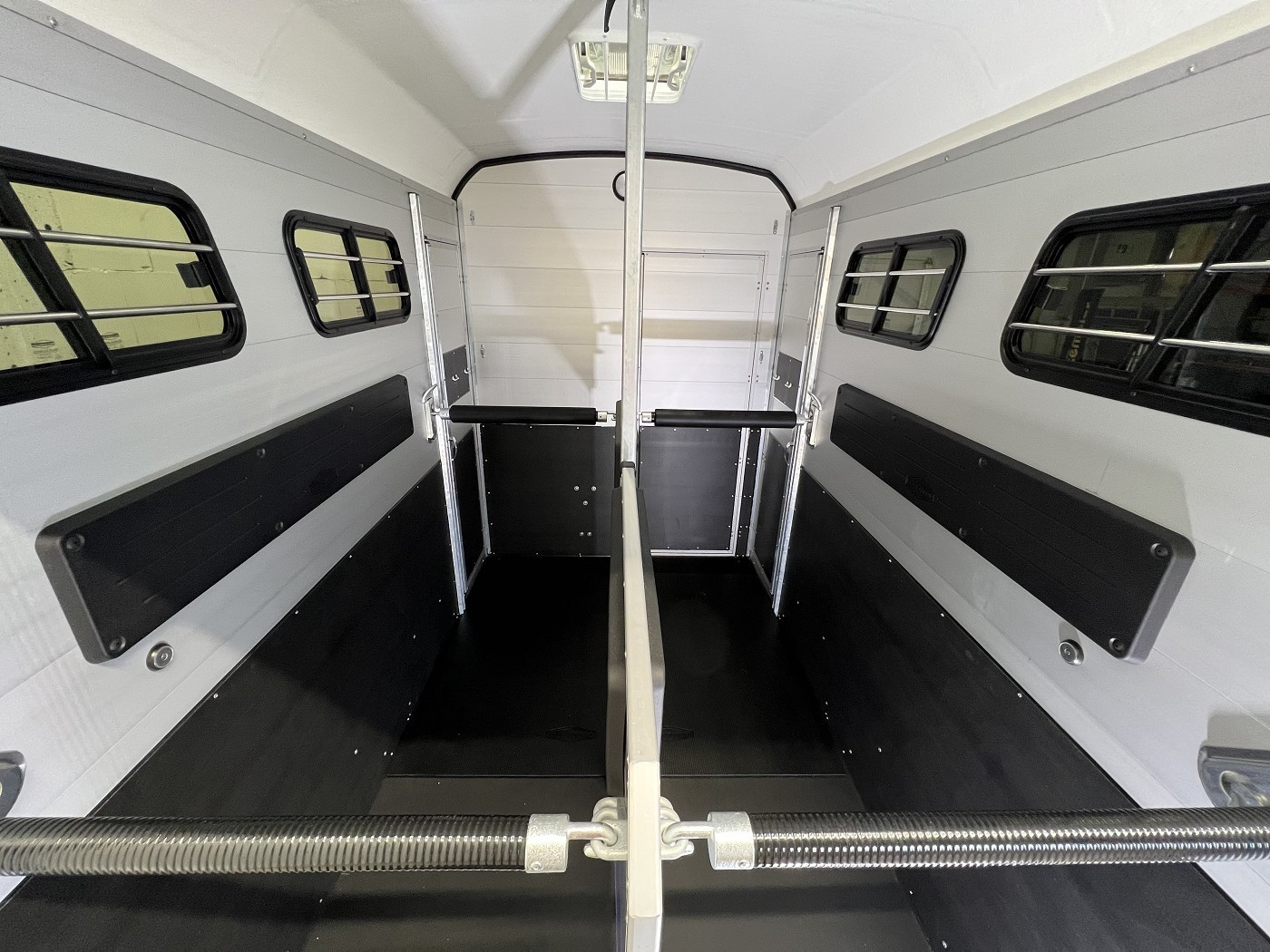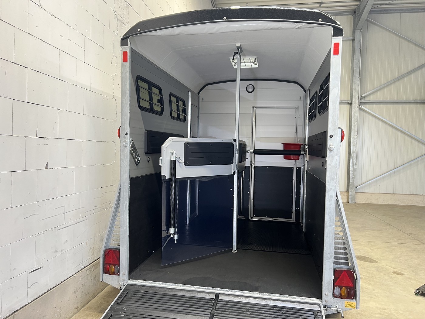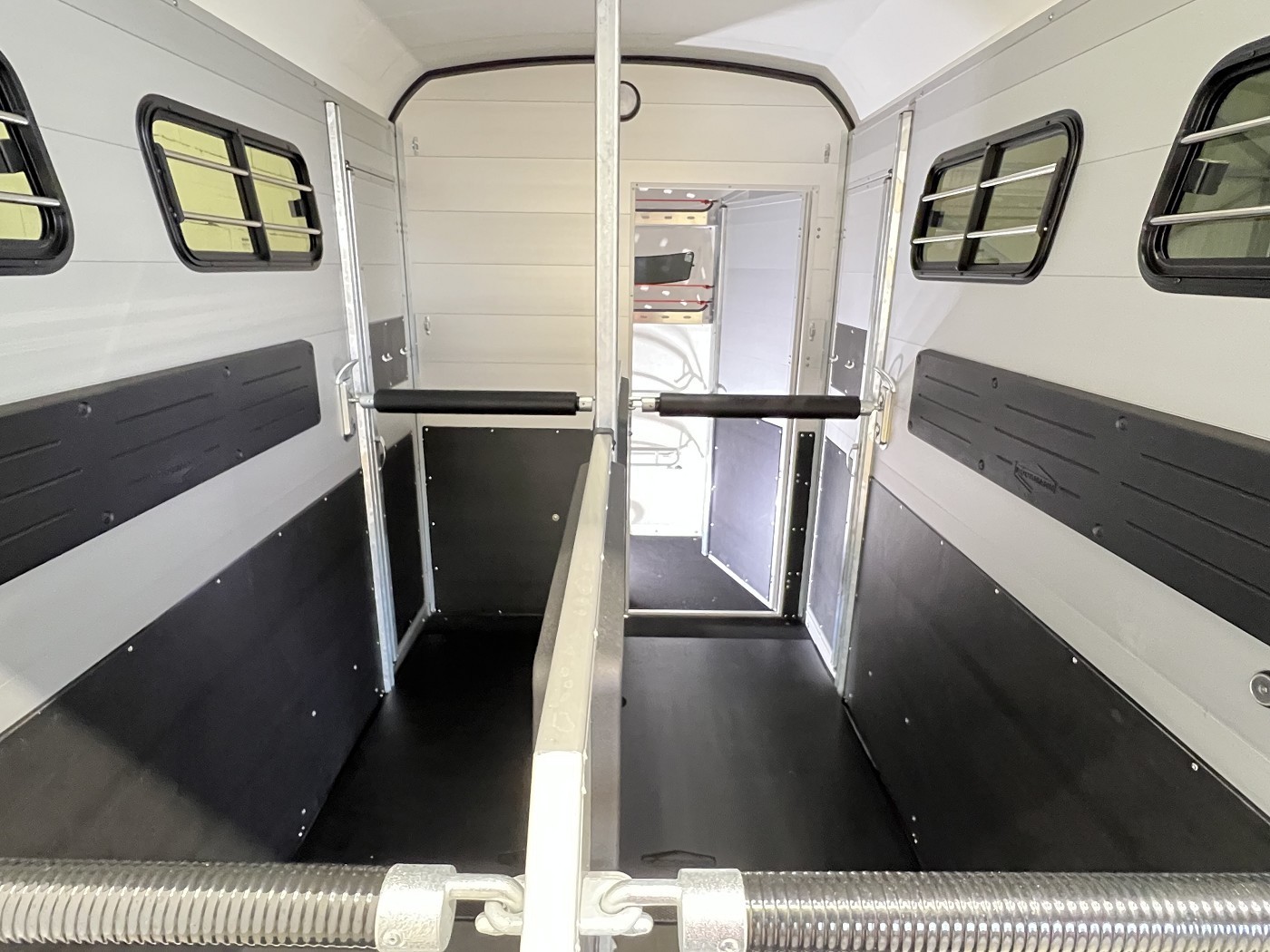 Ein besonderes Highlight der Modelle ist der neue Portax Lichtbogen, der das direkte Blendlicht auf ein Minimum reduziert. Dadurch werden Störfaktoren für Ihre Pferde deutlich verringert und alle Beteiligten gelangen entspannt ans Ziel. Doch auch im Innenraum hat sich einiges im Vergleich zum Vorgängermodell getan. Ein Exzenterspanner und ein Magnetfeststeller sind absolute Neuheiten, die im Pferderaum das Handling vereinfachen. So ermöglicht der Exzenterspanner den einfachen Ausbau der Mittelpfosten-Trennwand und ermöglicht so den komfortablen Transport von Stute mit Fohlen. Ein Magnetfeststeller ermöglicht das Feststellen der Trennwand-Flügel auf beiden Seiten und gewährleistet so viel Platz und Sicherheit beim Verladen.