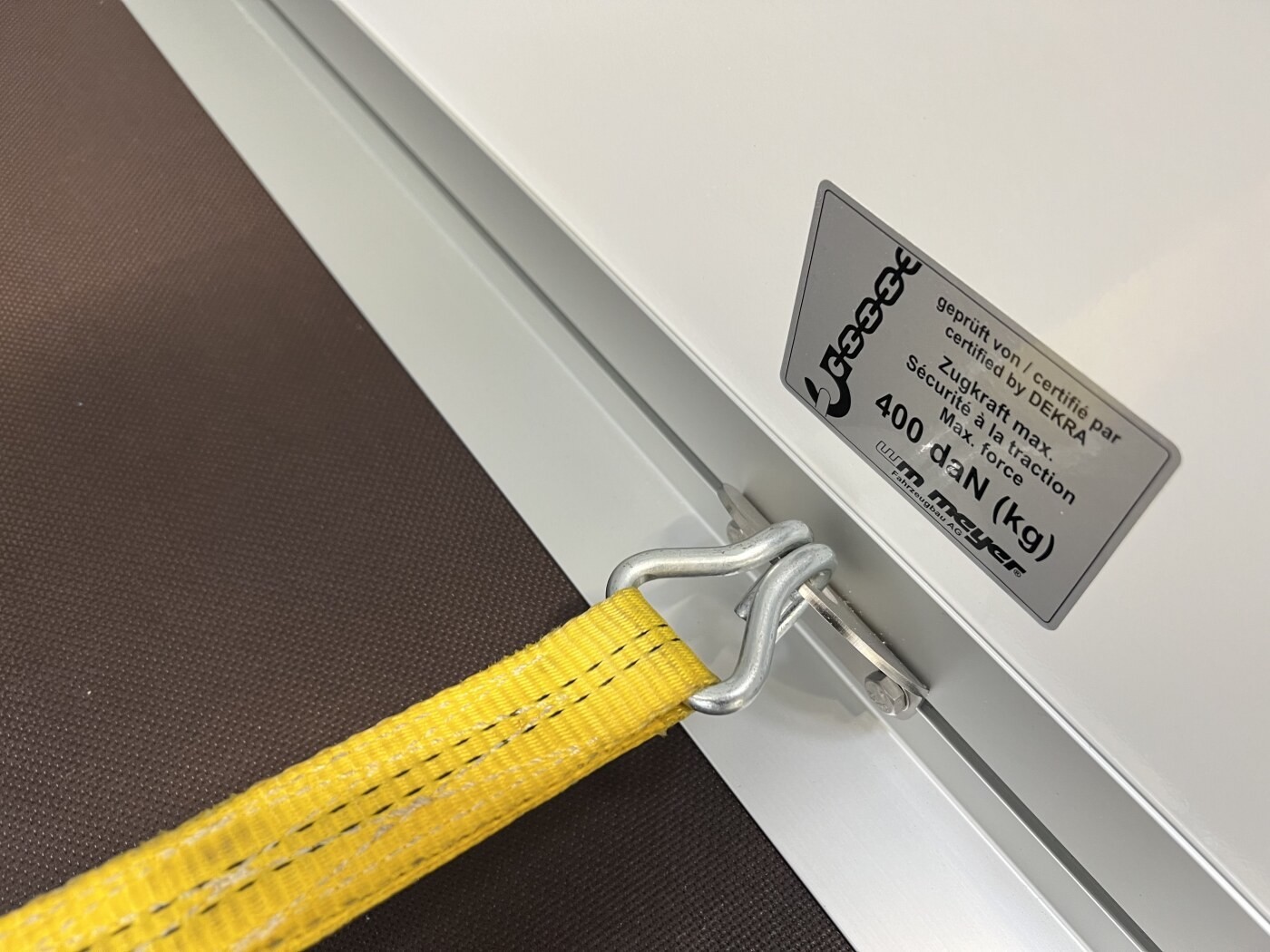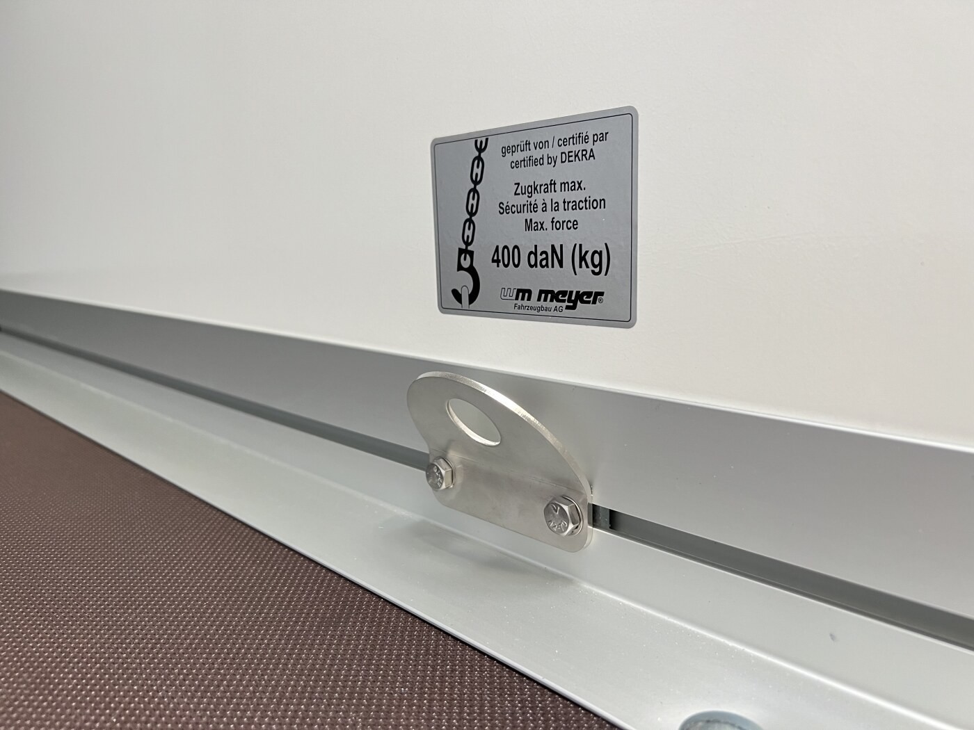 • Integrierte Zurrschiene mit 4 verstellbaren Zurrbügeln (je 2x links/rechts) und 3 Trägerplatten zusätzlich