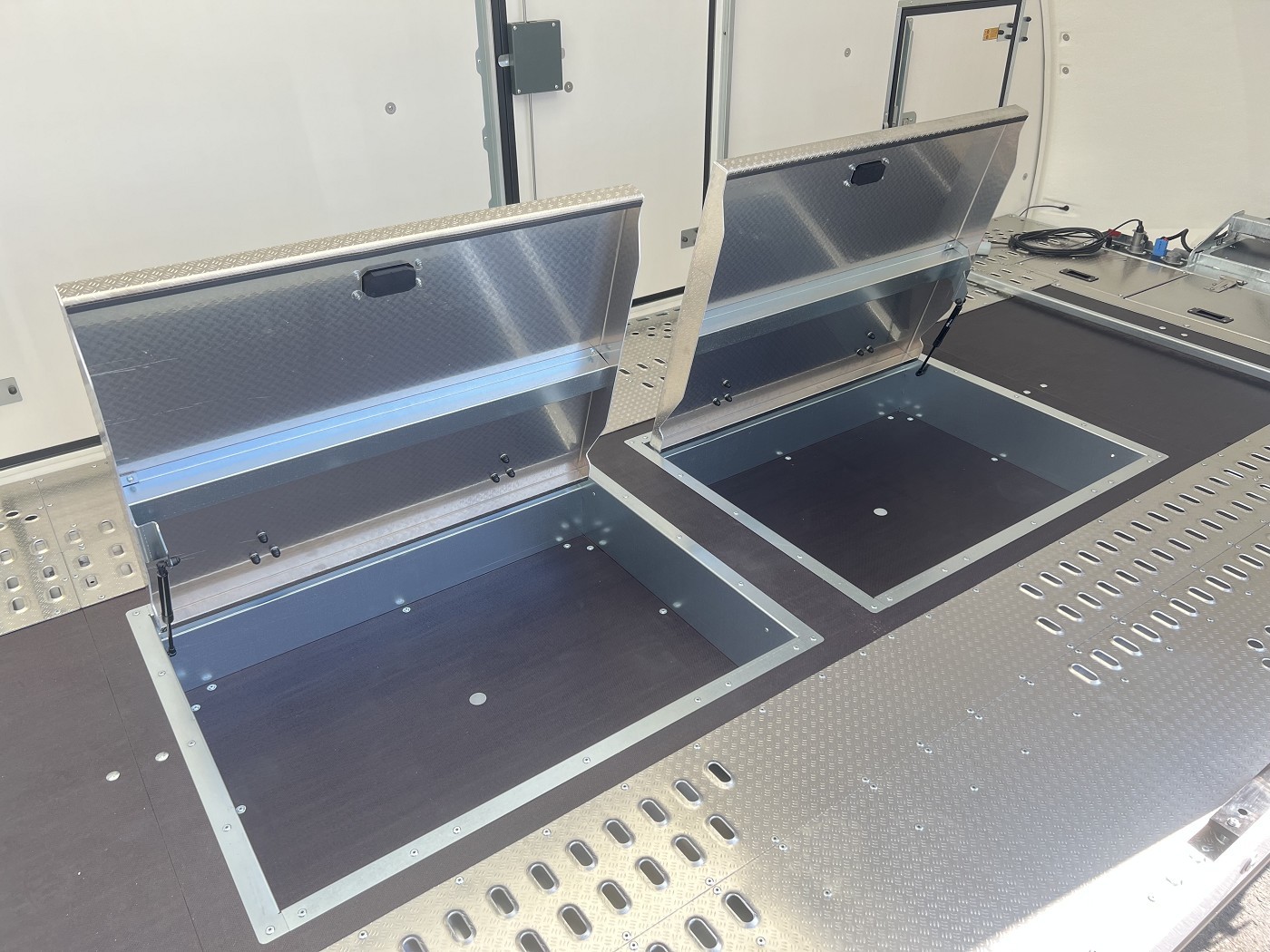 • Paket Stauraum (Frontbodenstaubox, Alu-Deckel für Boxenmitte + Front, Seitenregale)