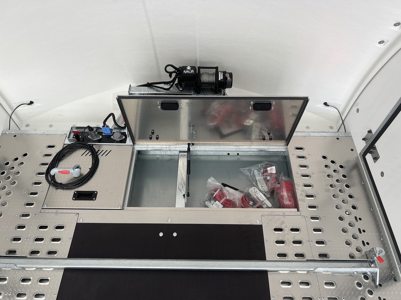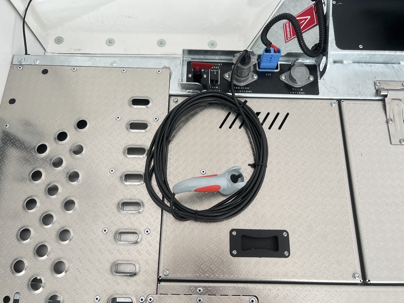 • Kabelfernbedienung für elektrische Seilwinde und Kippfunktion mit Batterie an Bord