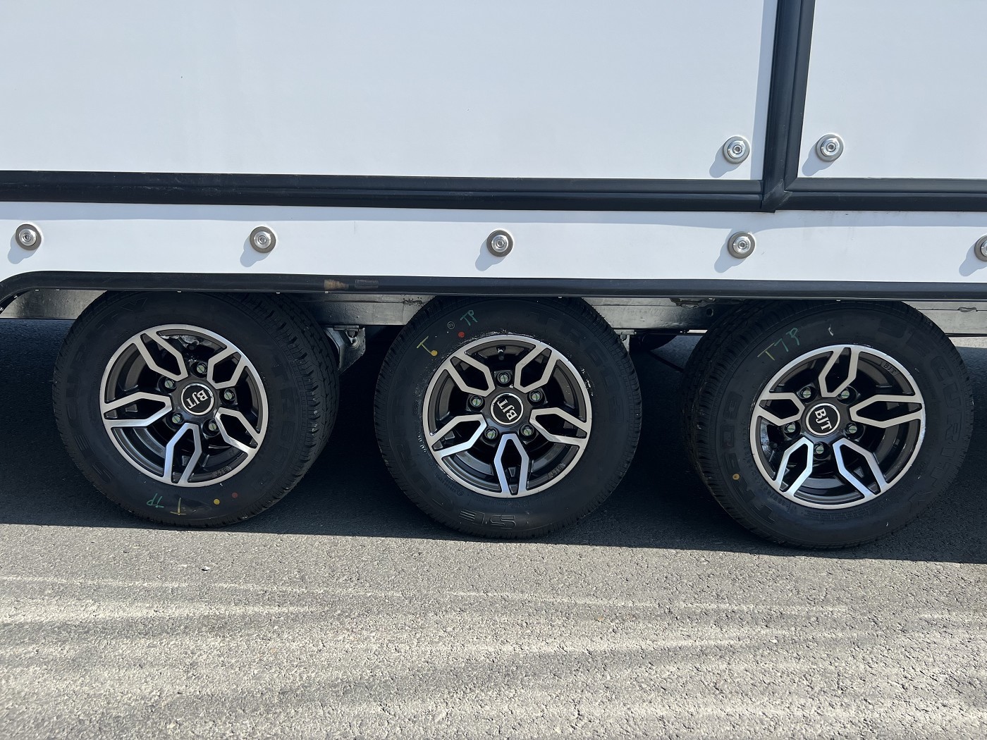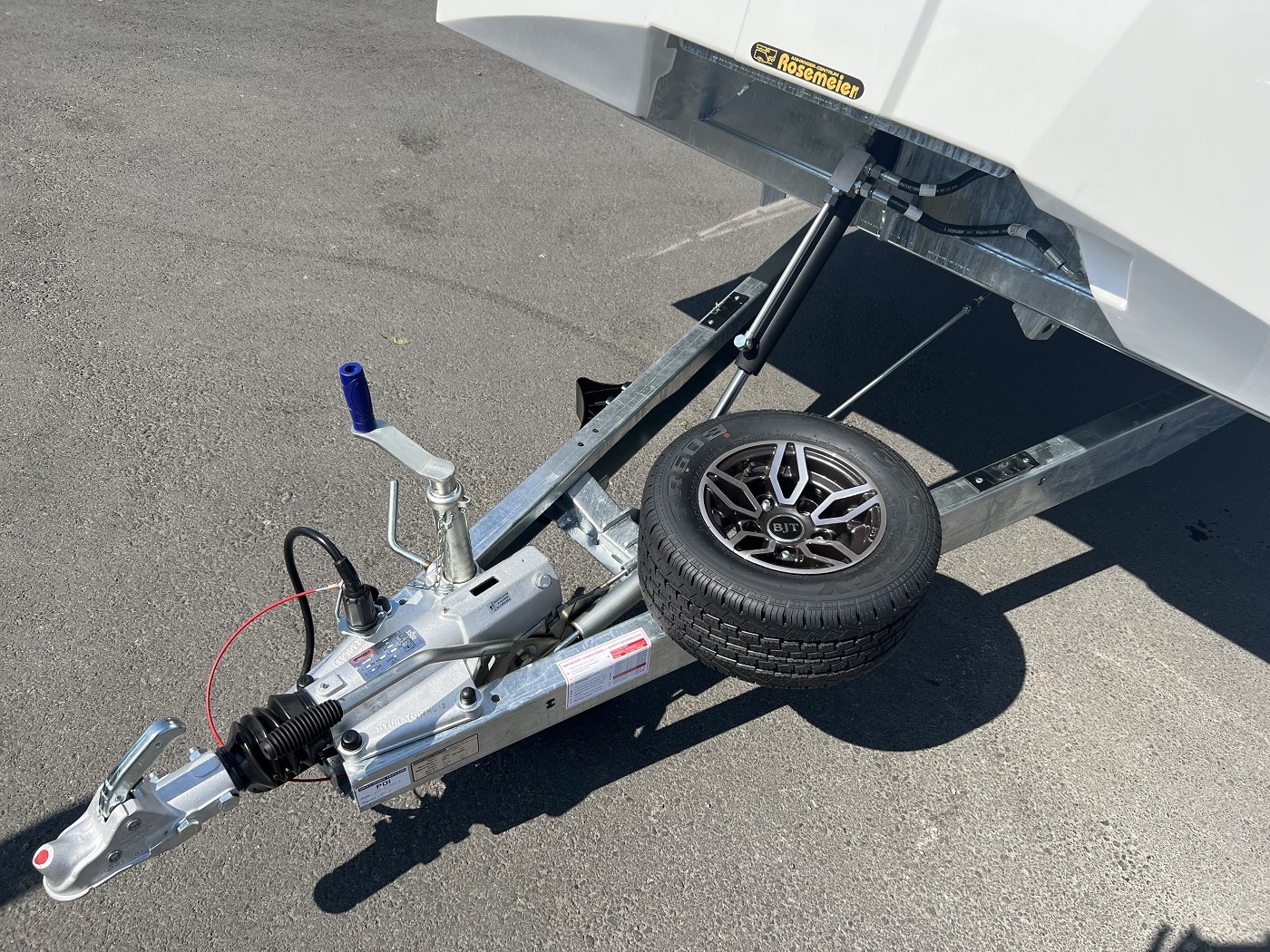 • Reserverad Alufelge auf der Deichsel montiert