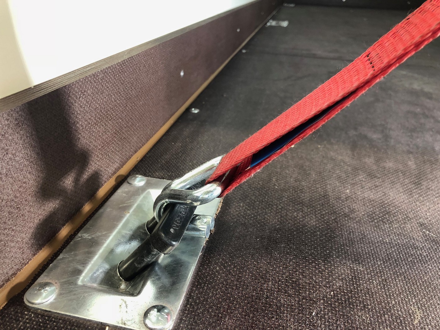 • Eine Reihe Verzurrschiene beidseitig für zusätzliche Ösen oder Sperrstangen montiert auf 900 mm (Mitte Schiene)
