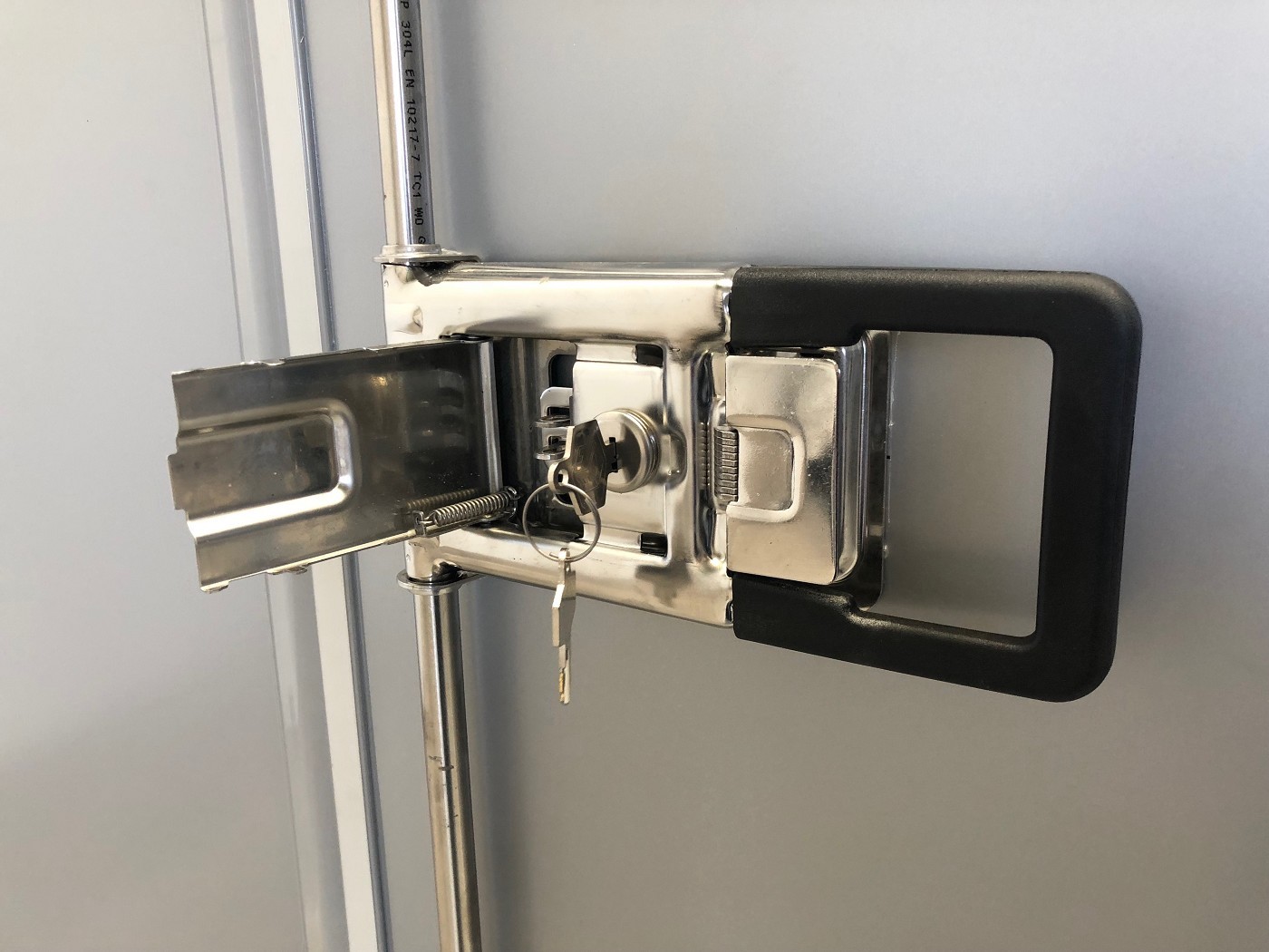 • Doppelflügeltür hinten mit stabilem Drehstangenverschluss aus V2A (abschließbar)