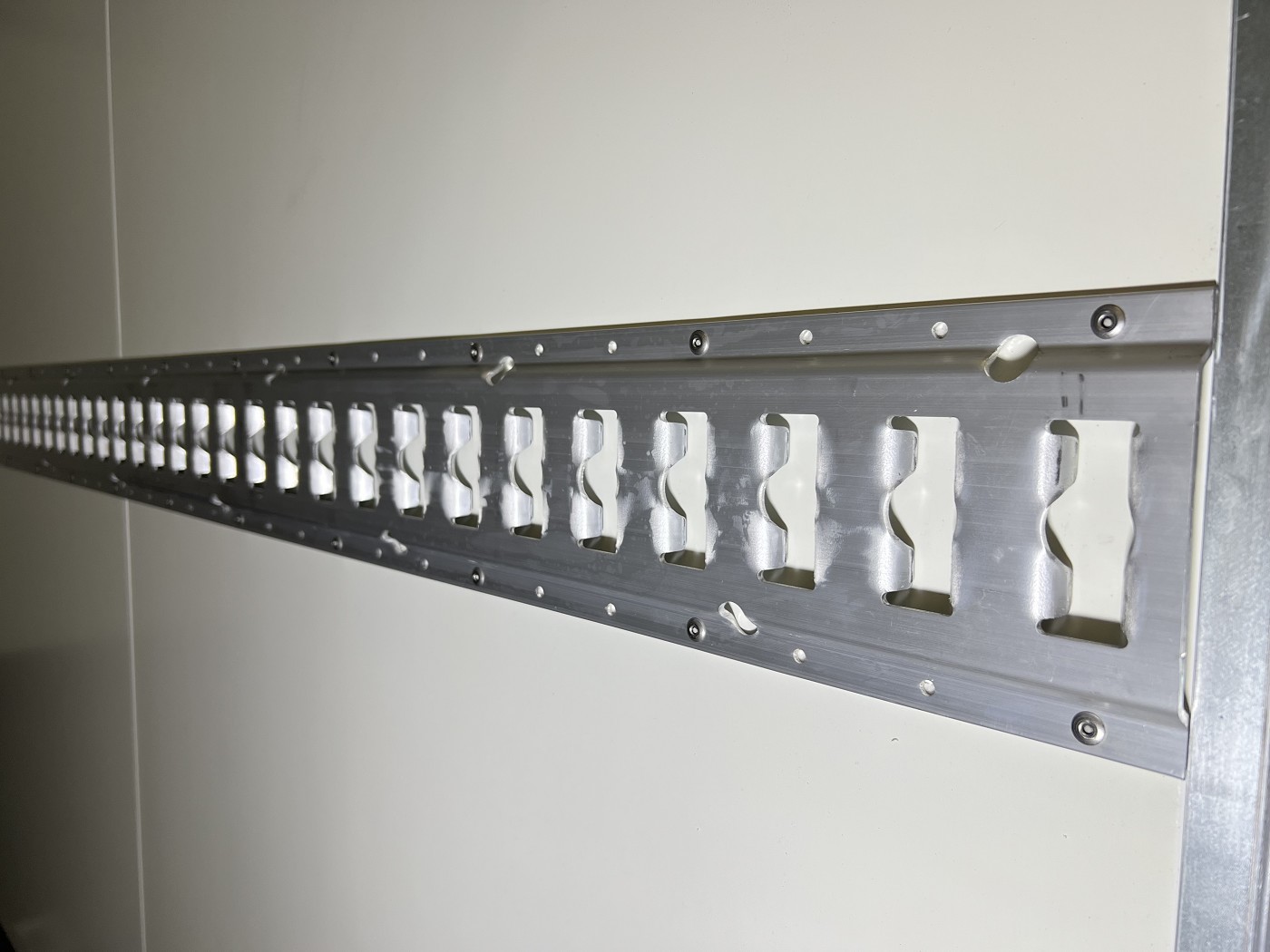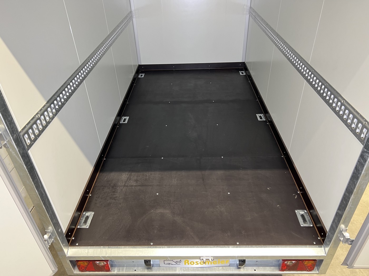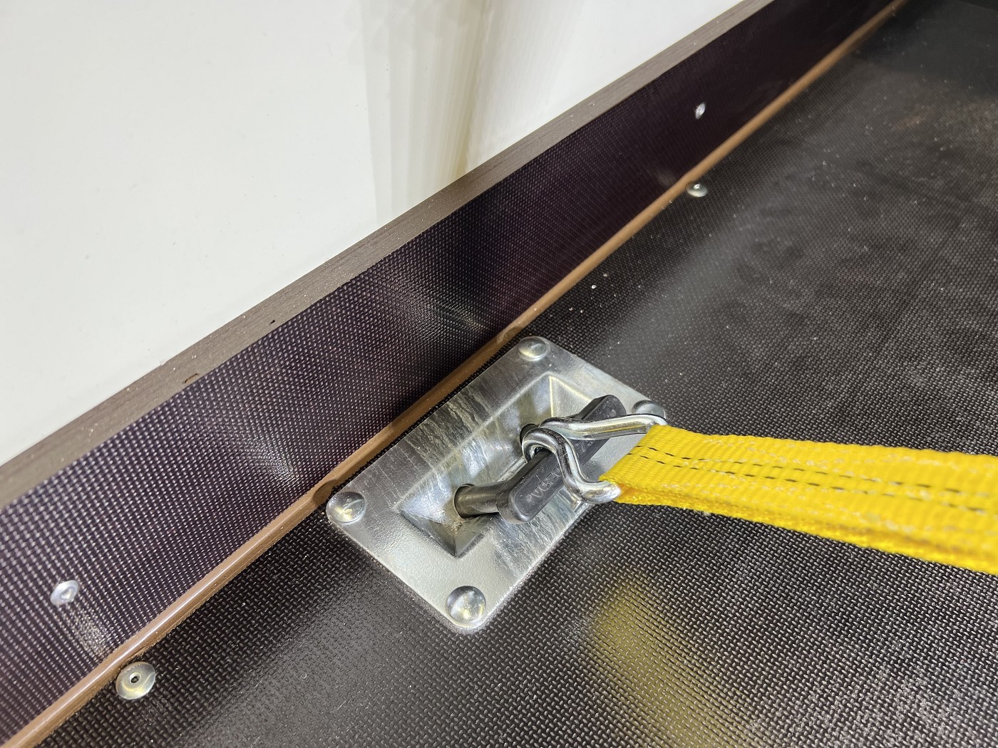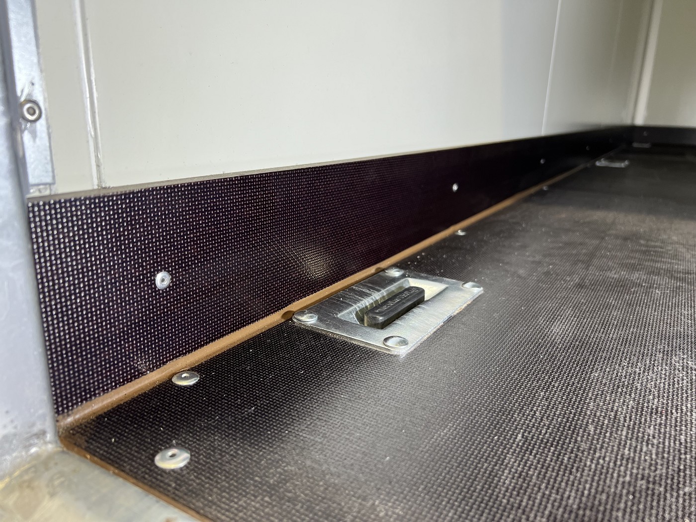 • Eine Reihe Verzurrschiene beidseitig für zusätzliche Ösen oder Sperrstangen montiert auf 900 mm (Mitte Schiene)