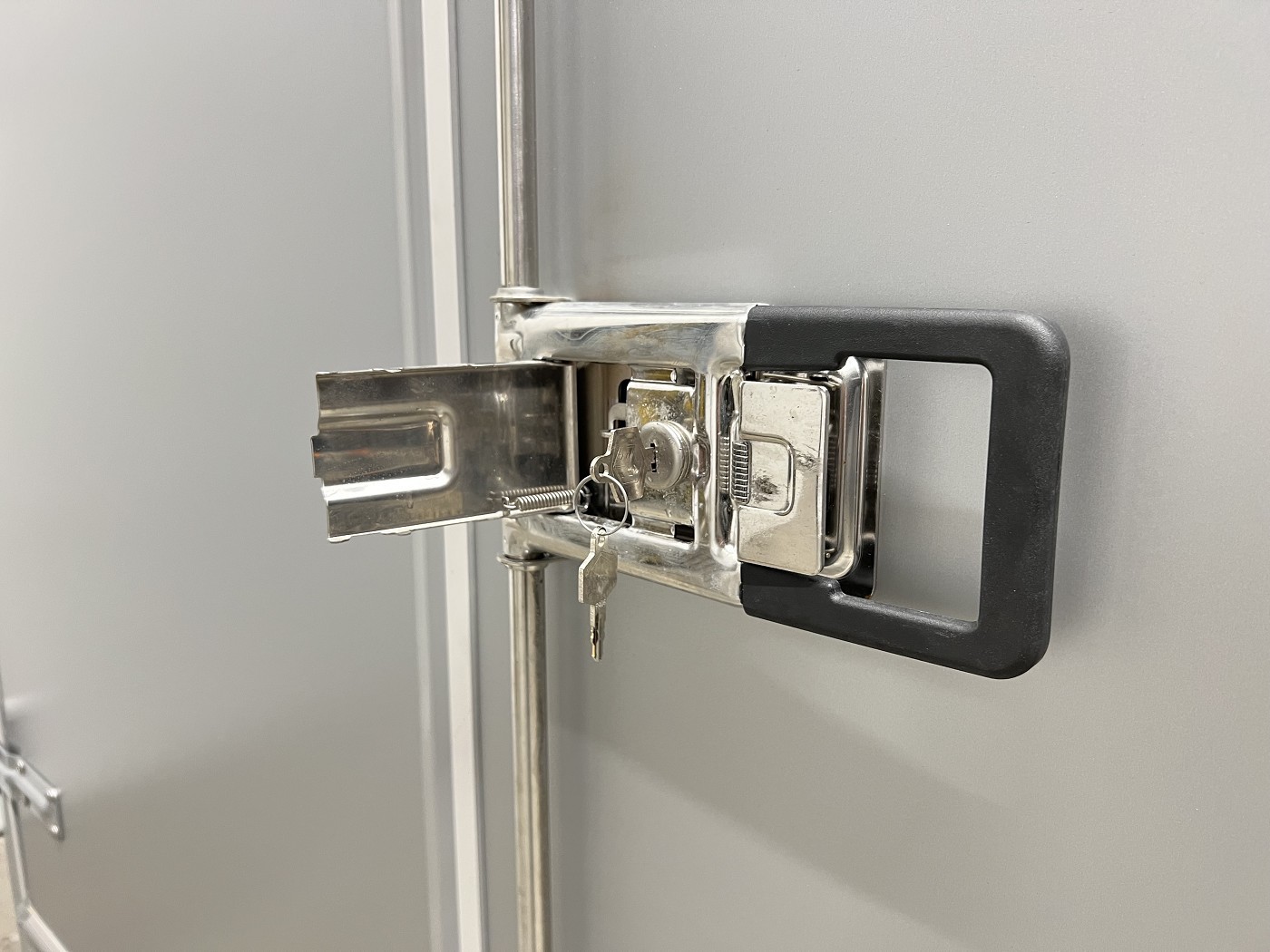 • Doppelflügeltür hinten mit stabilem Drehstangenverschluss aus V2A (abschließbar)