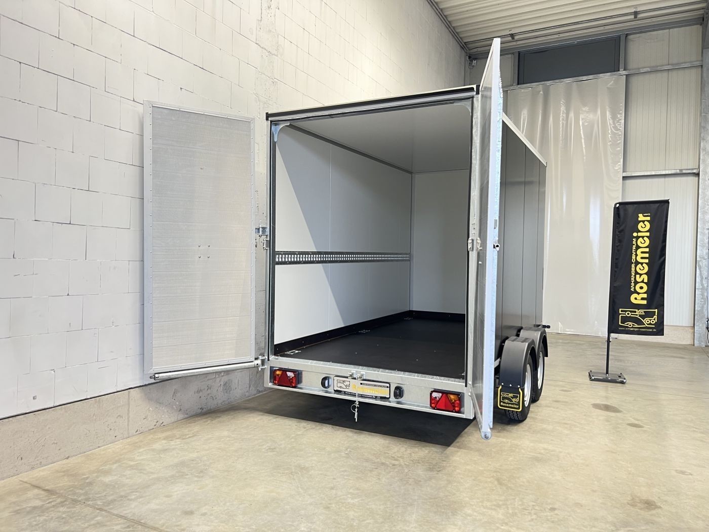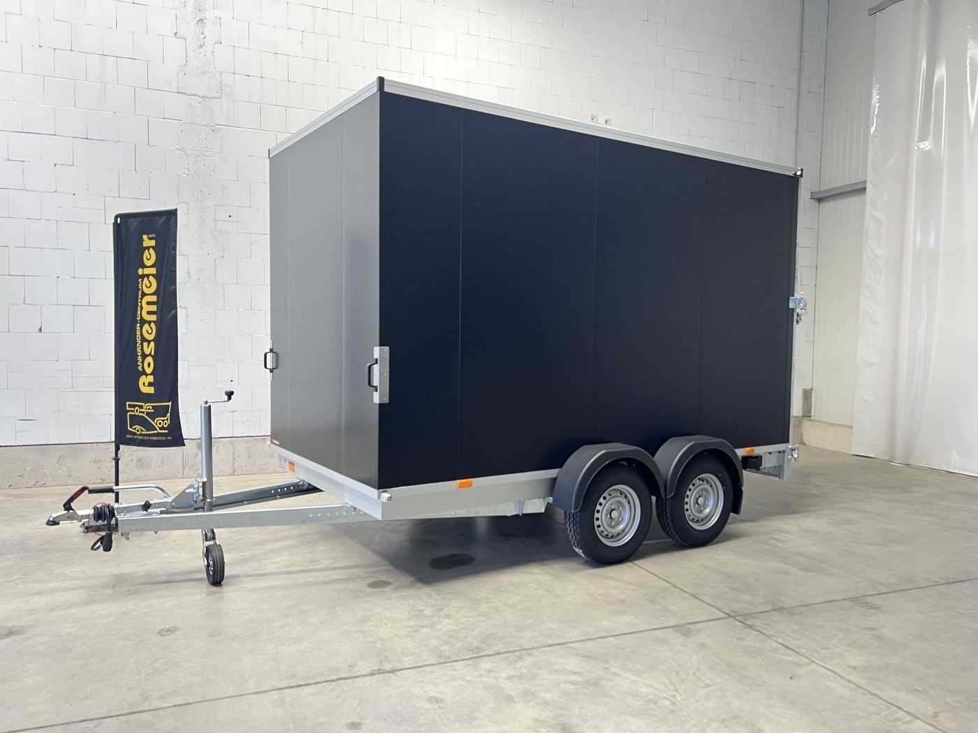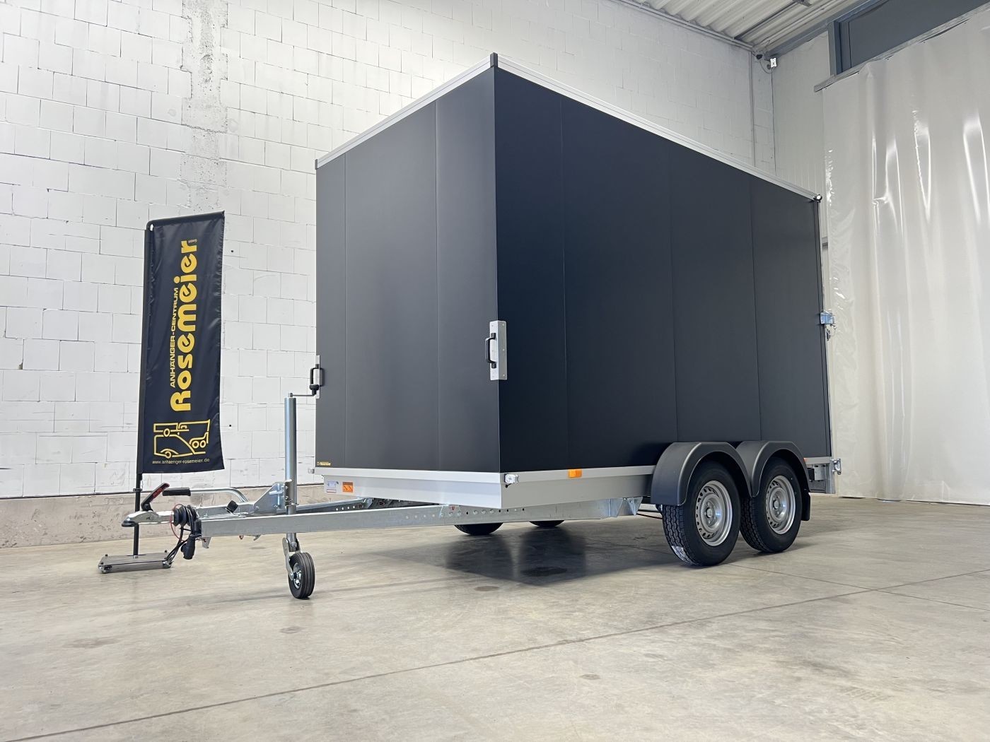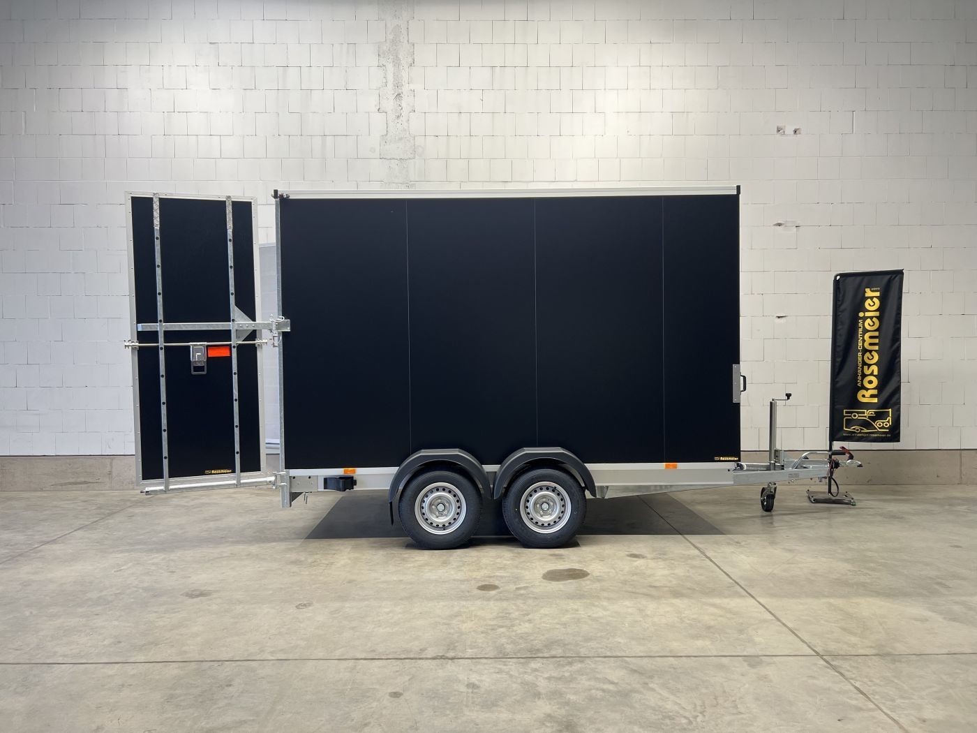 Kofferanhänger in schwarz mit Kombi-Auffahrrampe und Sonderhöhe