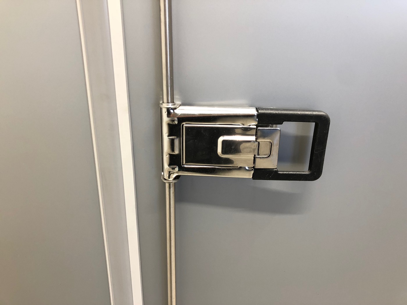 • Doppelflügeltür hinten mit stabilem Drehstangenverschluss aus V2A (abschließbar)