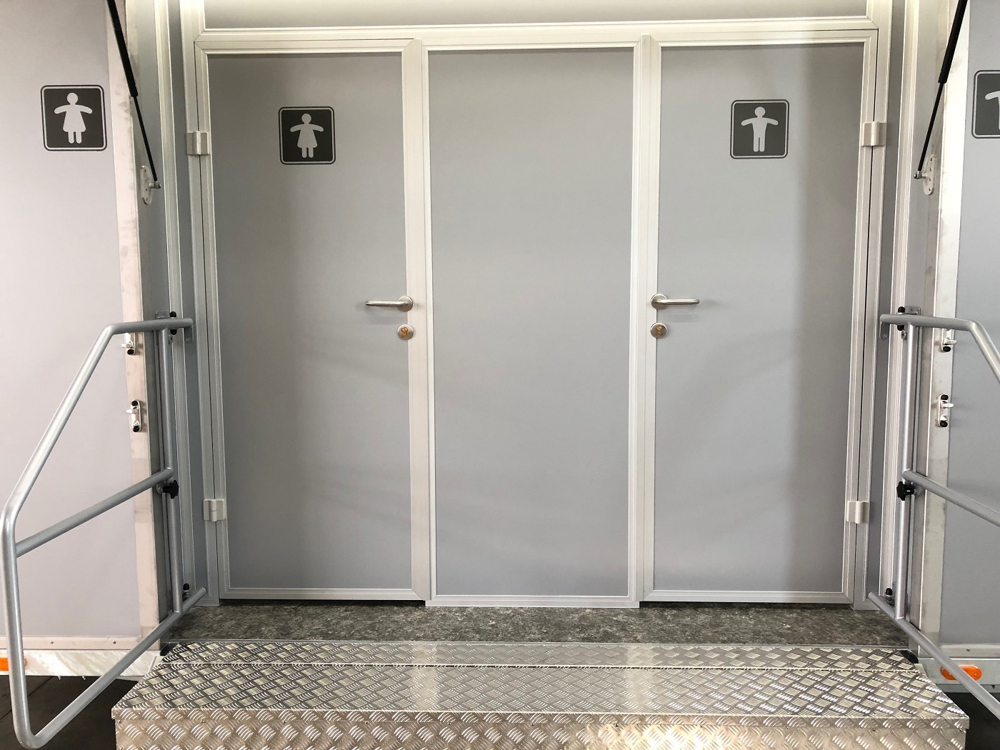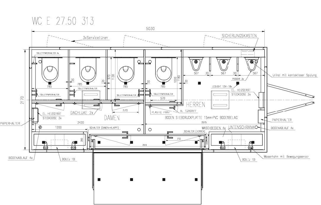 Toilettenanhänger Silver Edition mit 3 x Damen WC, 1 x Herren WC und 3 x Urinal