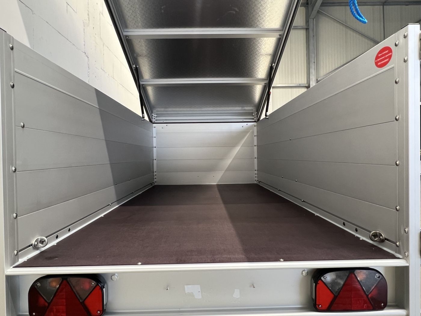 PKW-Anhänger mit 2 Bordwanderhöhungen, Deckel und Tür hinten