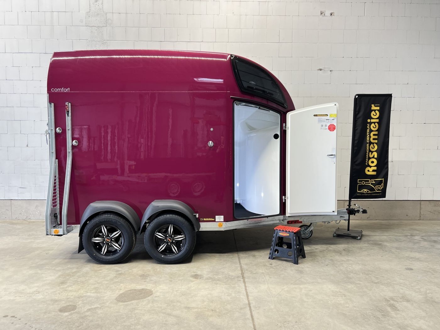 · Kennzeichenhalter mit zwei integrierten Auftritten – ermöglichen einen sicheren Blick in den Pferderaum