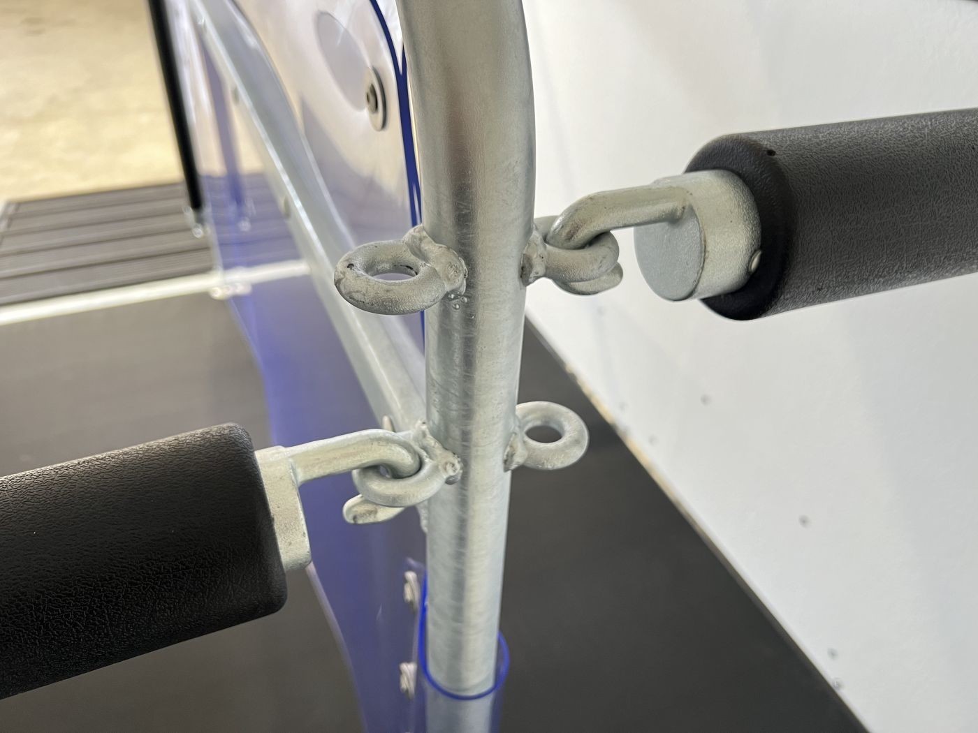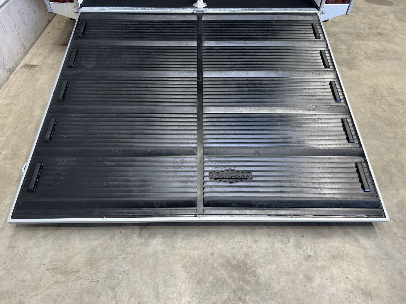 · Gummi auf der Beladeklappe mit integrierten Trittleisten und Seitenstopps gewährleisten optimalen Halt und kein seitliches Abrutschen Ihrer Pferde