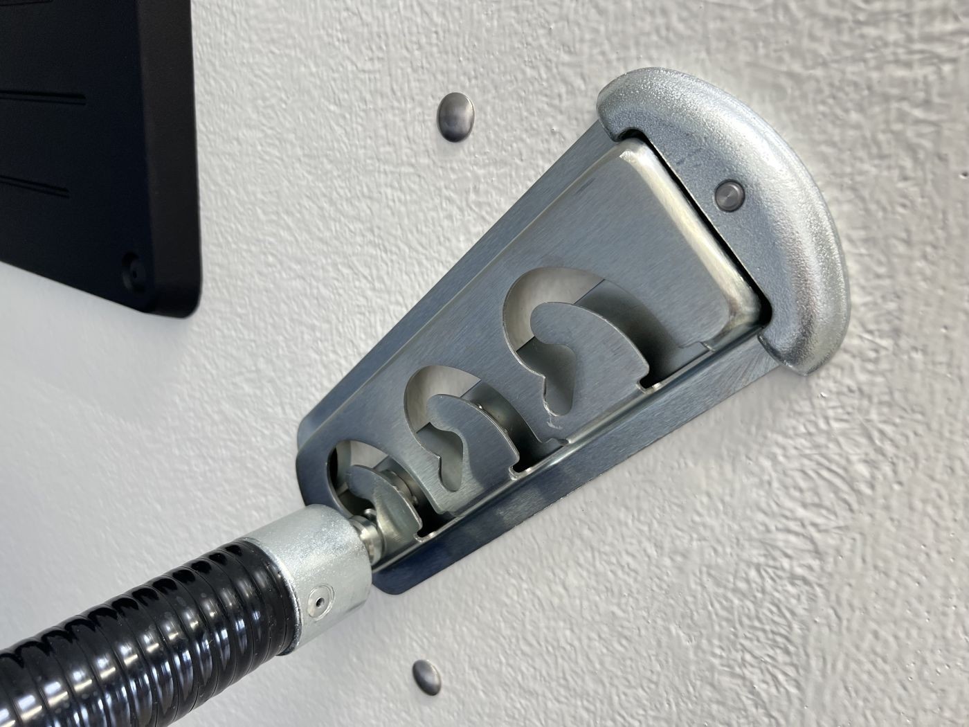 · MSS Sicherheitsboxenstangensystem – Schnelle Sicherheit im Notfall durch das Öffnen der Boxenstangen von außen mit dem beigefügten Radschlüssel. So verringert sich die Verletzungsgefahr von Mensch und Pferd extrem.