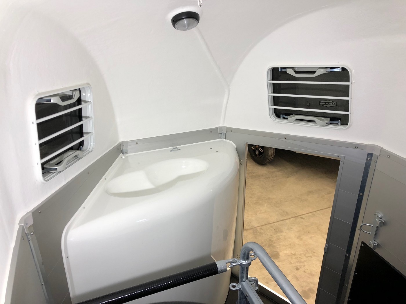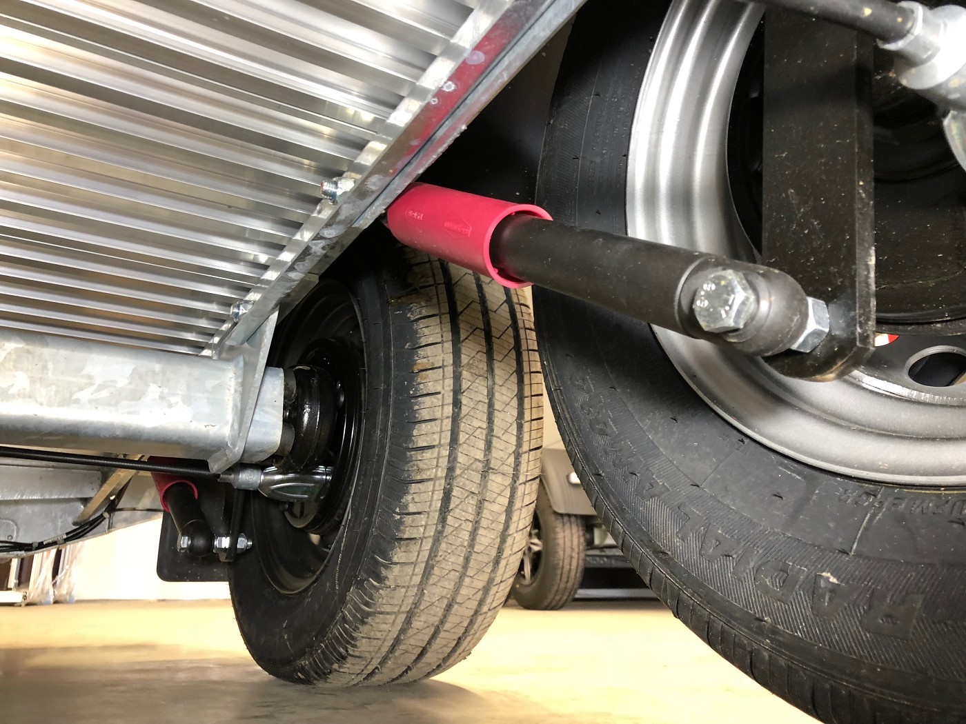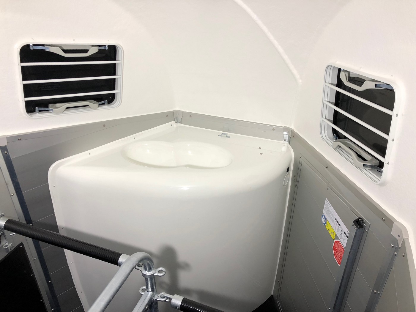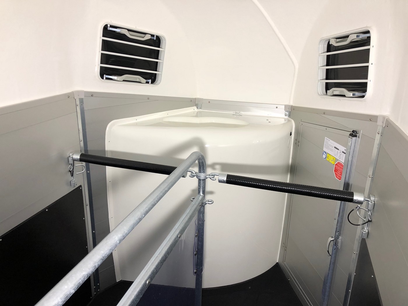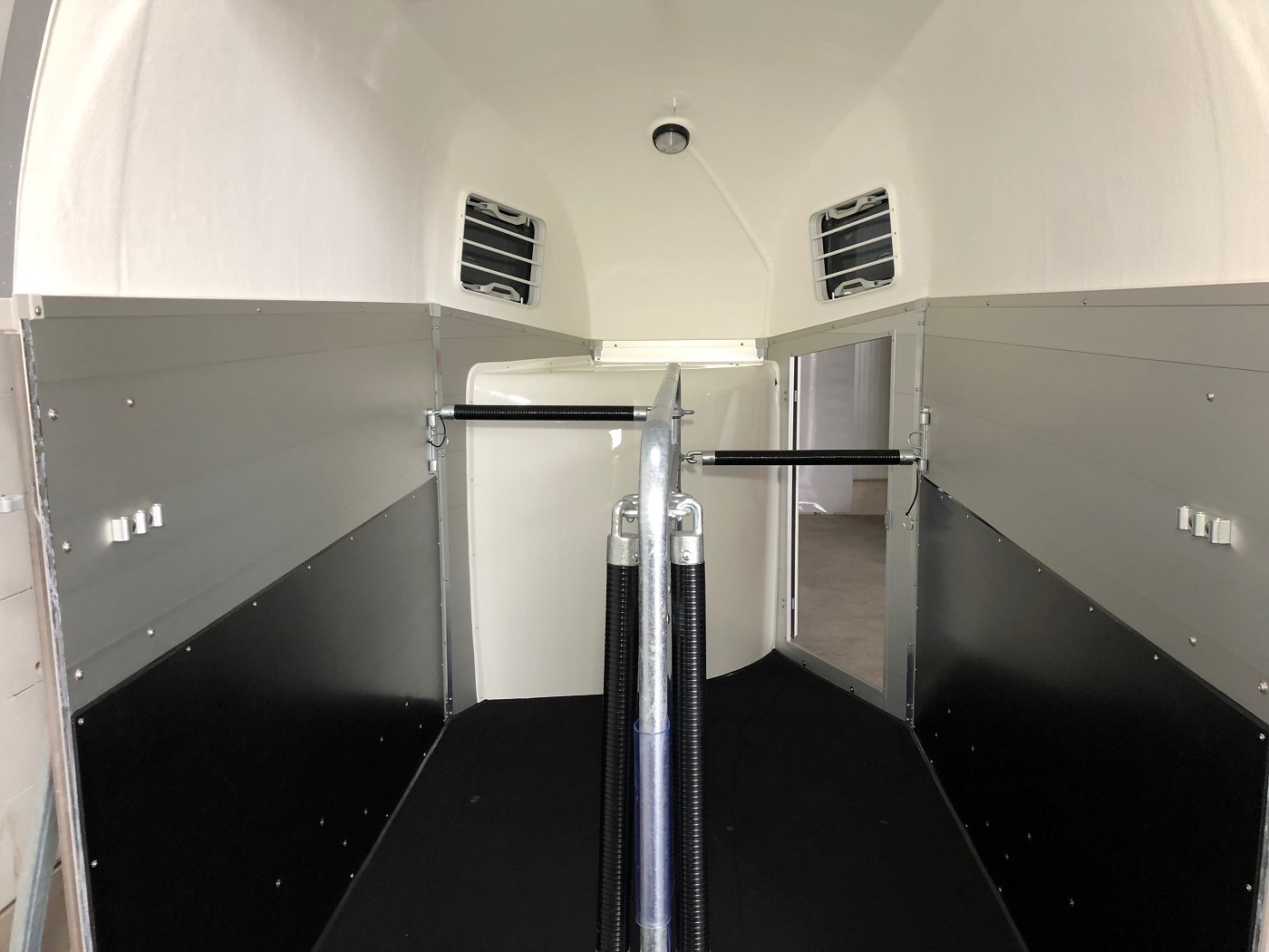 Pferdeanhänger mit Sattelkammer, Aluboden, Trittschutz, Trittleisten auf der Beladeklappe, Radstoßdämpfer für die 100 km/h-Abnahme