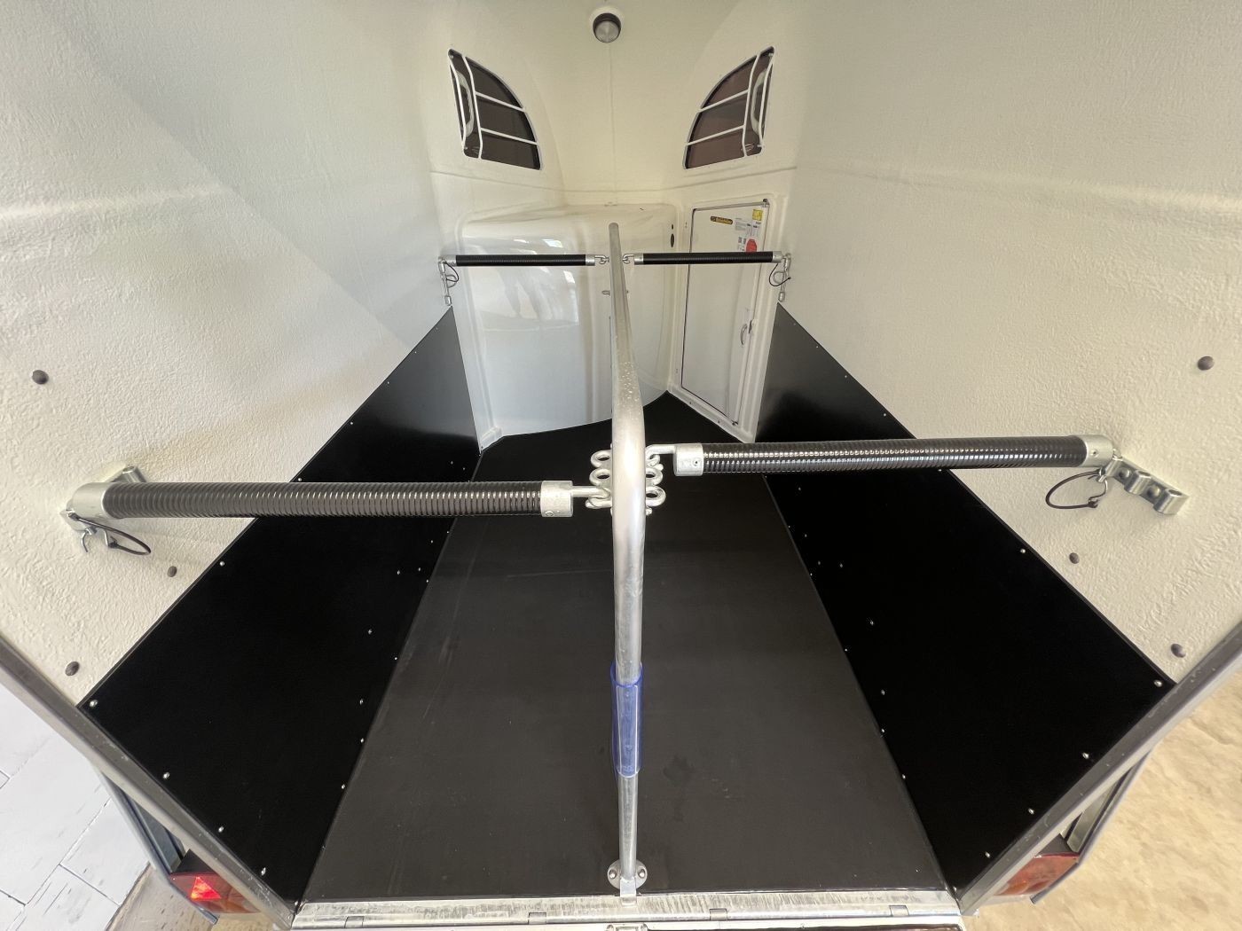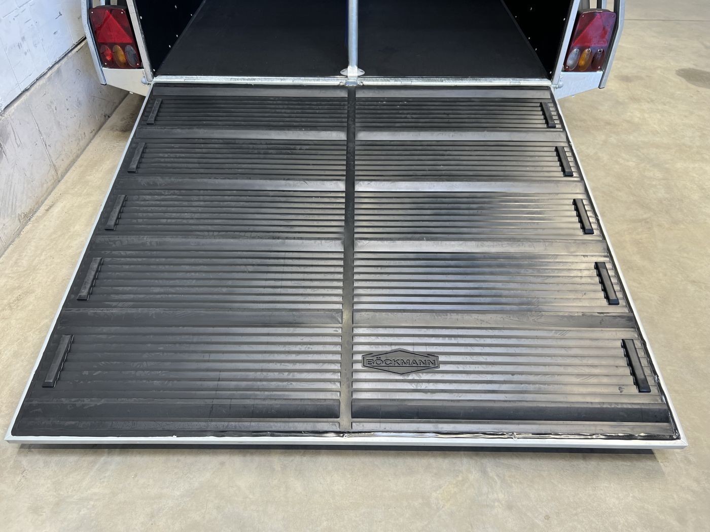 • Gummi auf Beladeklappe mit integrierten Trittleisten und Seitenstopps gewährleisten optimalen Halt für Ihre Pferde